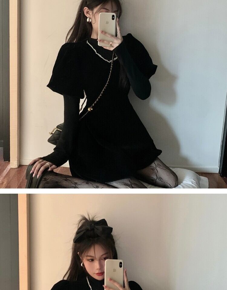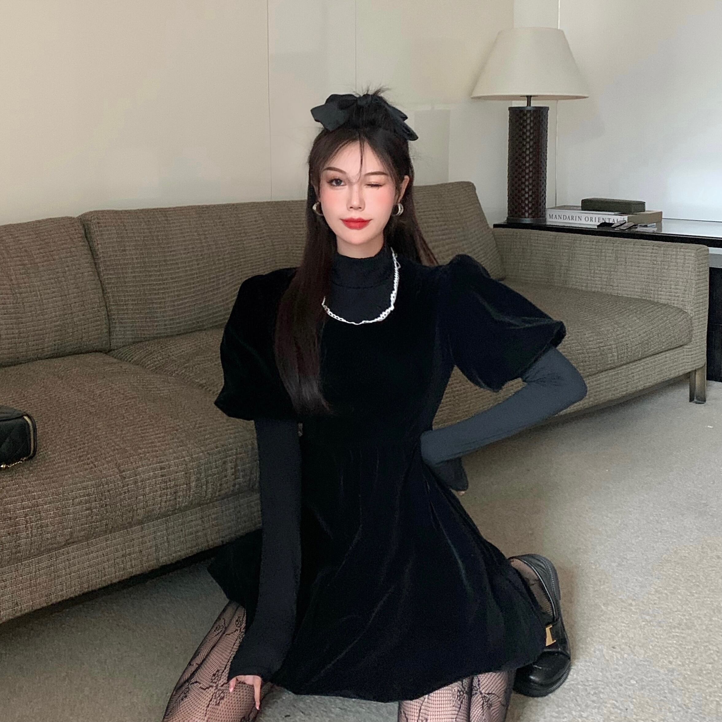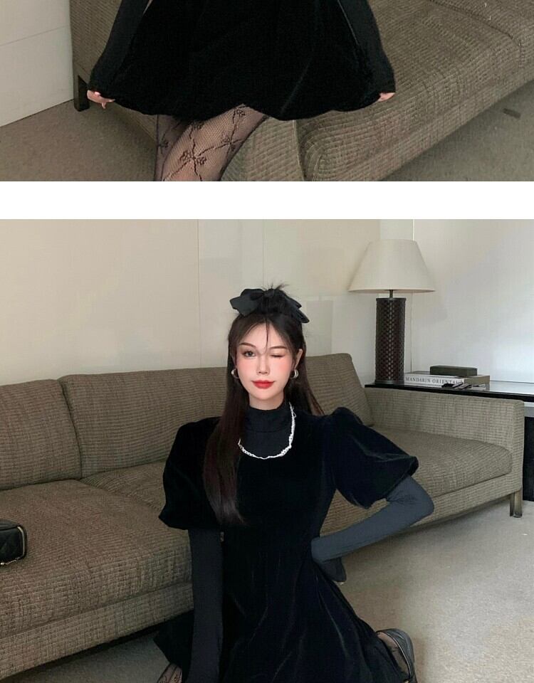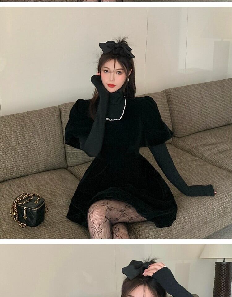ベルベットドレス スプリングウェストブラックスカート 大人ガーリー スウィート キュート カジュアル 春物 萌量不足28090685957