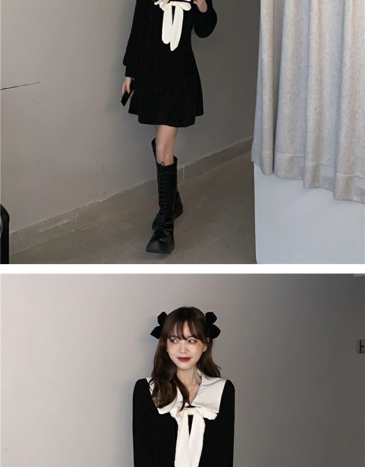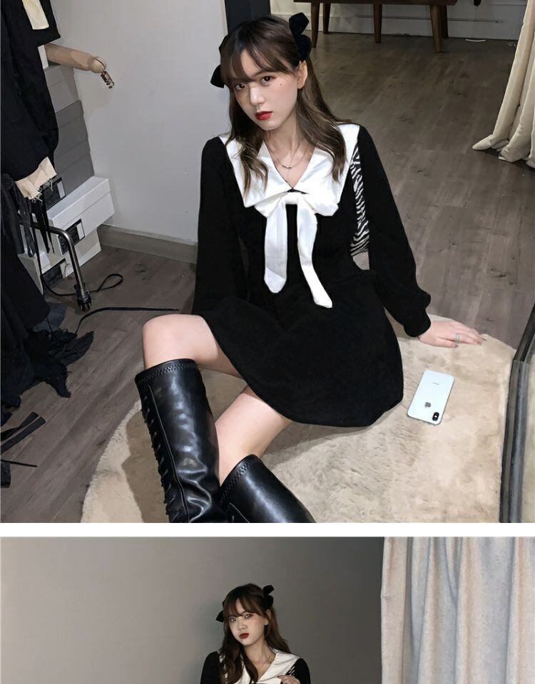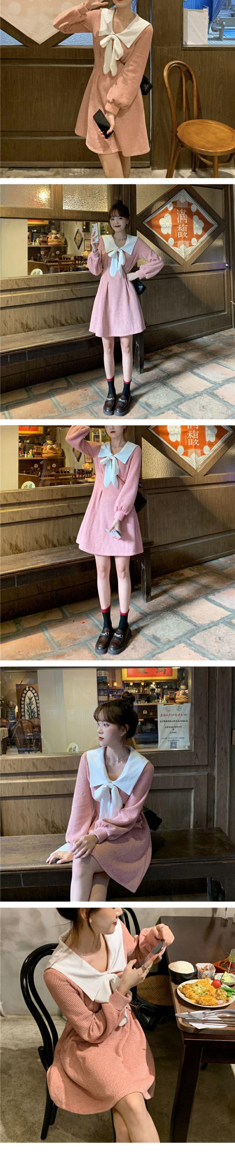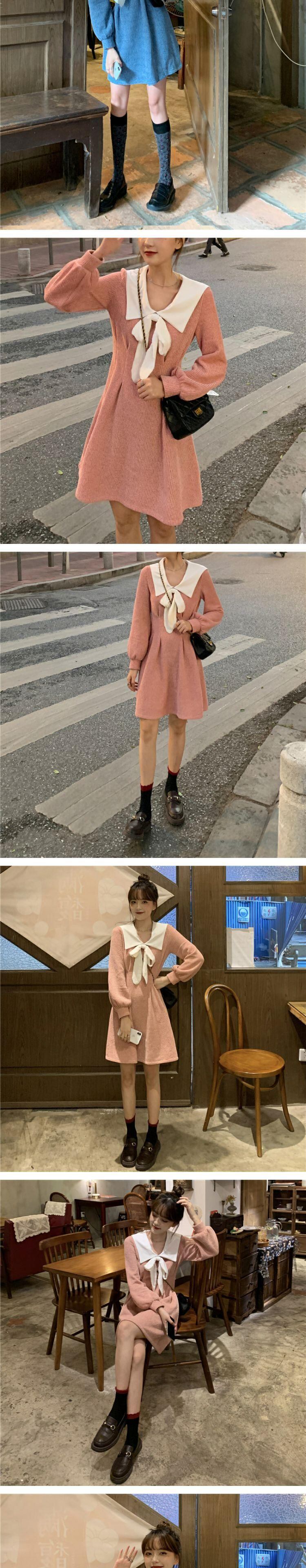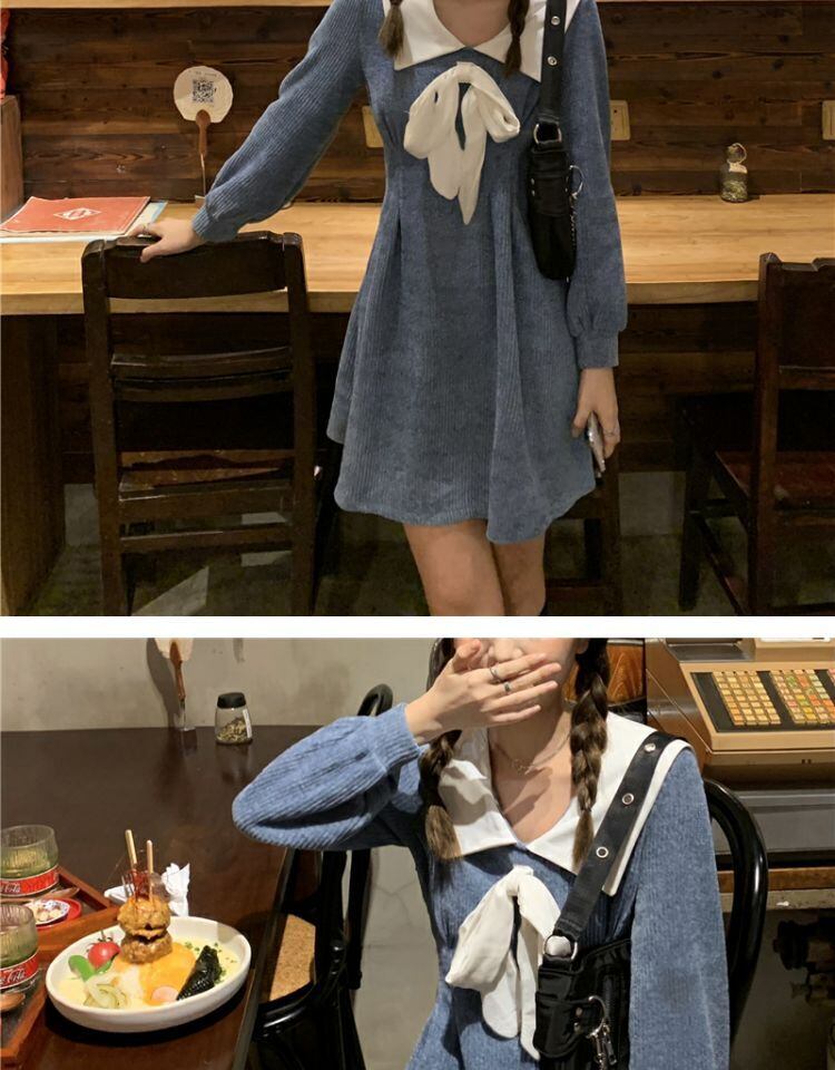 ウィンタードレス スタイルリボンスリーブウェストスカート 冬物 萌量不足5230933729