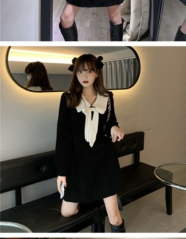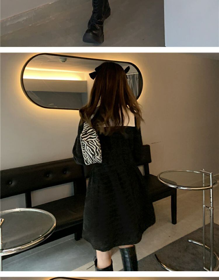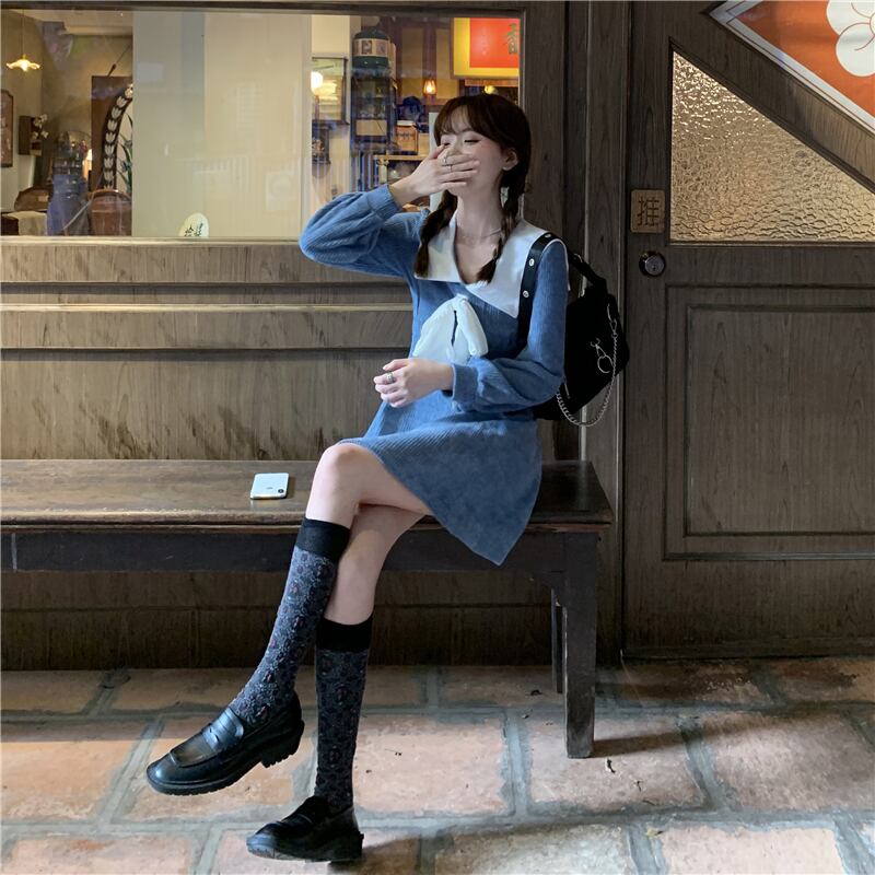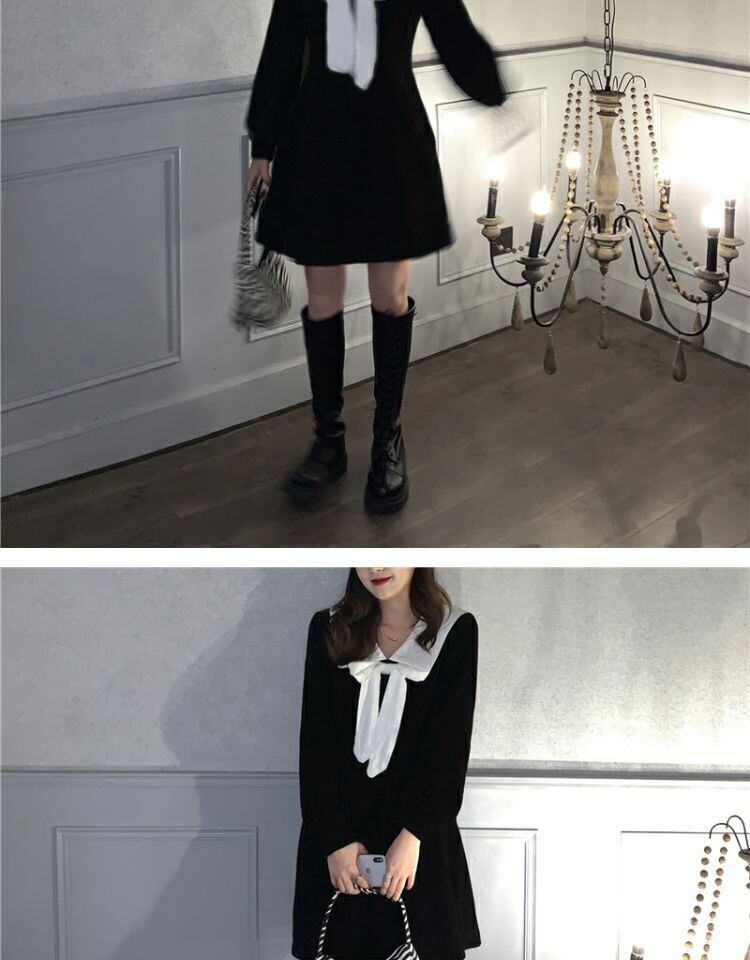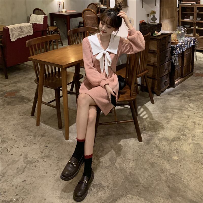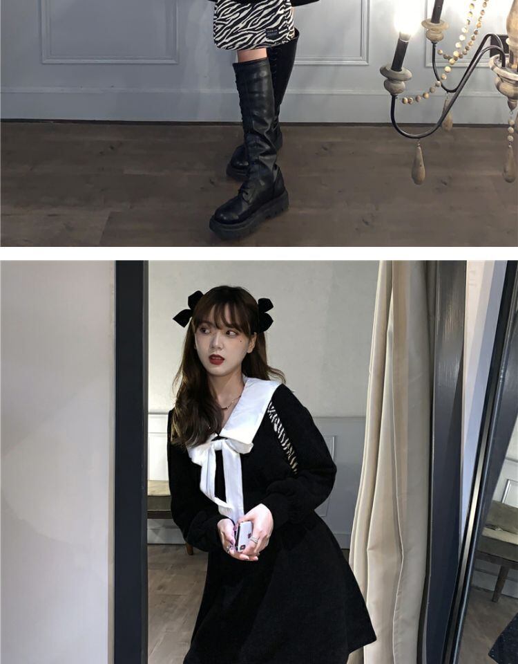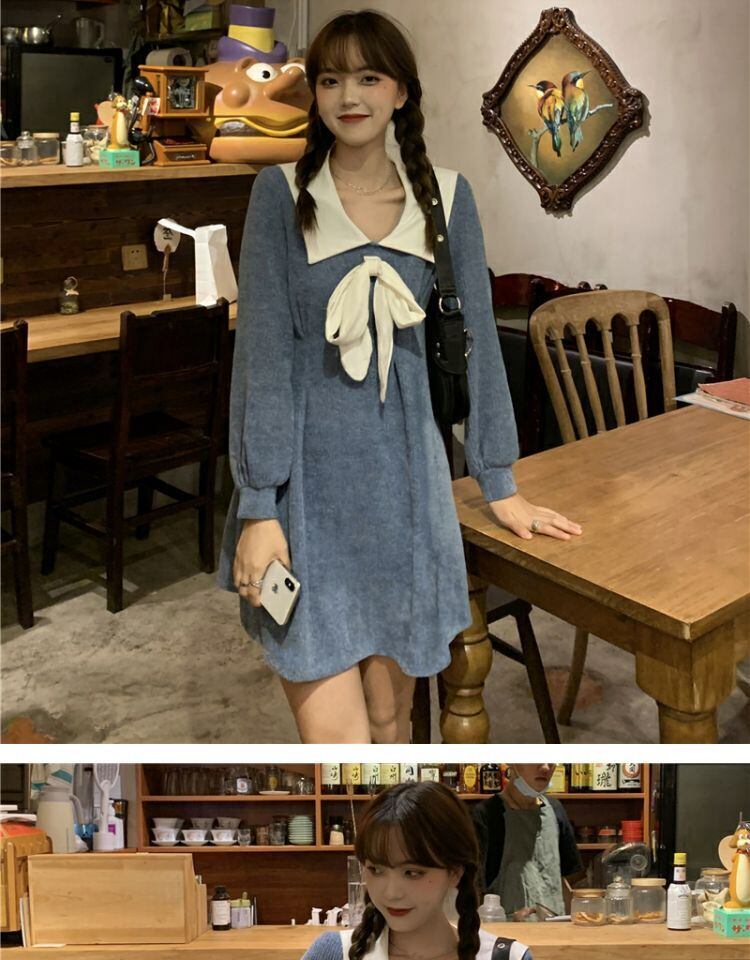 ウィンタードレス スタイルリボンスリーブウェストスカート 冬物 萌量不足5230933729