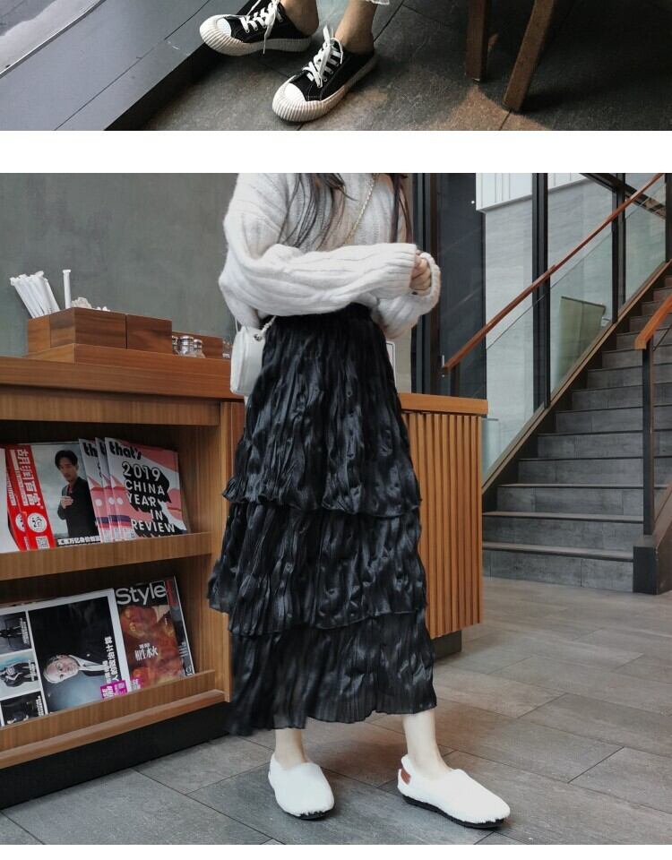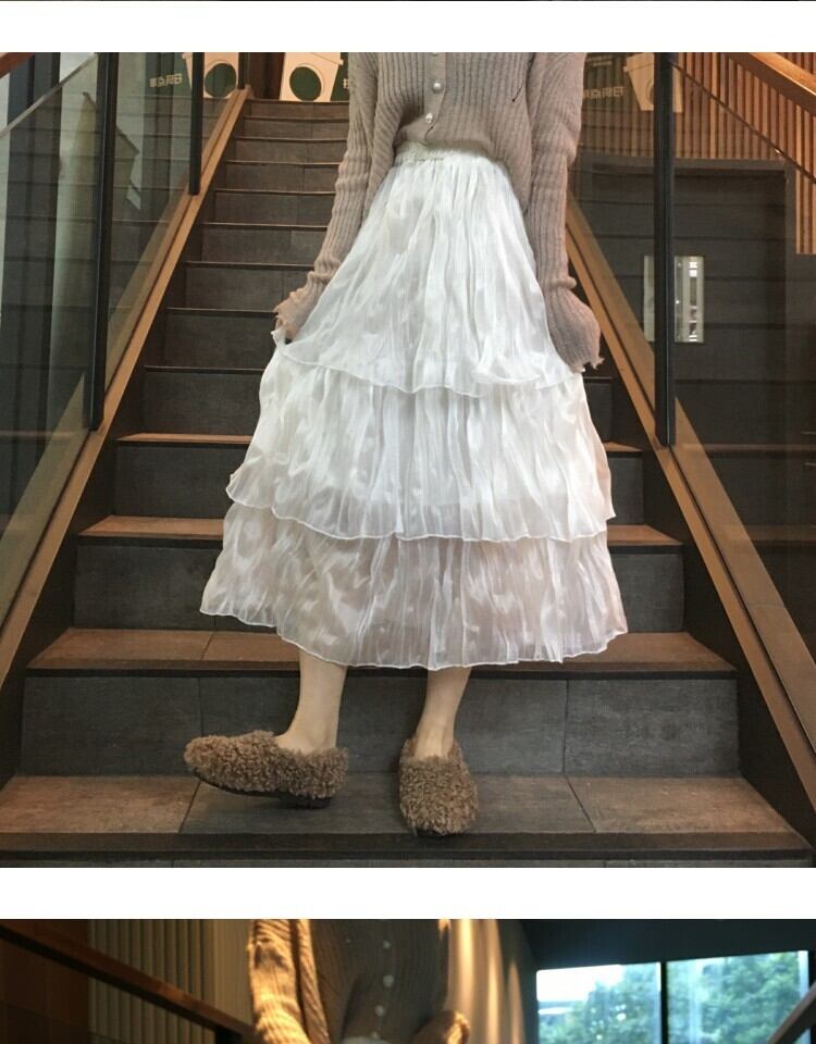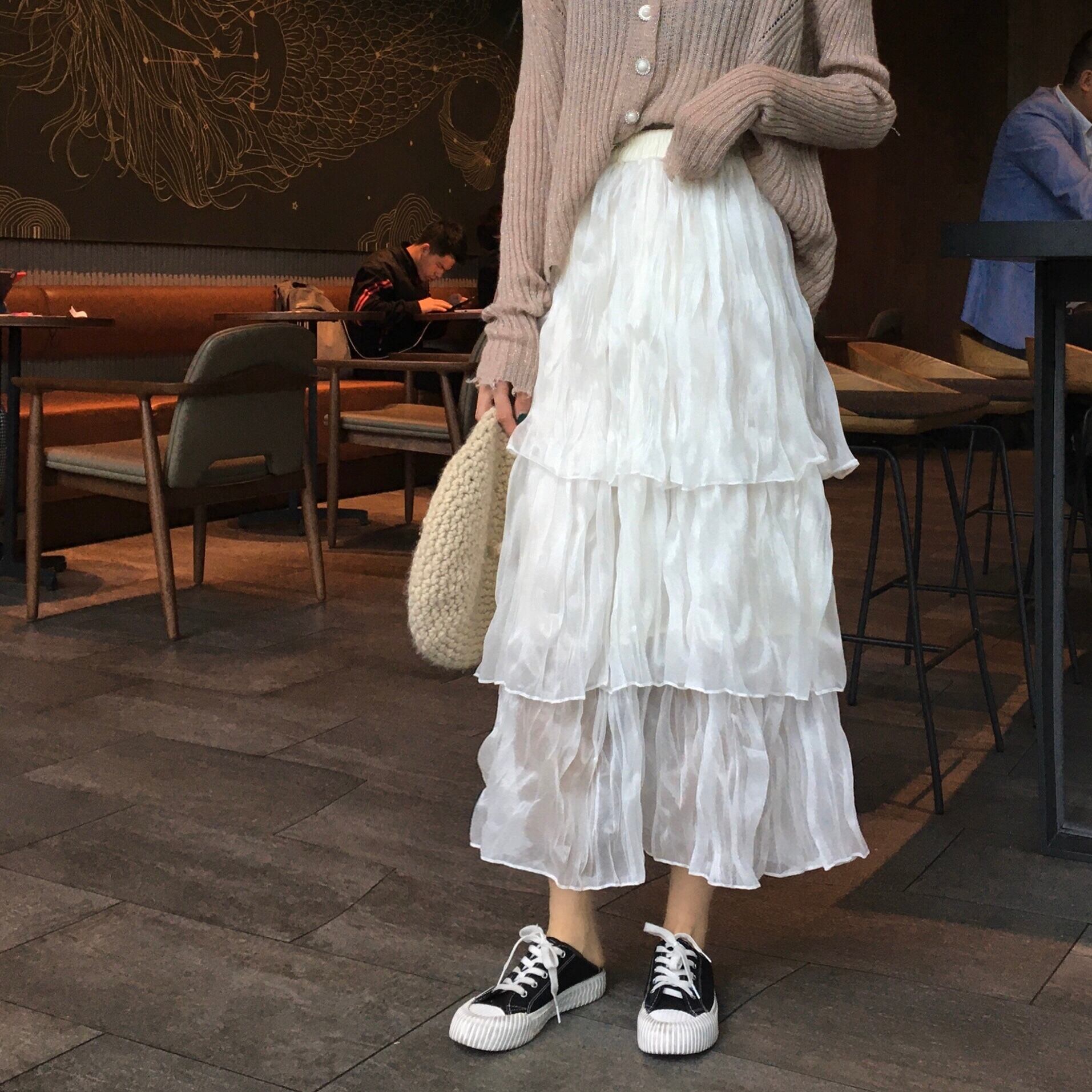 シフォンスカート スプリングプリーツハイウェストウェストAライン 春物 萌量不足99747663546