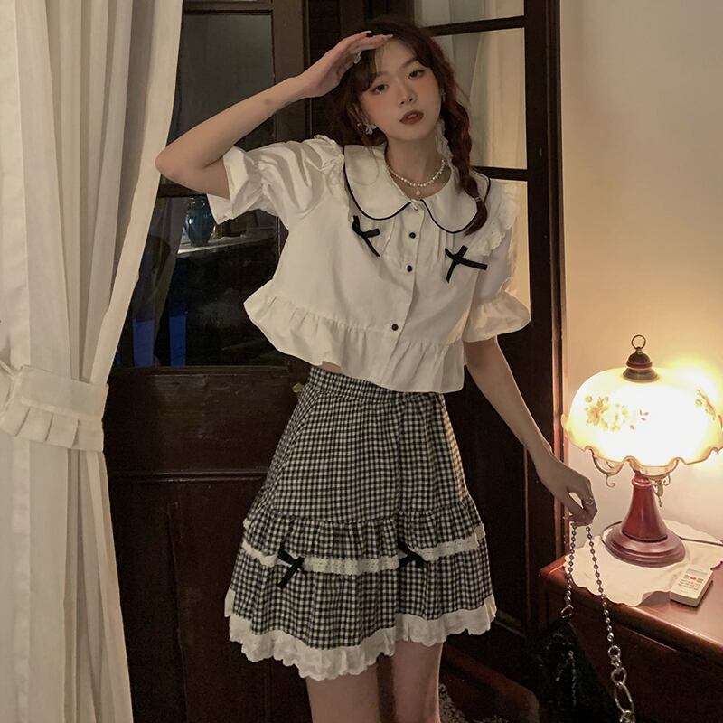 スリーブカラーシャツ サマートップス 大人ガーリー スウィート キュート カジュアル 夏物 萌量不足40102331982
