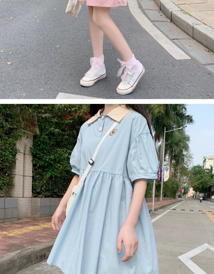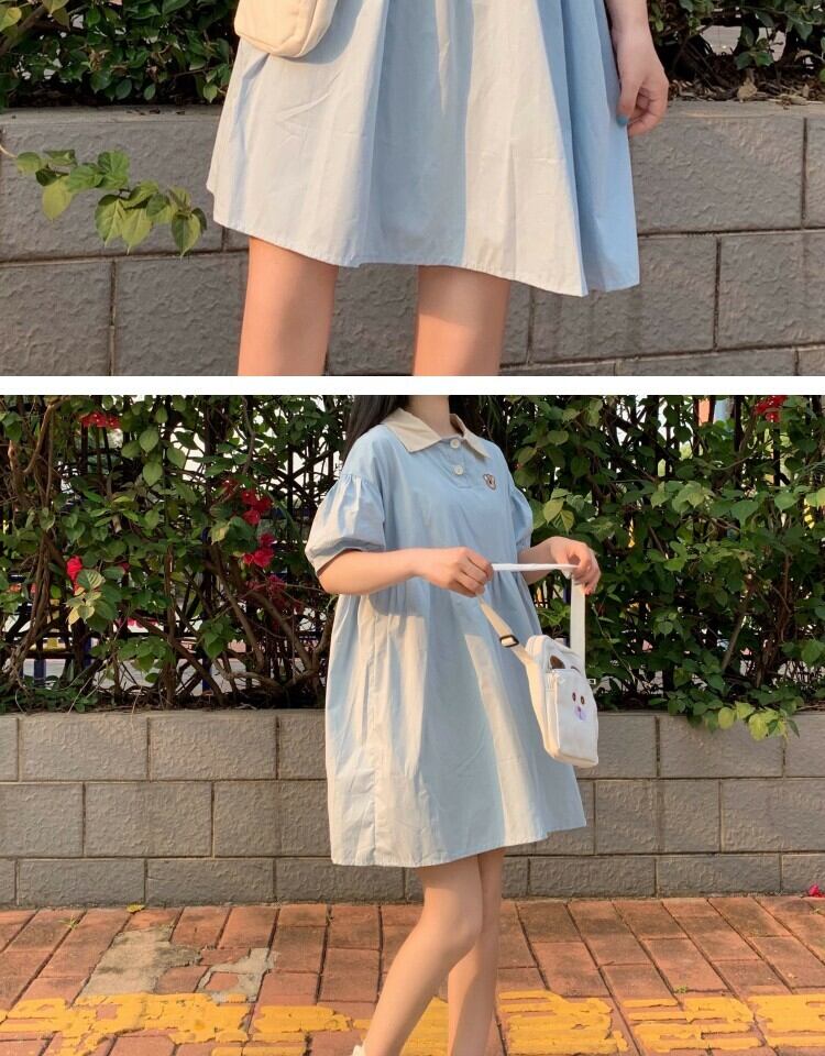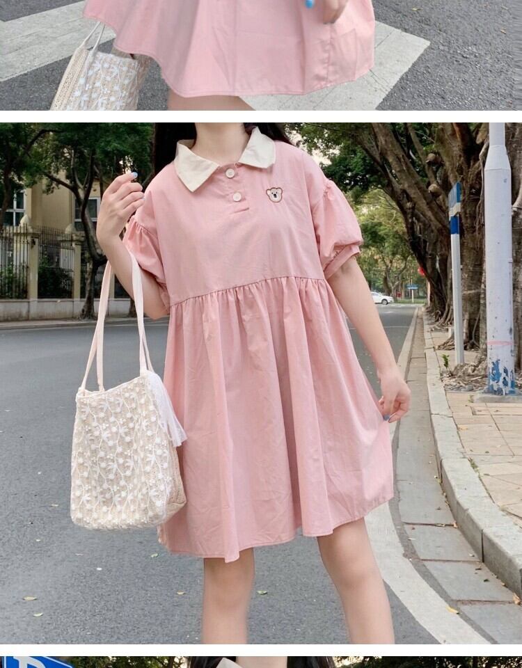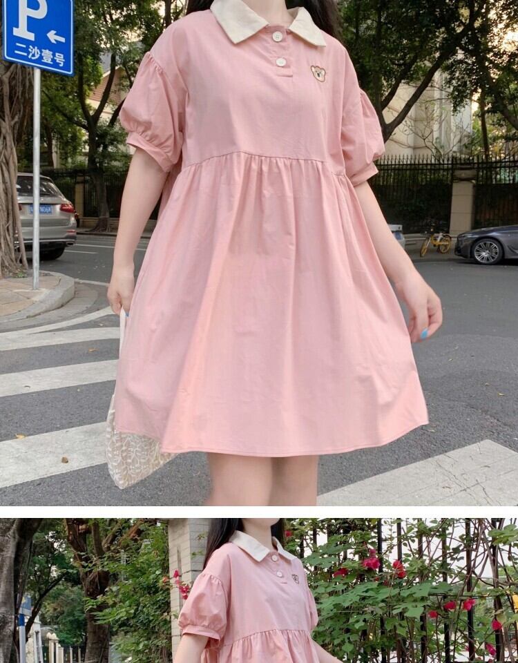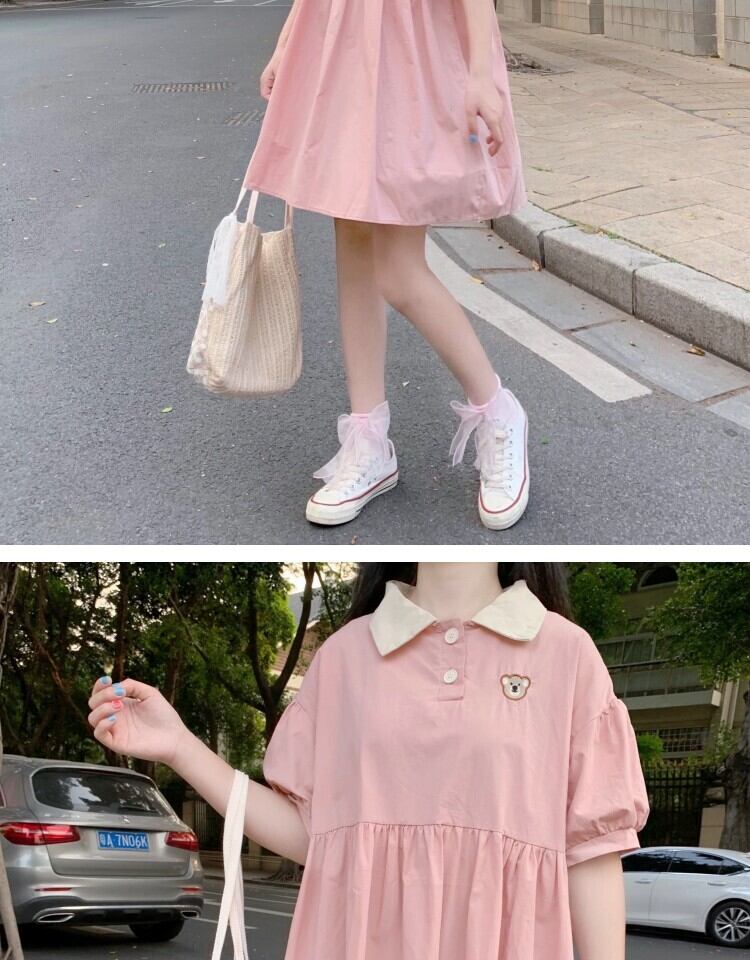 スタイルスリーブドレス サマー刺繍カラールーズスカート ピンク 大人ガーリー スウィート キュート カジュアル 夏物 萌量不足55175119886