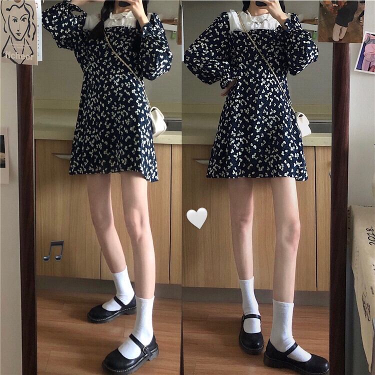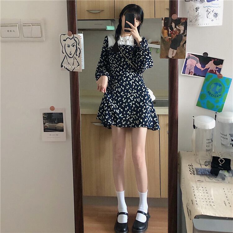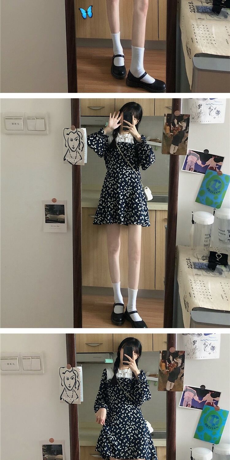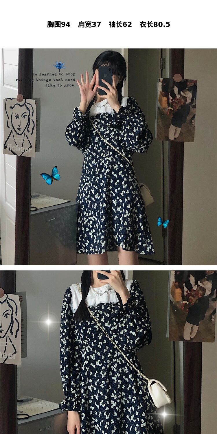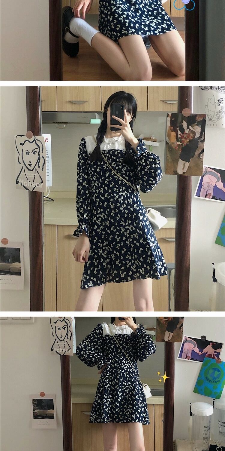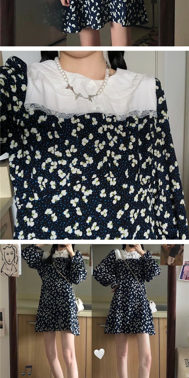 スリーブカラーレースフローラルドレス スプリングスカート ランタンスリーブ 大人ガーリー スウィート キュート カジュアル 春物 花柄 萌量不足17953290790