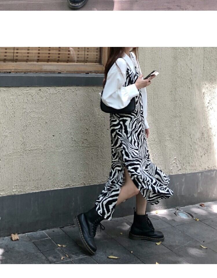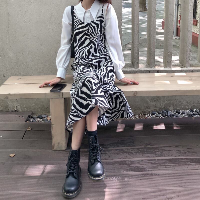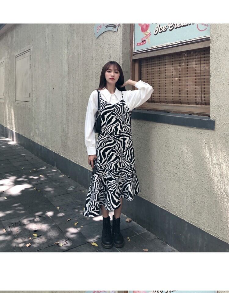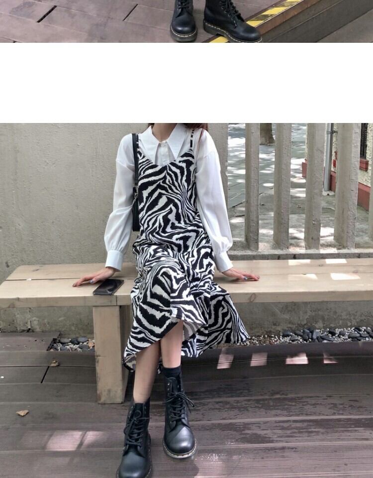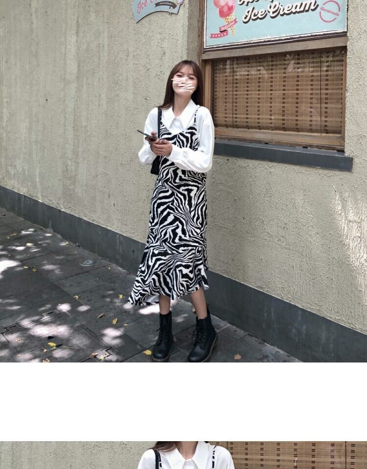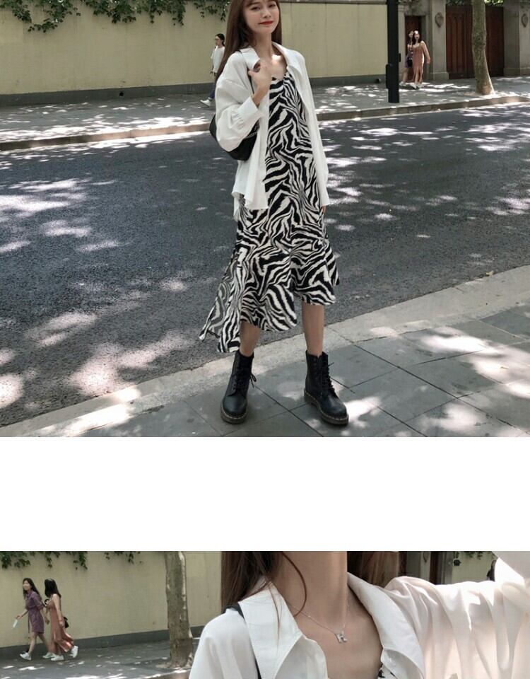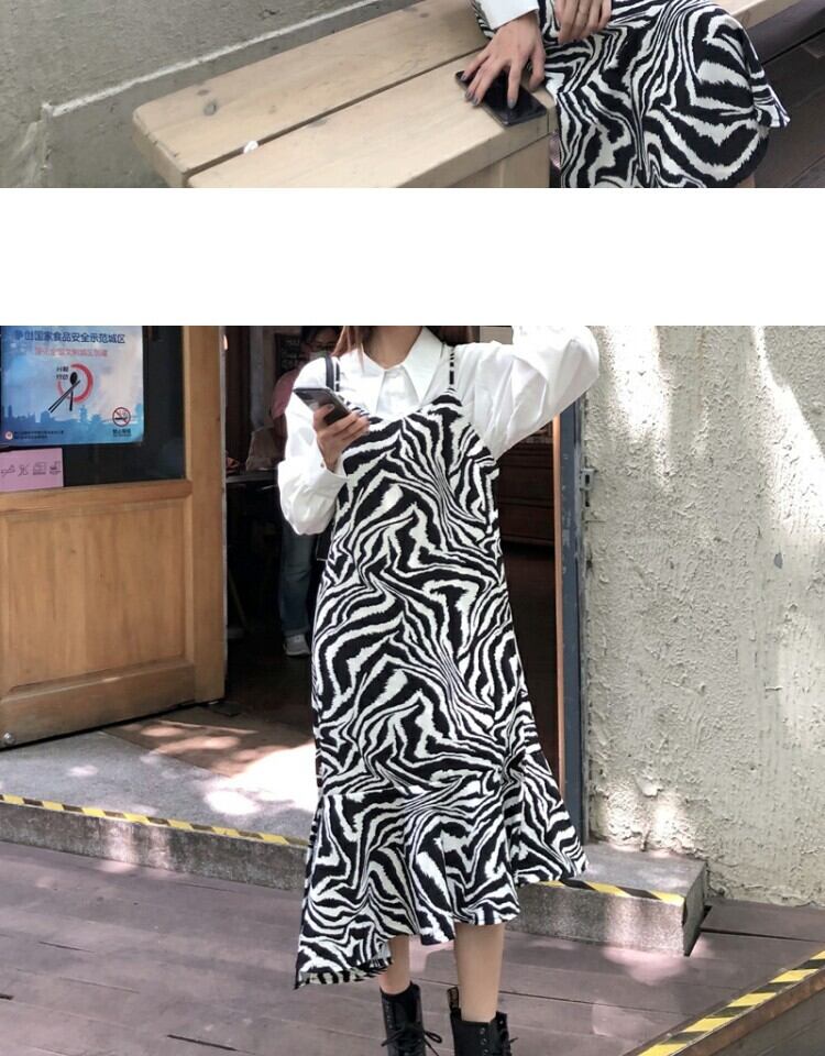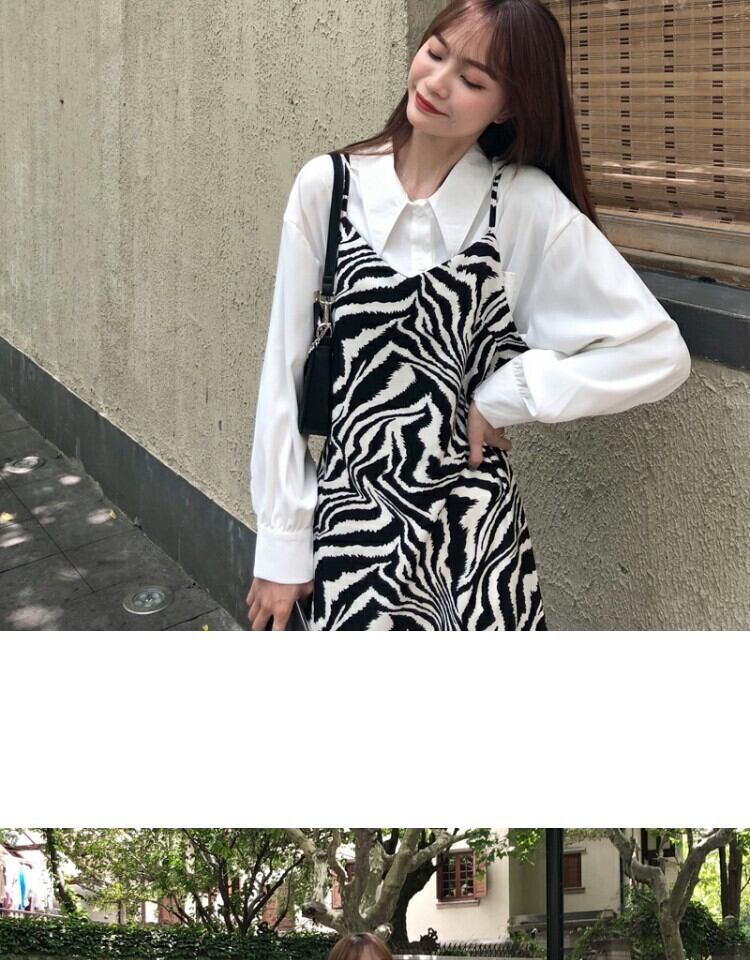 色:白いシャツのワンピース,ゼブラスカートワンピース