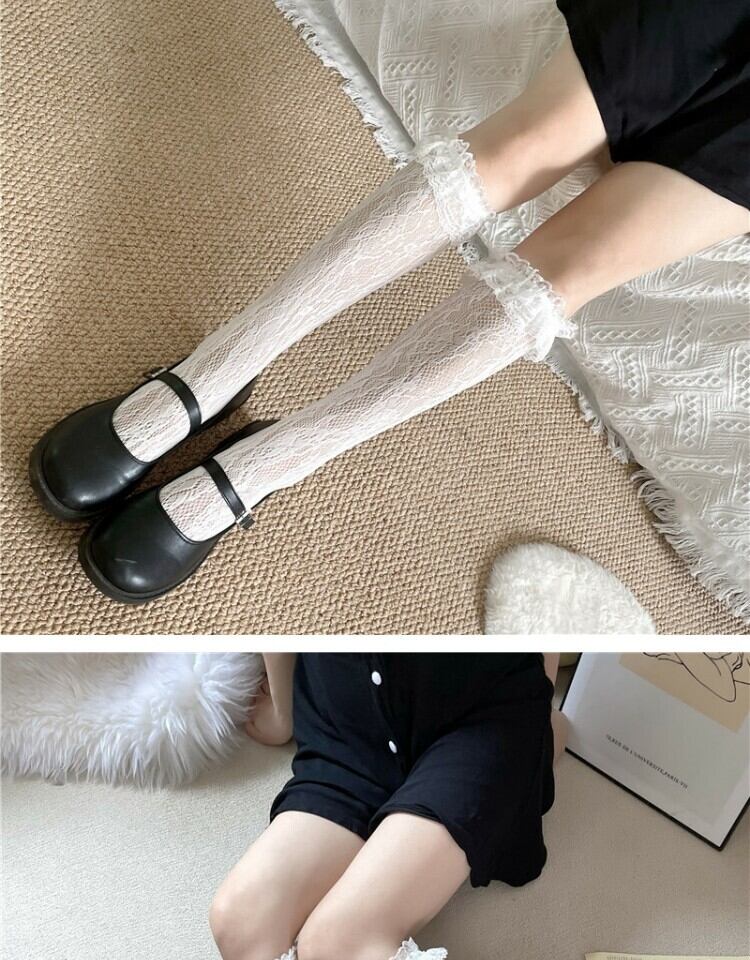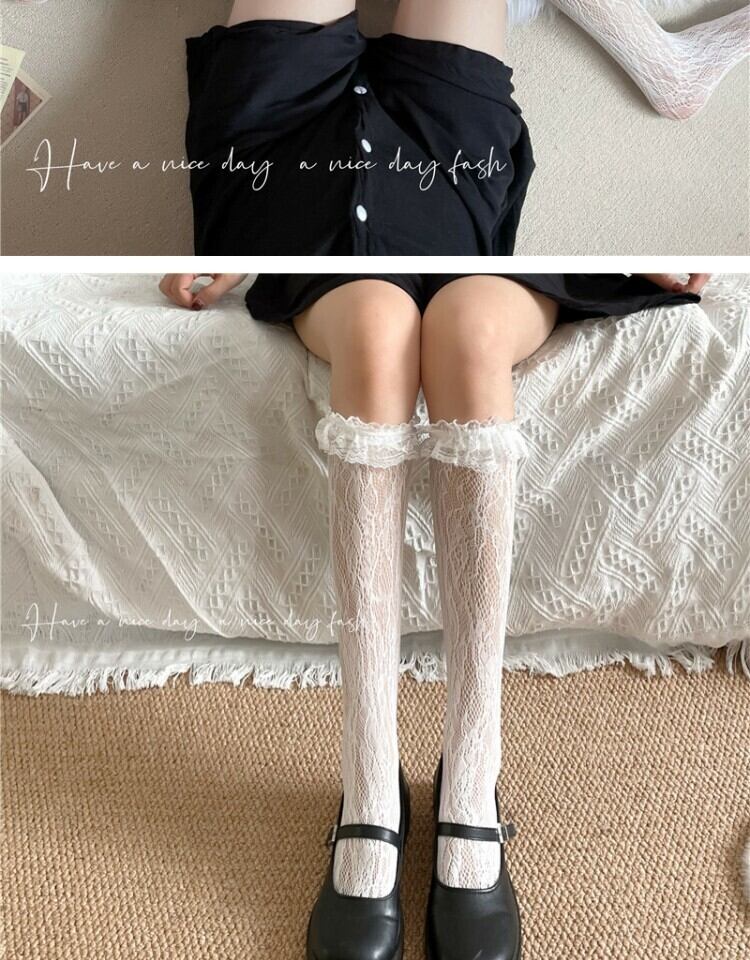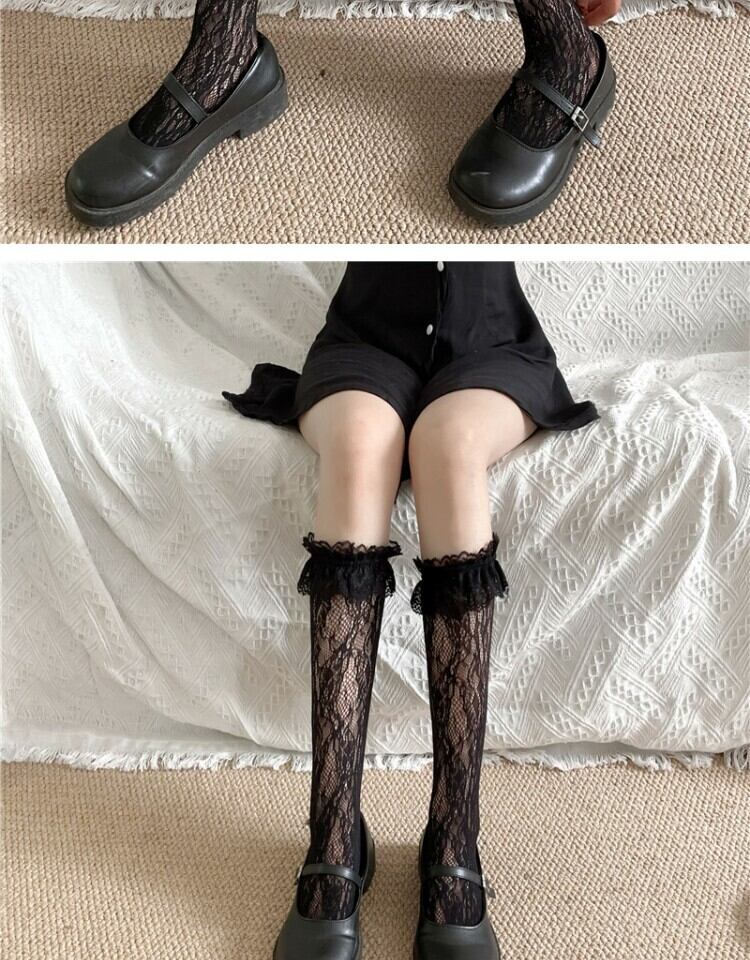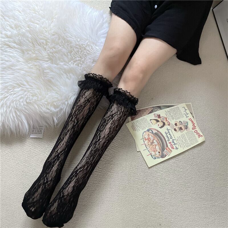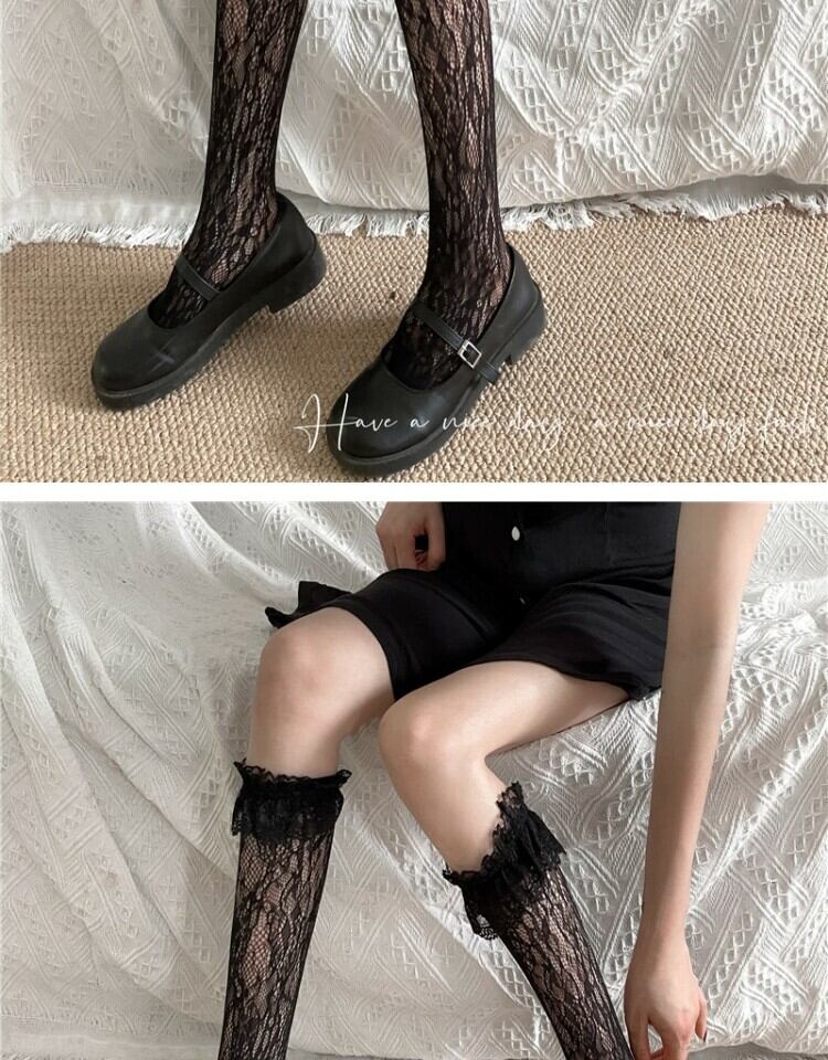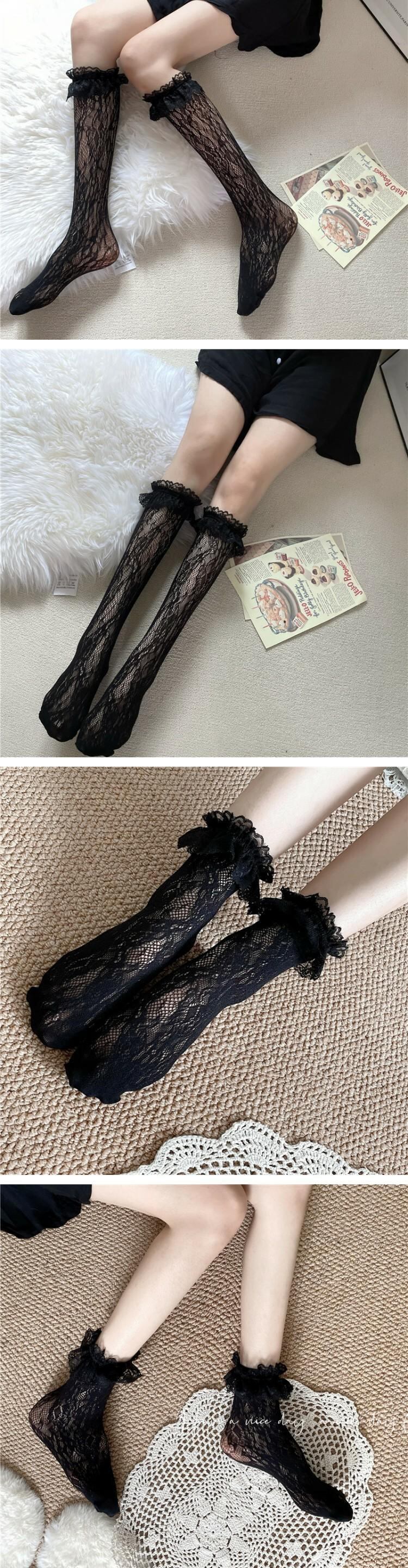 レッドホワイトソックス サマーレースサイド薄手ショートブラックネット 夏物 タイツ ストッキング 萌量不足80072386998
