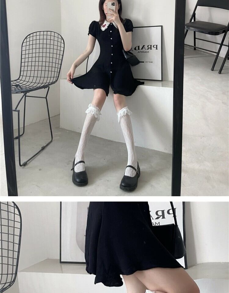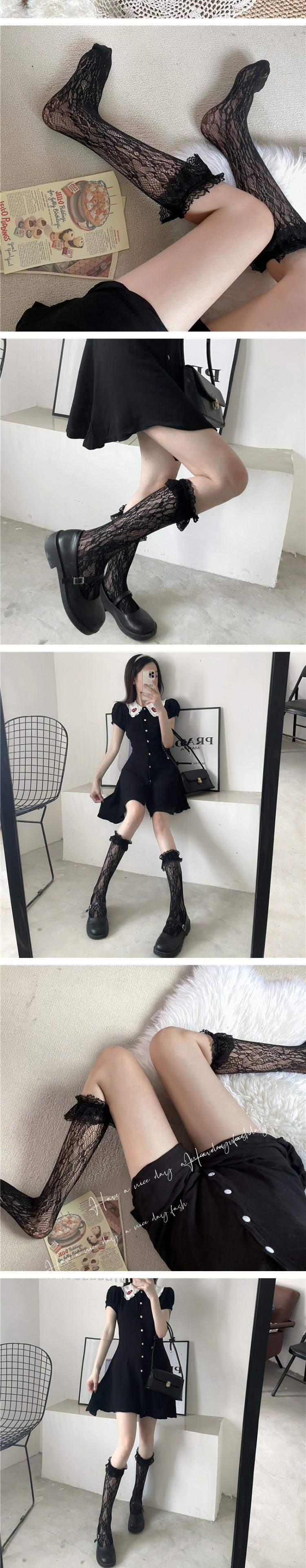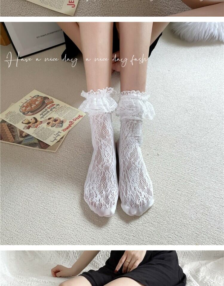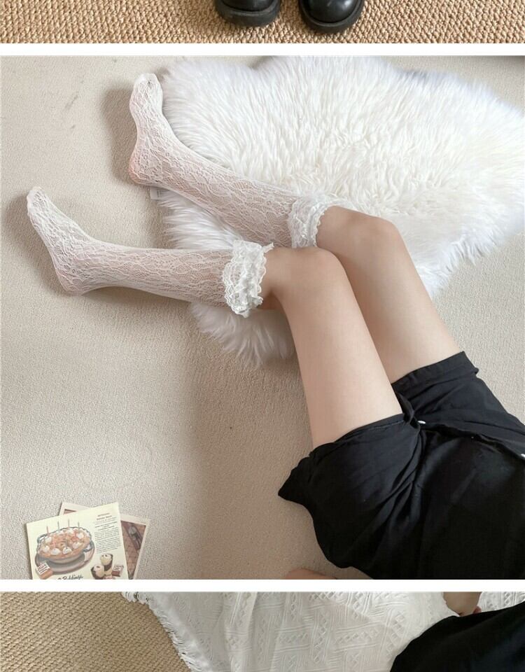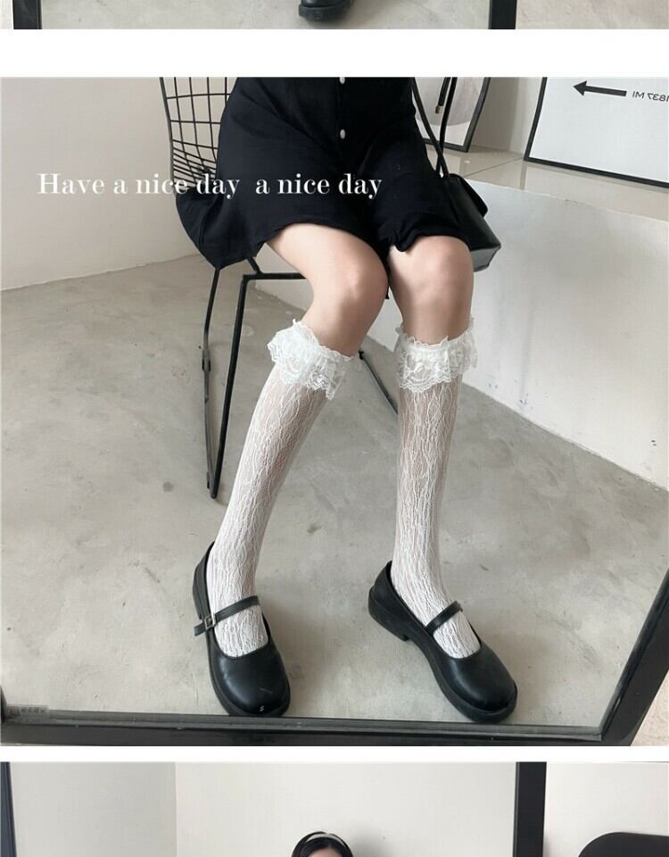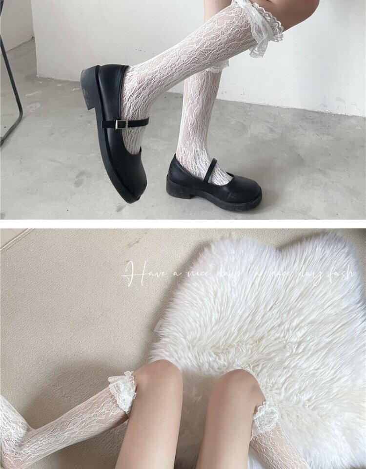 レッドホワイトソックス サマーレースサイド薄手ショートブラックネット 夏物 タイツ ストッキング 萌量不足80072386998