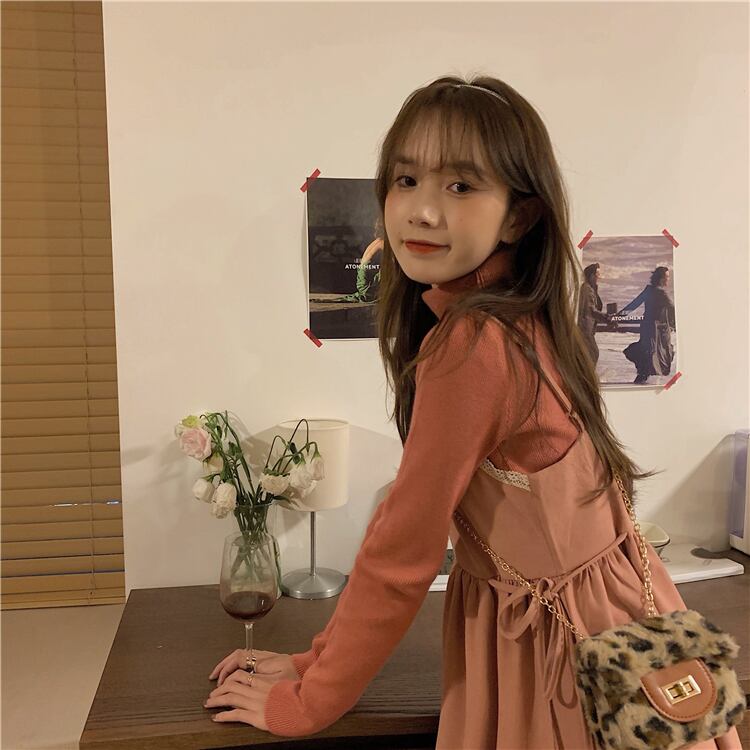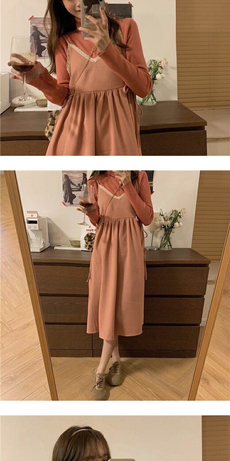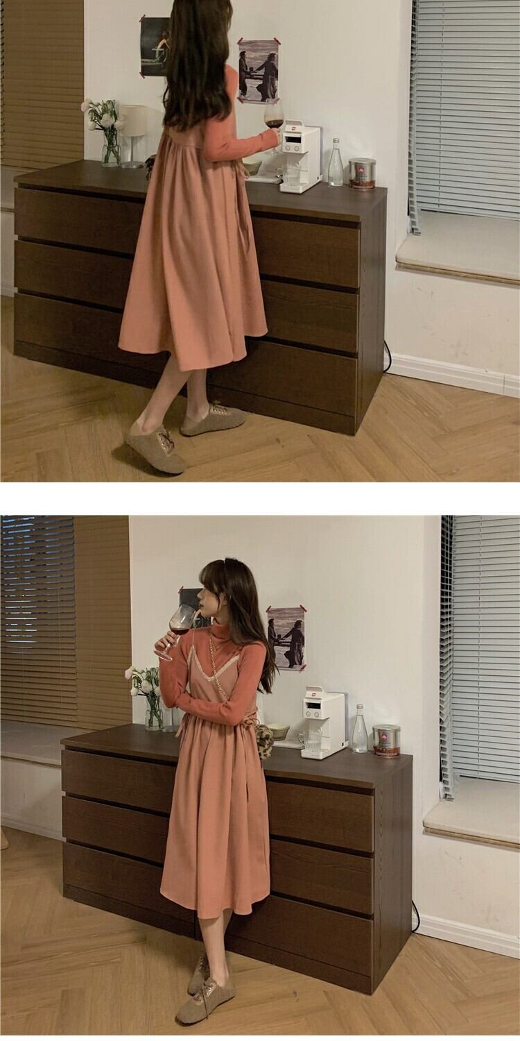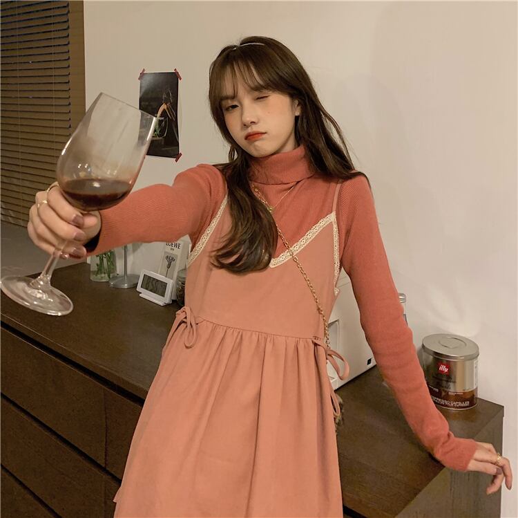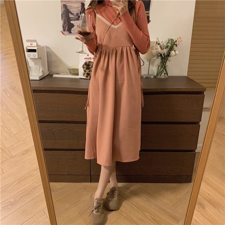 レーススカート Vネックドレス スプリング ピンク ペンダント 春物 萌量不足51080657684