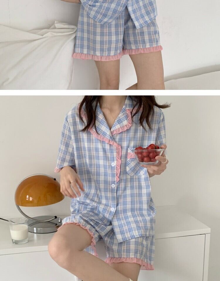 色:ブルーグリッド-半袖ショーツ,ブルーグリッド-半袖パンツ,グリーングリッド-半袖ショーツ,グリーングリッド-半袖パンツ,ピンクグリッド-半袖ショーツ,ピンクのグリッド-半袖パンツ