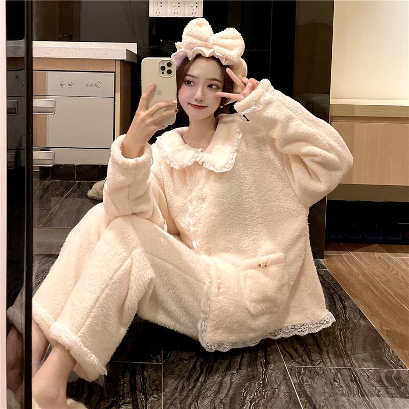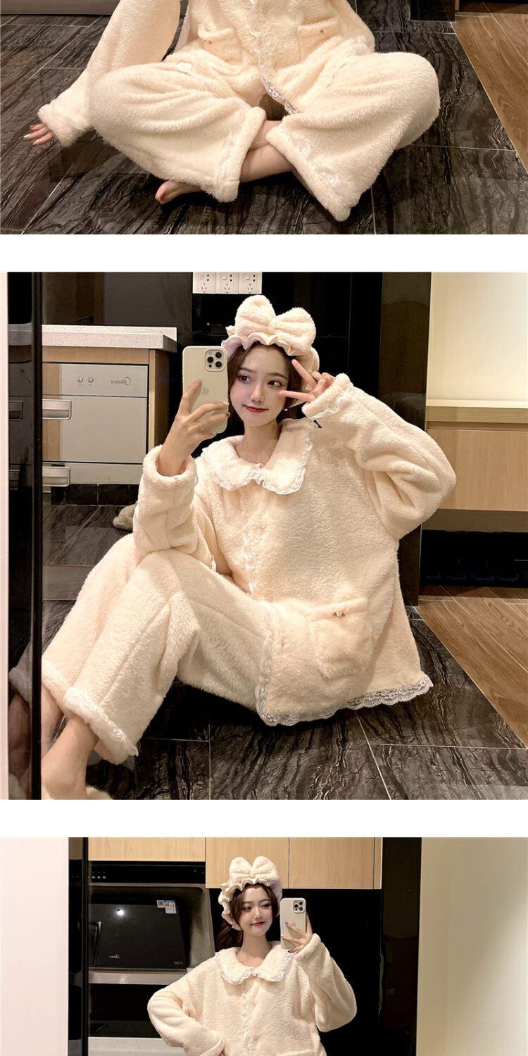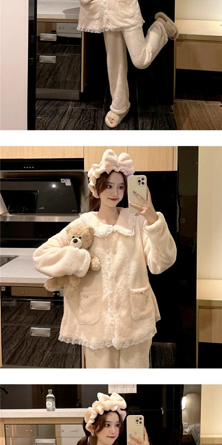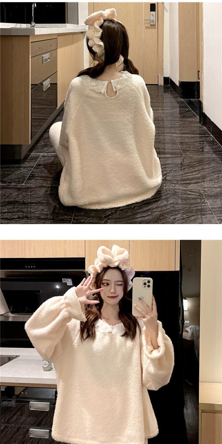 オータムウィンターコーラルベルベットレース 大人ガーリー スウィート キュート カジュアル 秋物 冬物 萌量不足19373955772