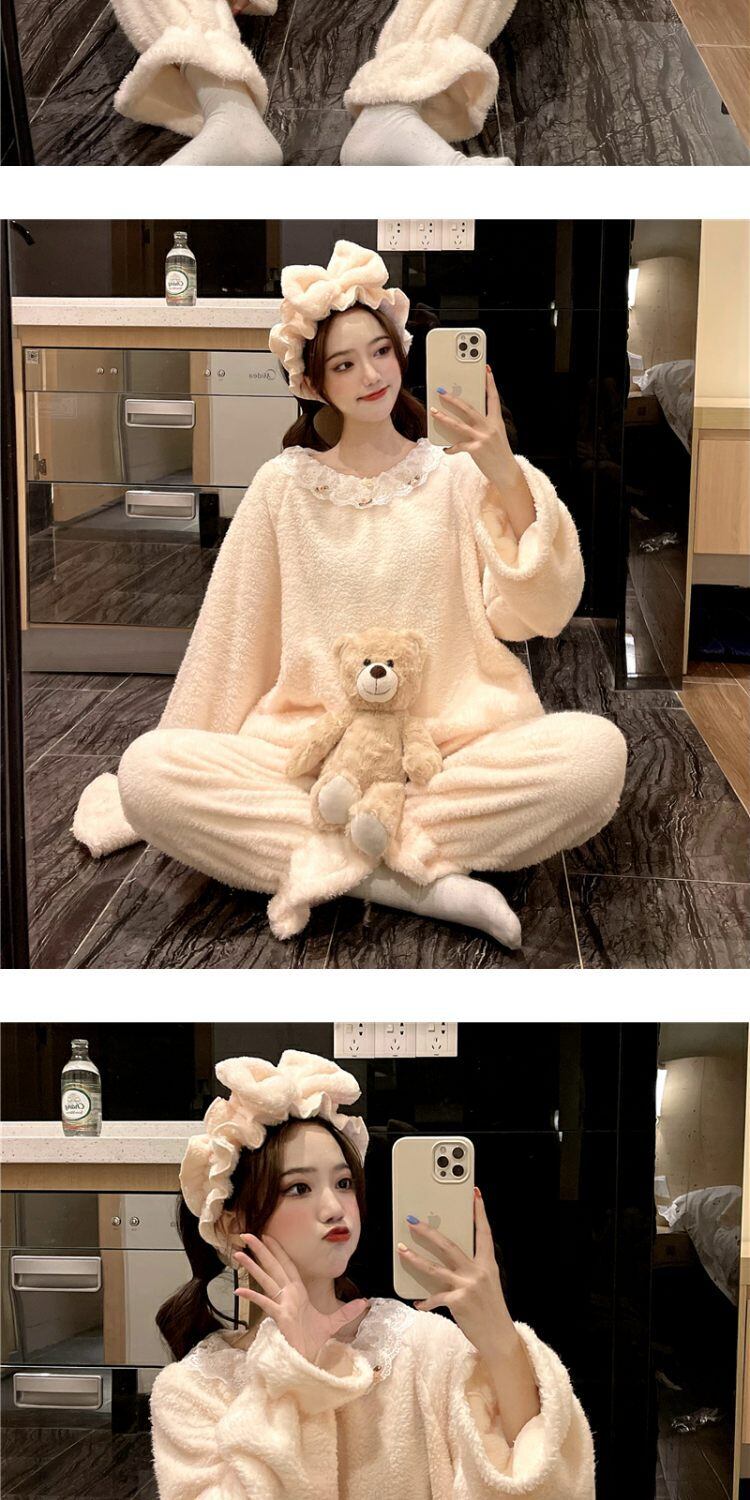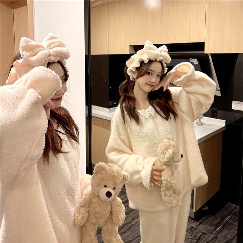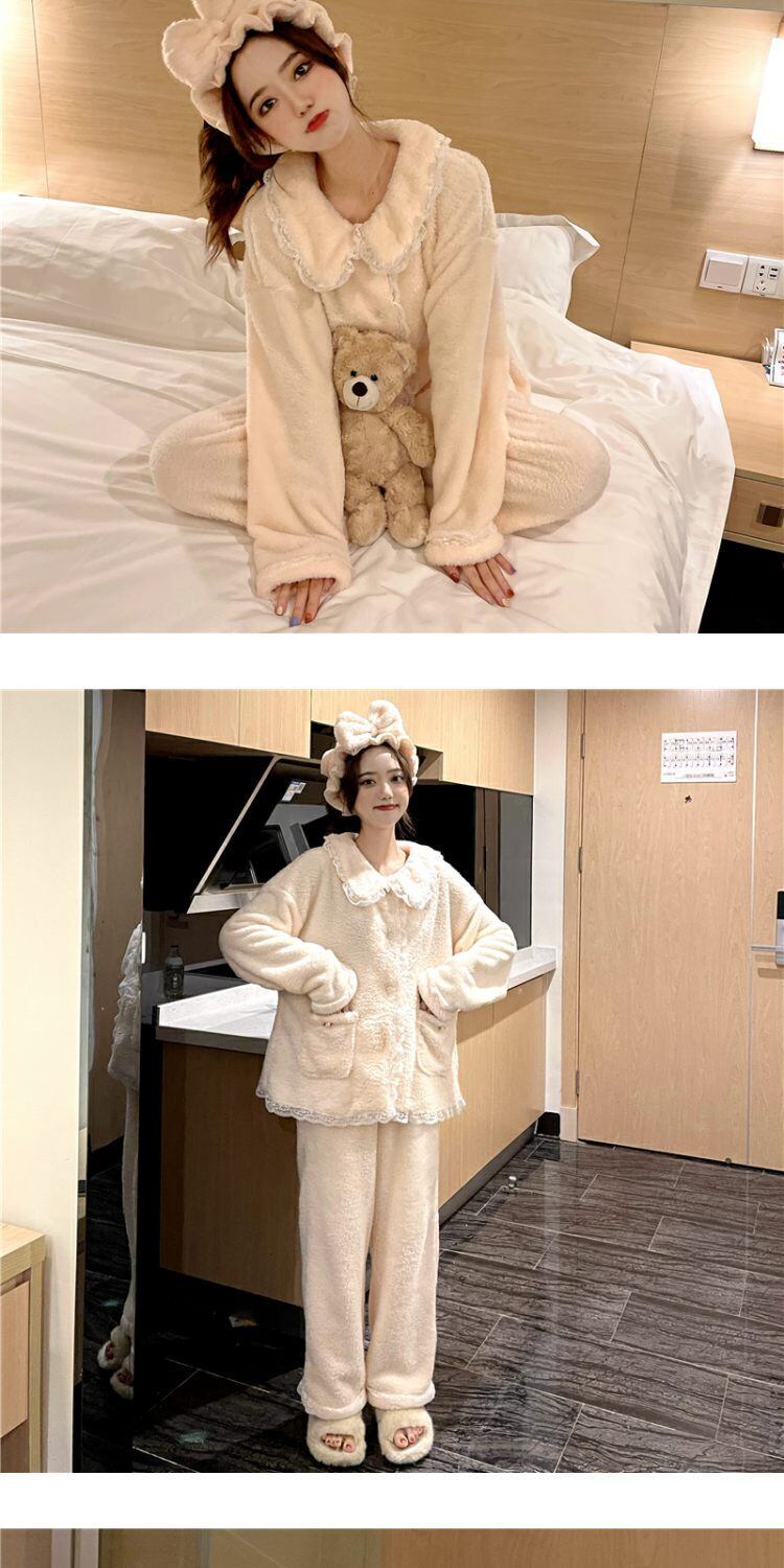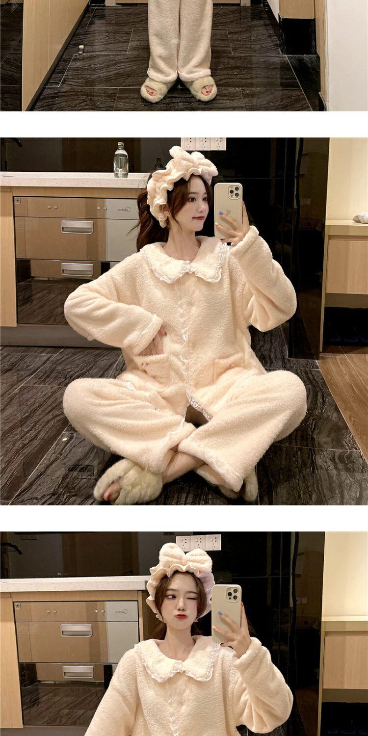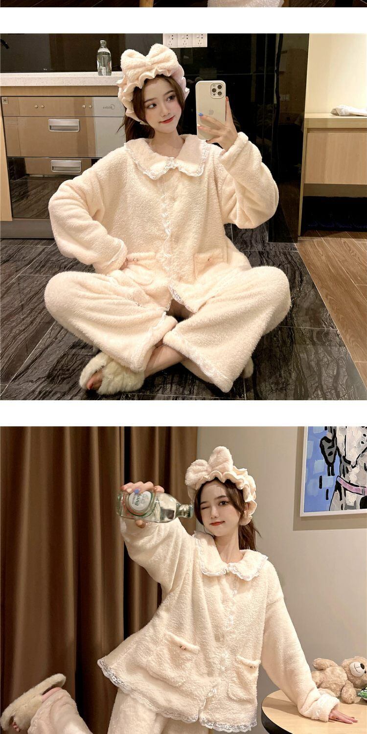 オータムウィンターコーラルベルベットレース 大人ガーリー スウィート キュート カジュアル 秋物 冬物 萌量不足19373955772