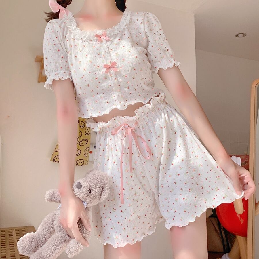レースフローラルレディースサマーショーツ 大人ガーリー スウィート キュート カジュアル 夏物 ブルマー 花柄 スクウェア 萌量不足13269299810