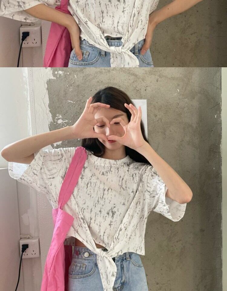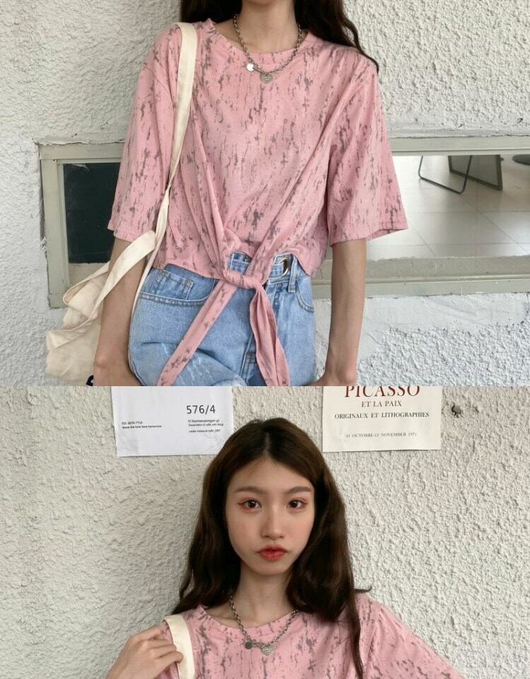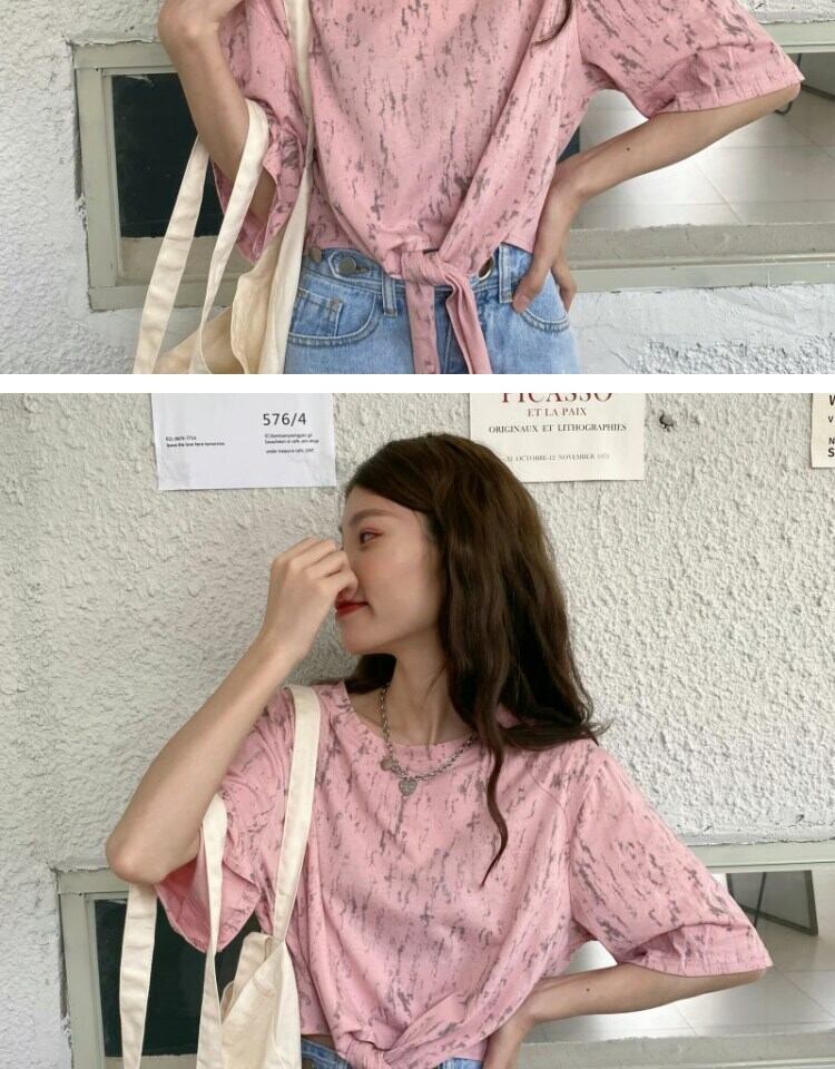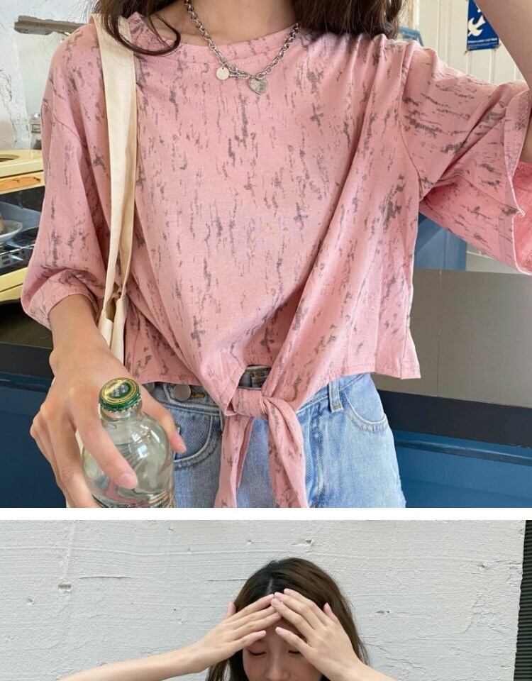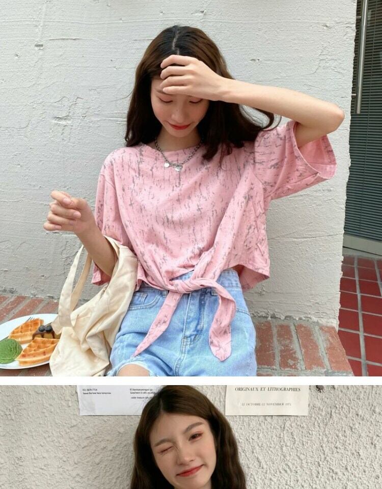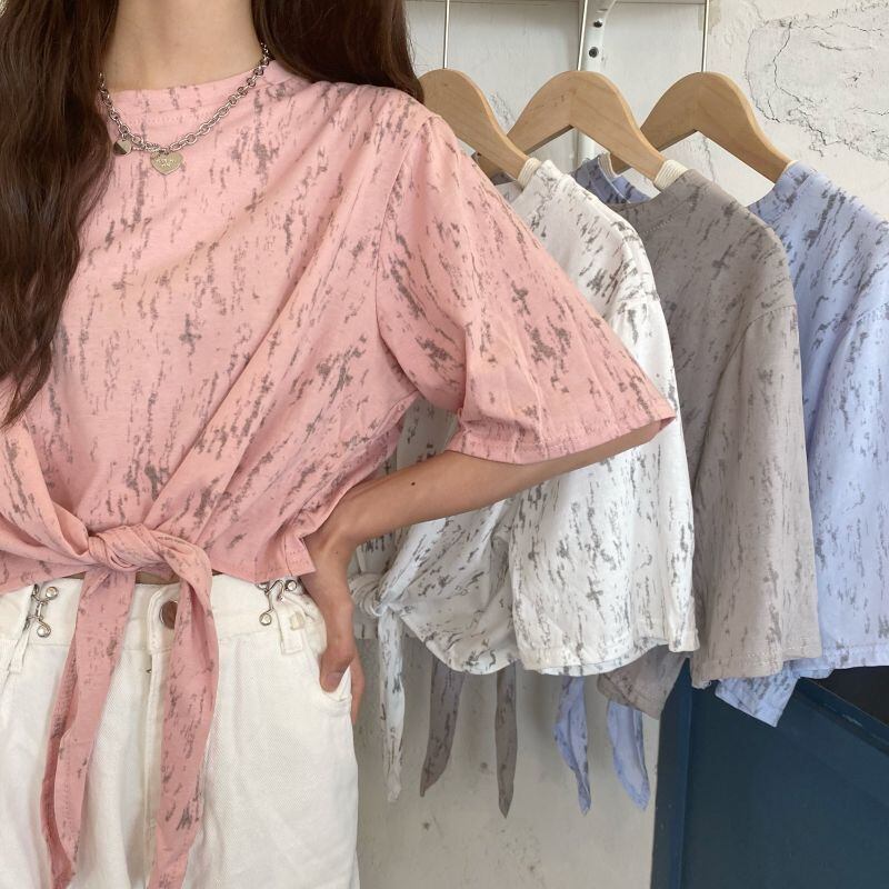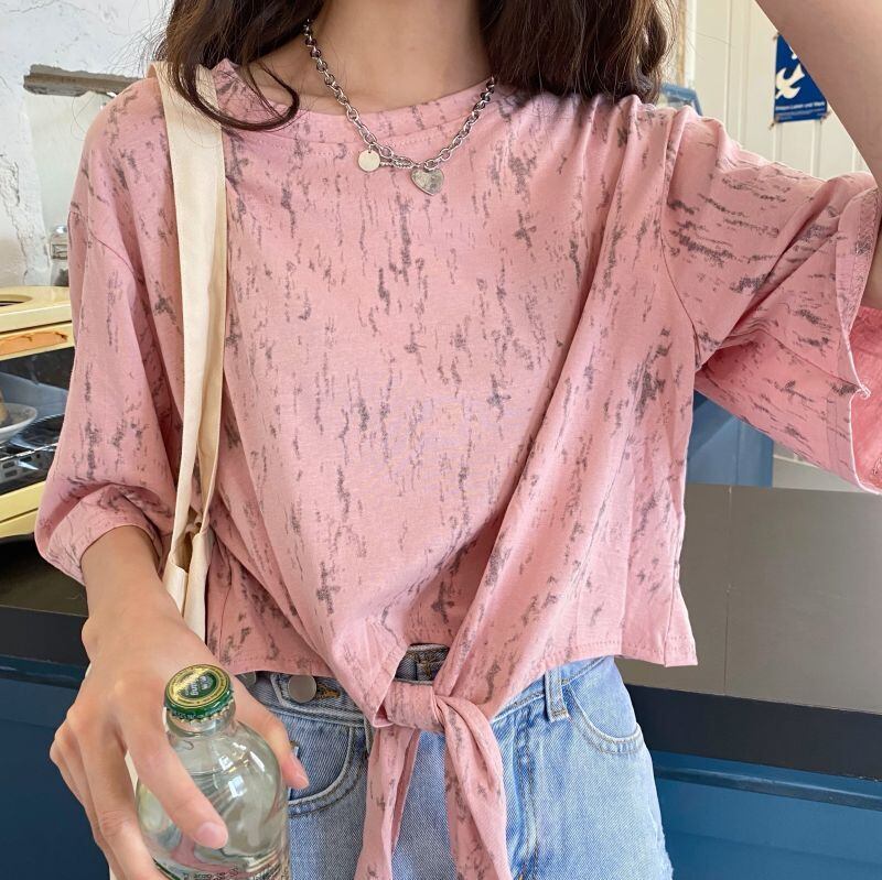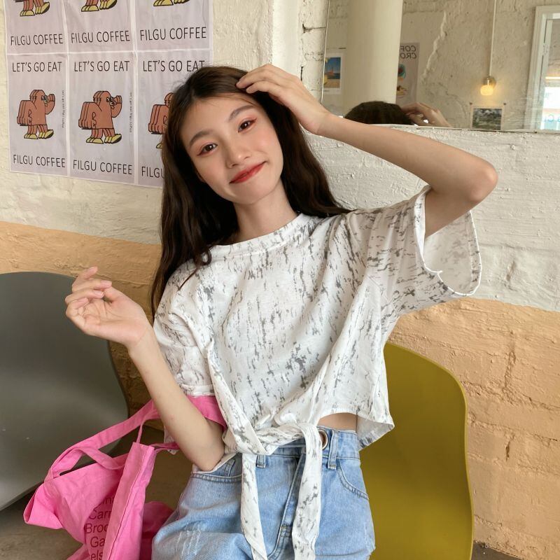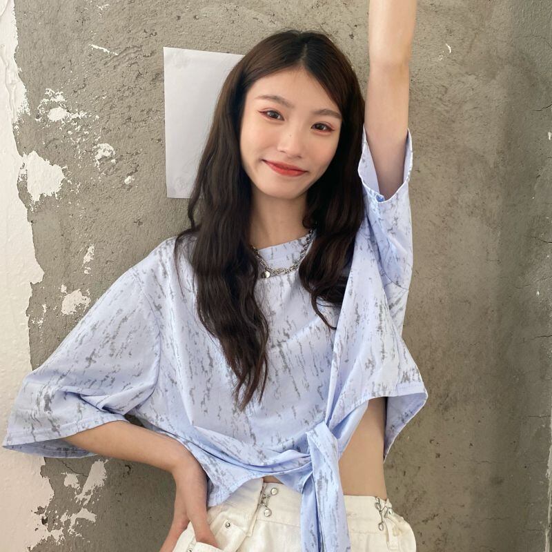 スタイルショートトップス ルーズプリントTシャツ レディースサマー薄手 レース 夏物 レースアップ 萌量不足28195585770