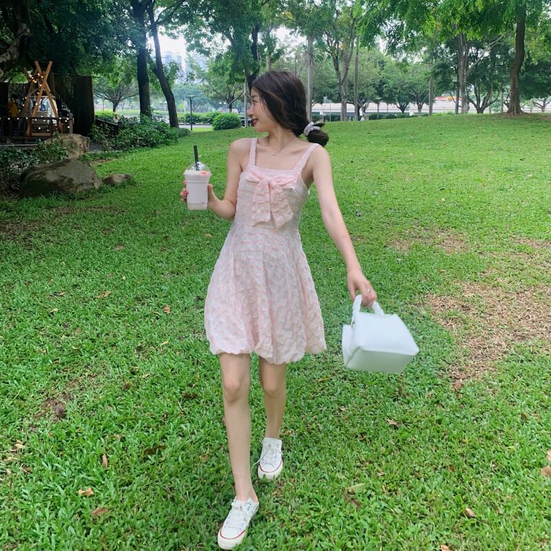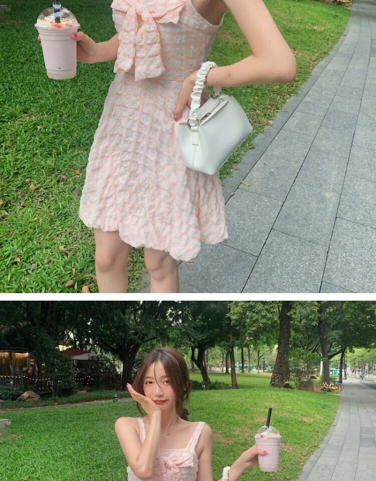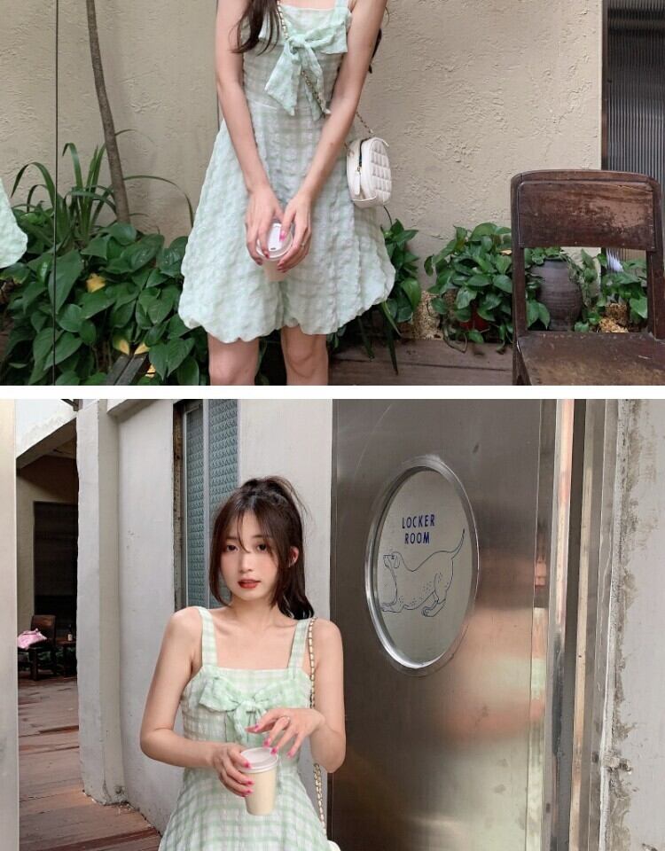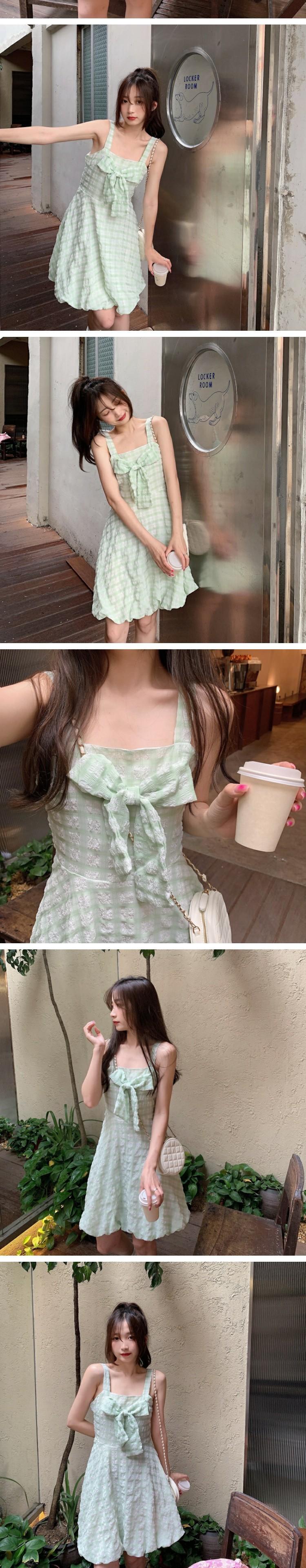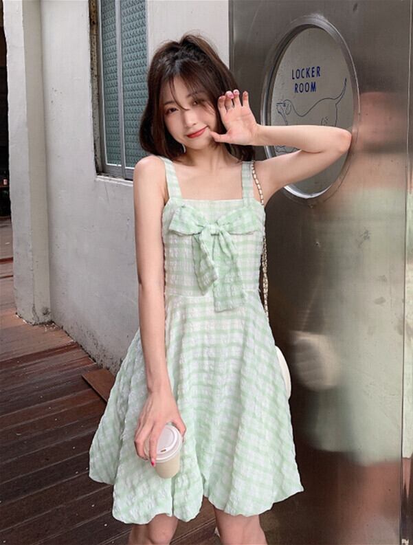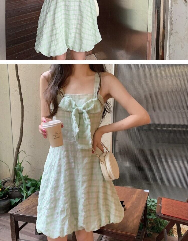 格子柄ドレス サマーウェスト薄手スカート リボン 大人ガーリー スウィート キュート カジュアル 夏物 萌量不足17485554457