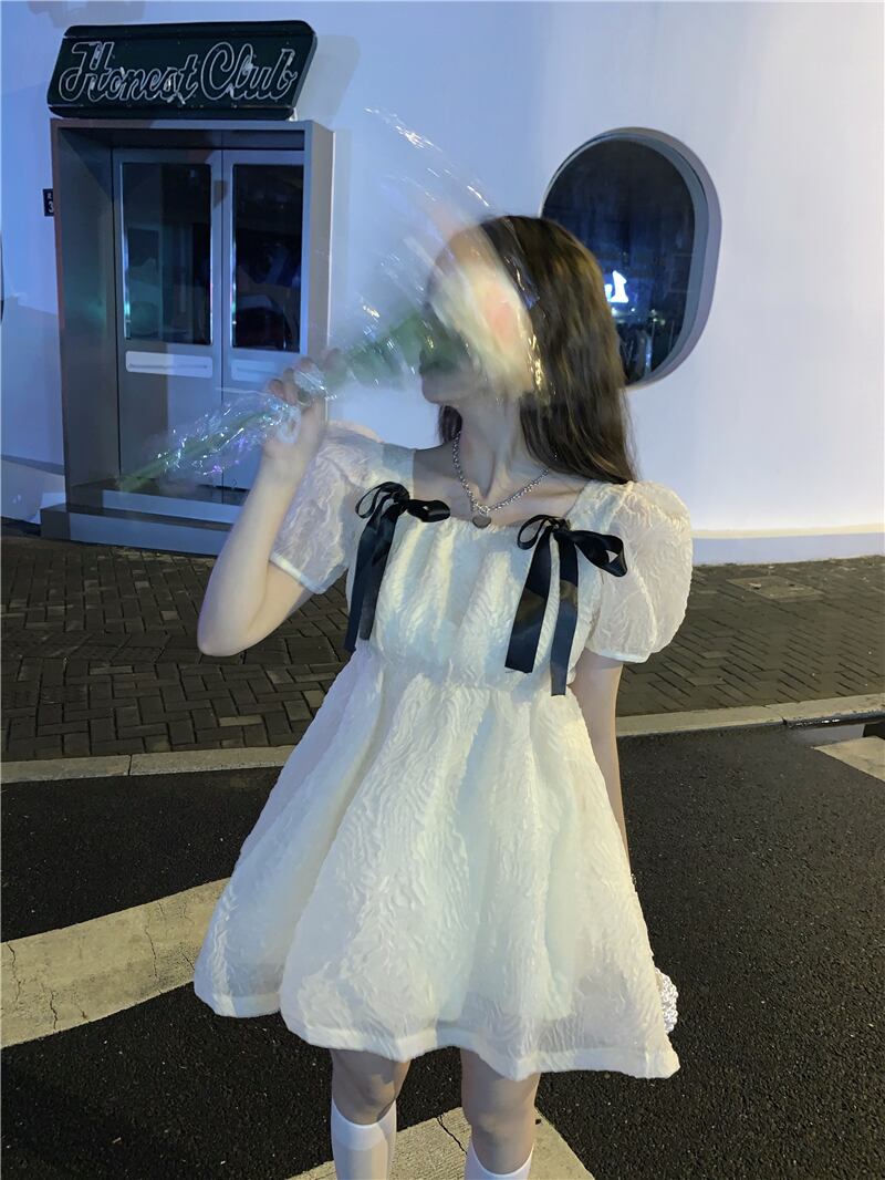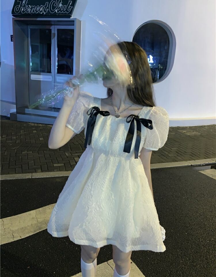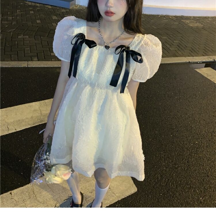 レッドスリーブスカート ハイウェストウェストドレス サマー薄手 リボン 夏物 萌量不足64037828952
