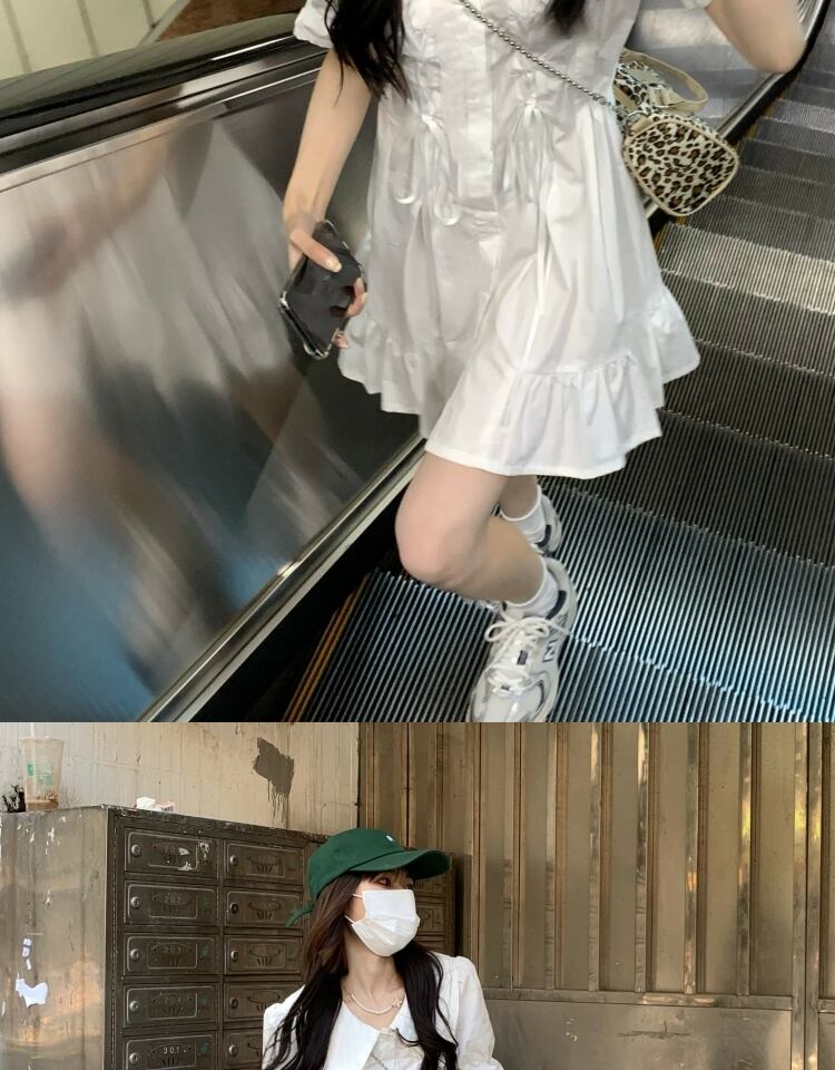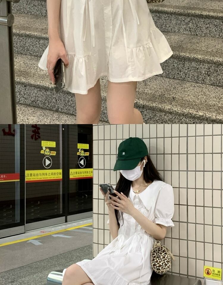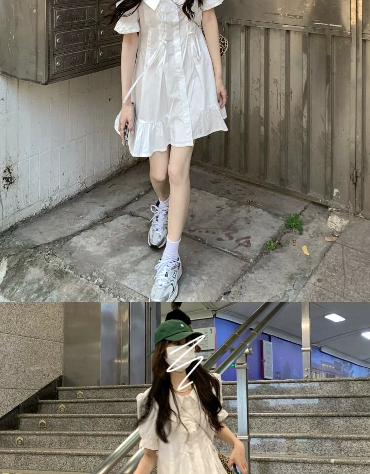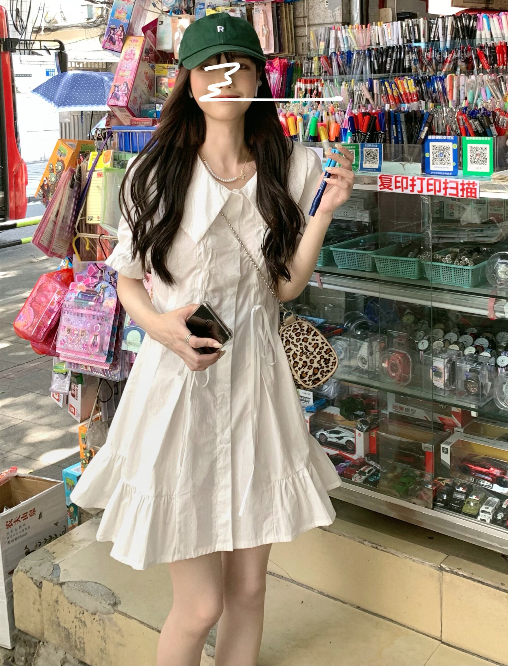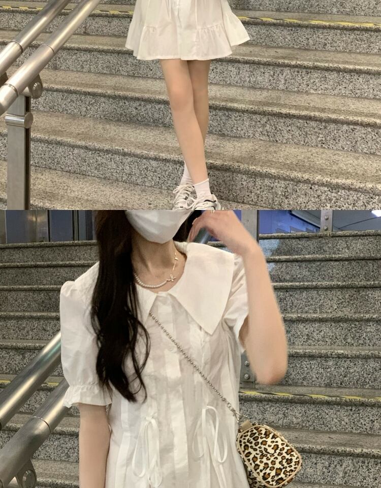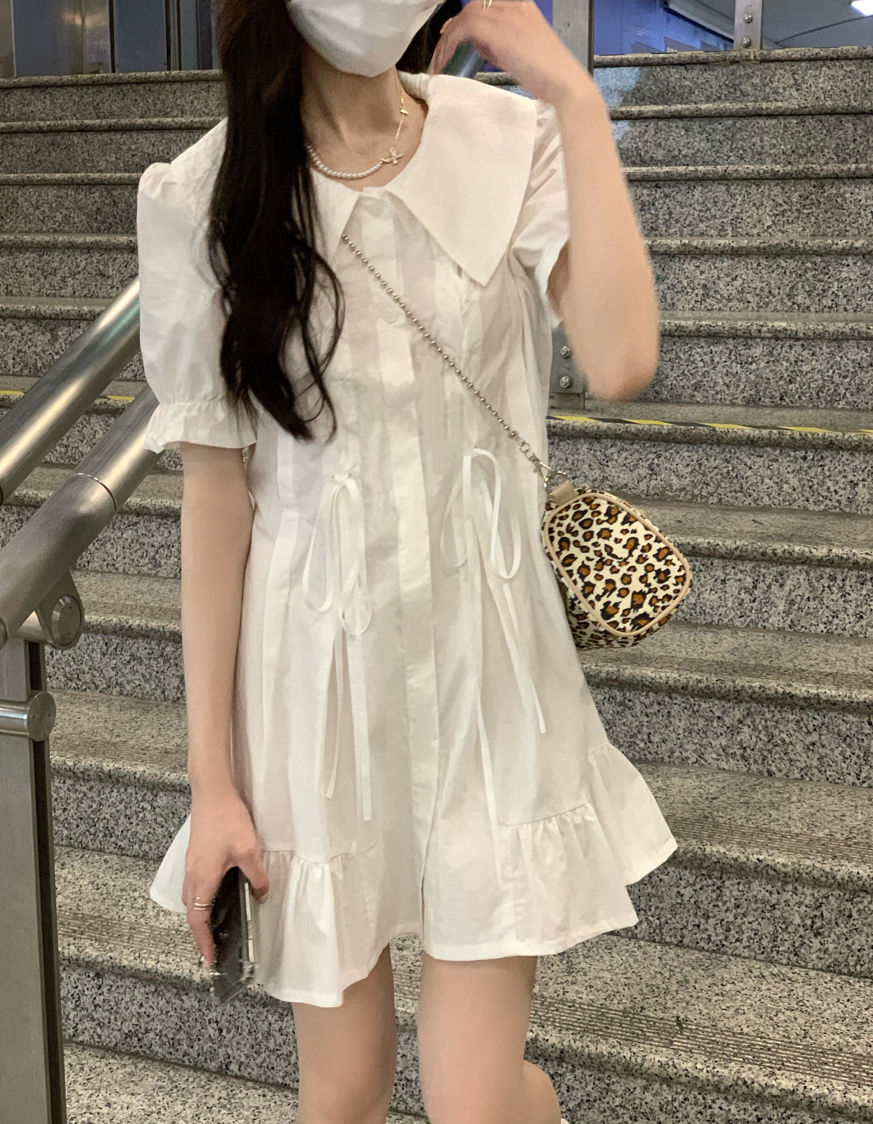 ホワイトリボンシャツ スタイルドレス サマースリーブスカート 夏物 ピュア 萌量不足46019590075