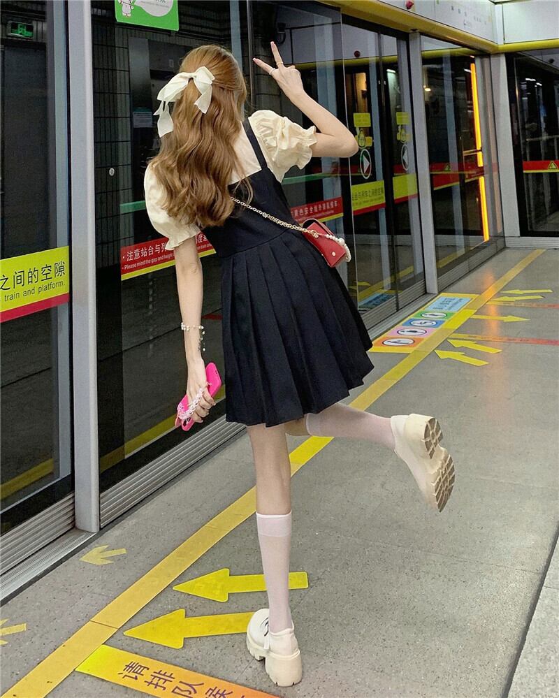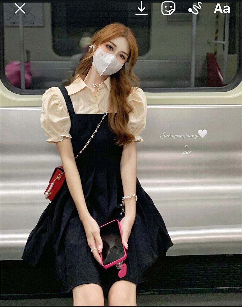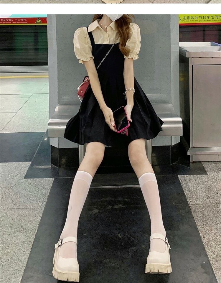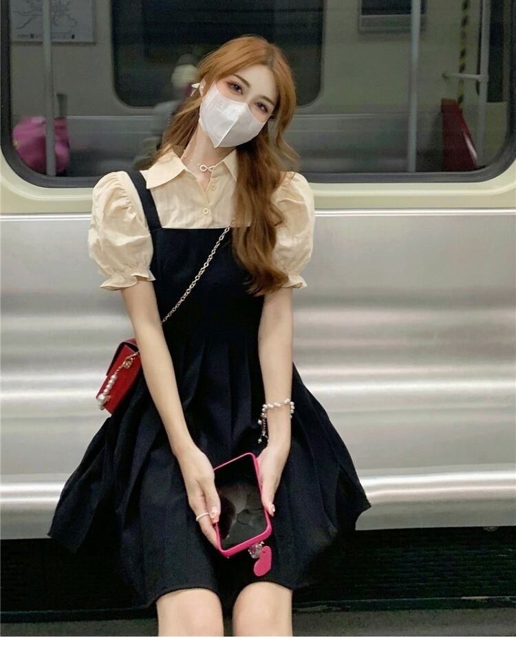スリーブドレス サマーウェストAラインスカート 大人ガーリー スウィート キュート カジュアル 夏物 ステッチ 萌量不足89929483702
