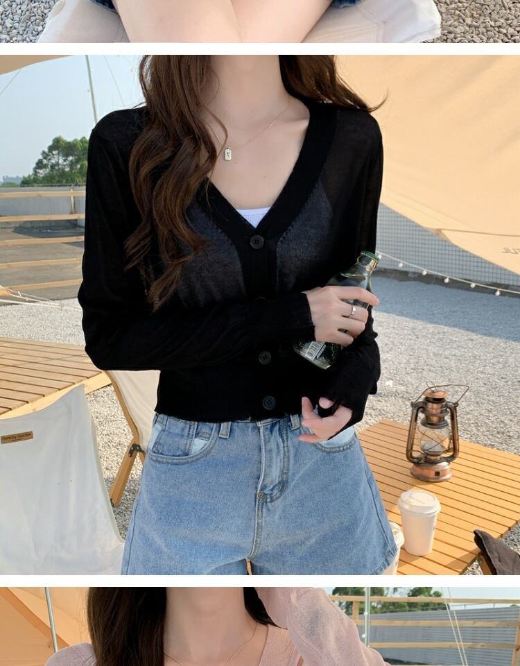 ニットセーター レディース薄手カーディガンジャケット ブラックトップス サマーシャツ ロング 夏物 萌量不足30417609877