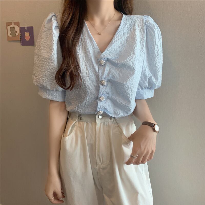 プリーツスリーブシャツ レディースサマーカーディガントップス 大人ガーリー スウィート キュート カジュアル 夏物 萌量不足15344571766