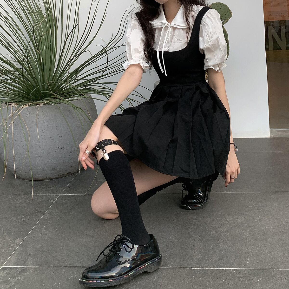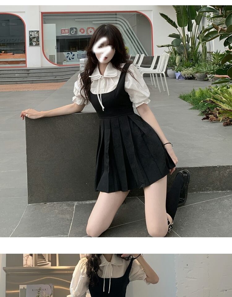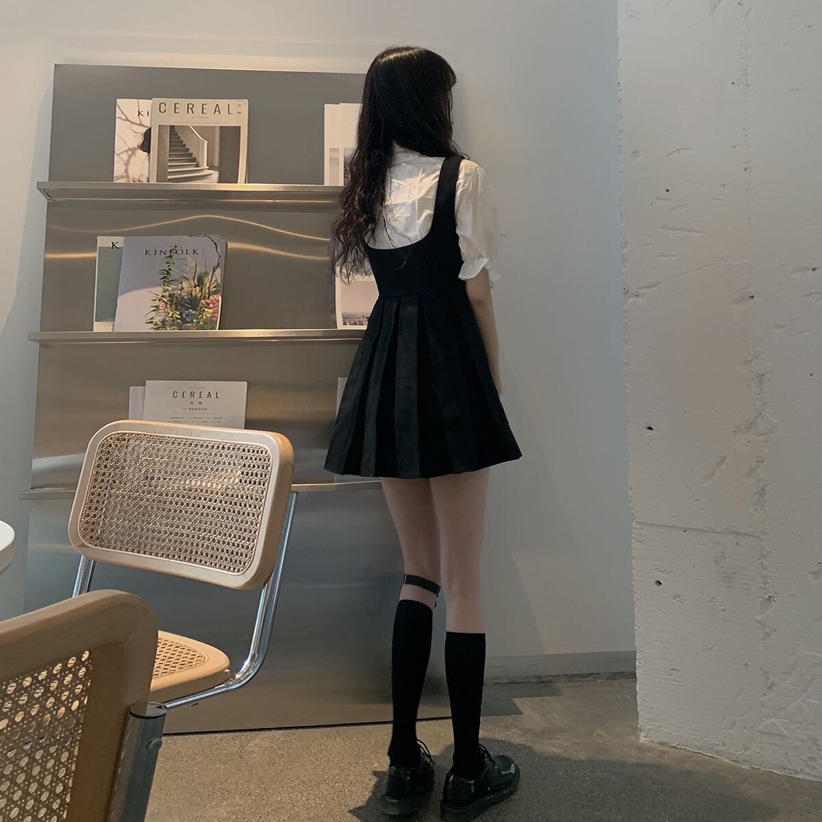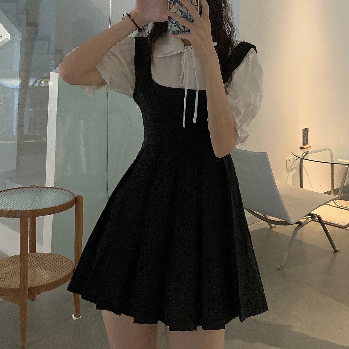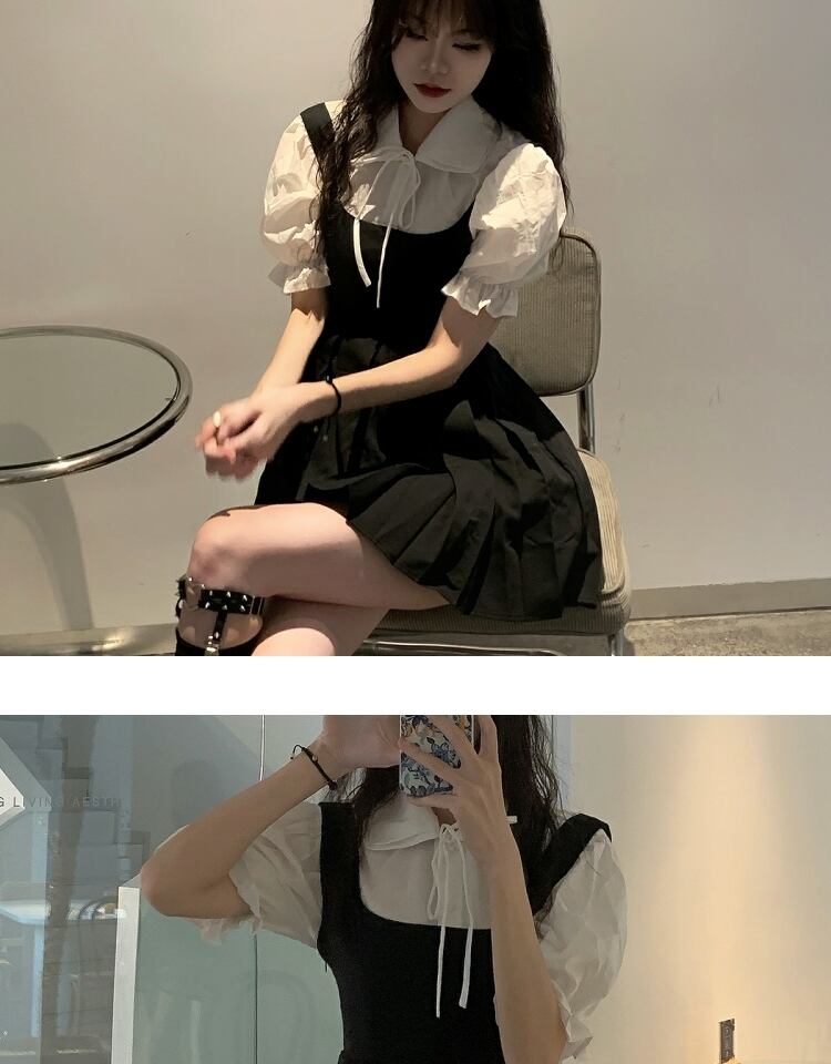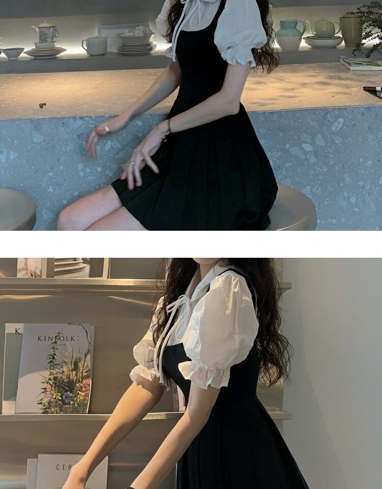 色:白いシャツのワンピース,ブラックストラップドレスワンピース