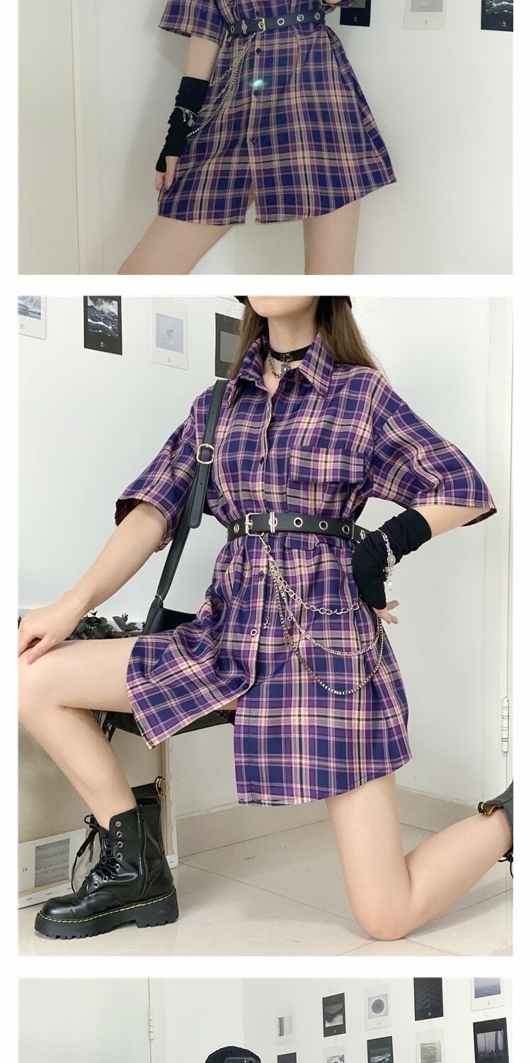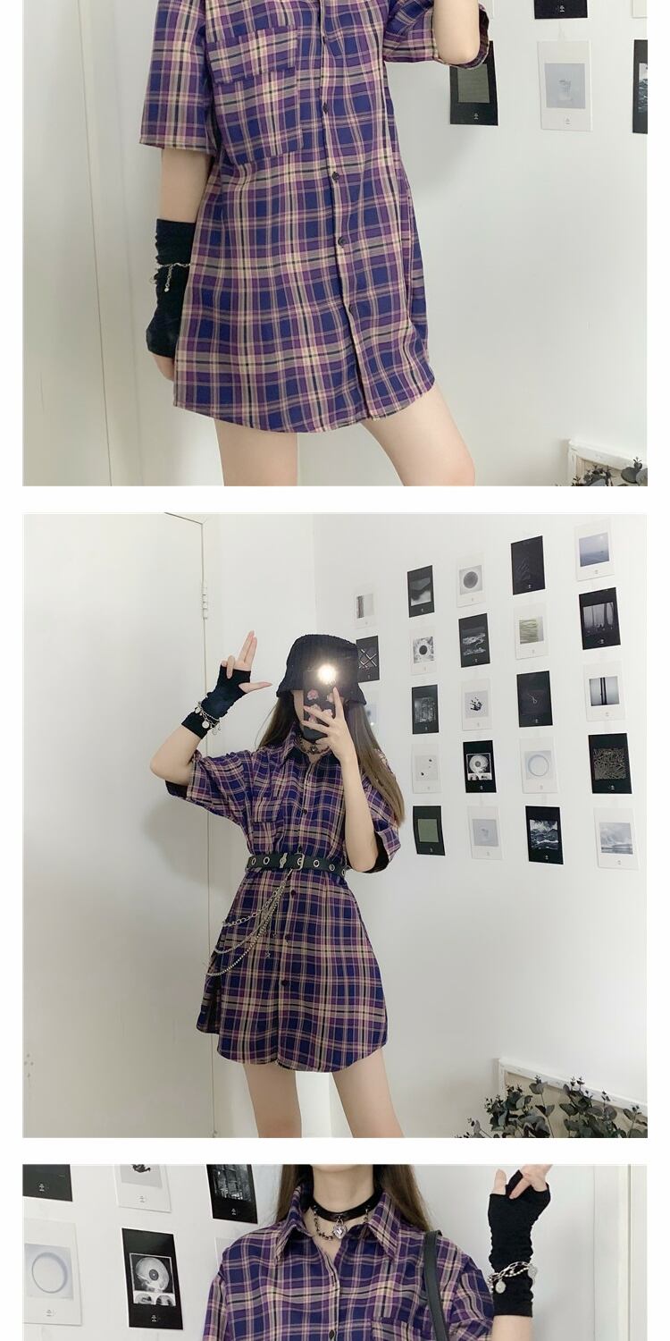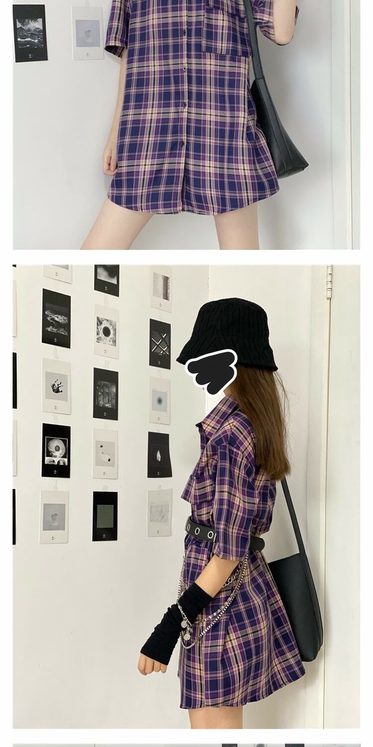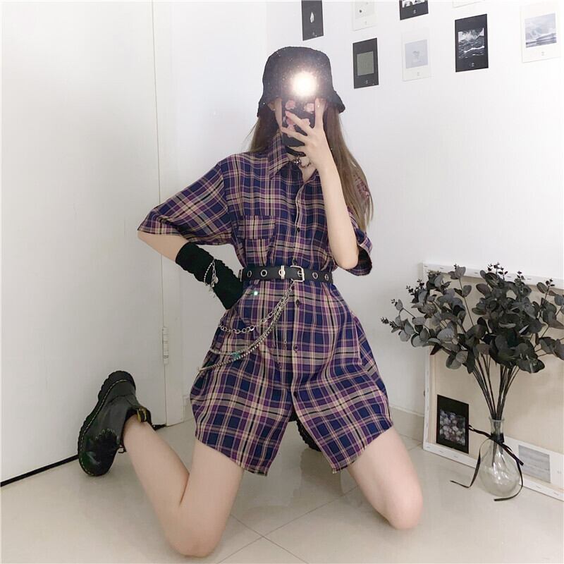 ダーク格子柄シャツ ブラウス スプリングルーズ 春物 パープル 萌量不足19114552494