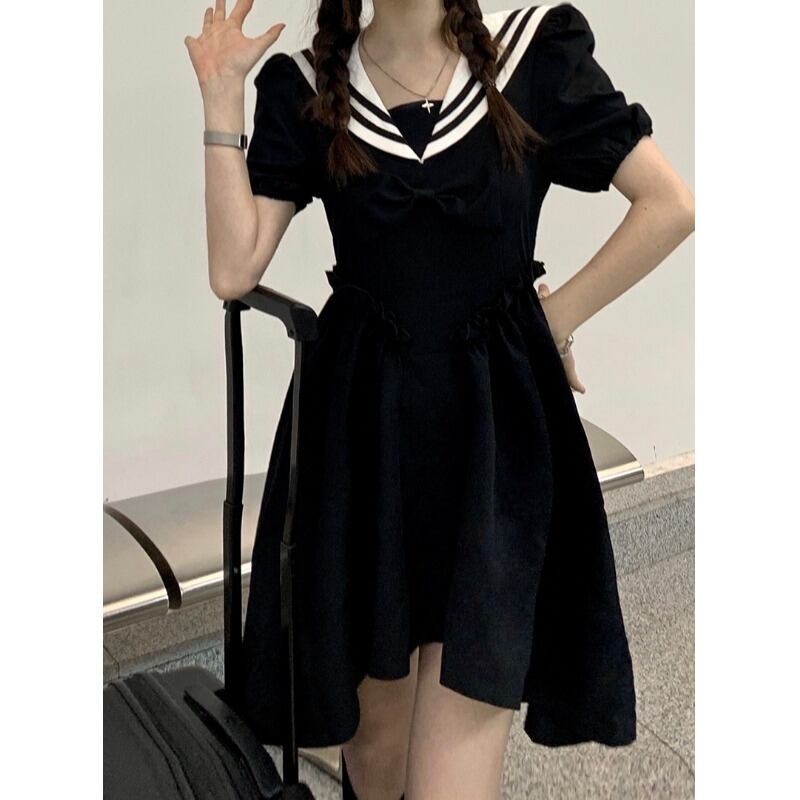 スタイルネイビーカラーウェストドレス サマーブラックスカート 大人ガーリー スウィート キュート カジュアル 夏物 萌量不足85369220520