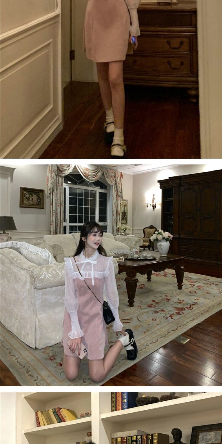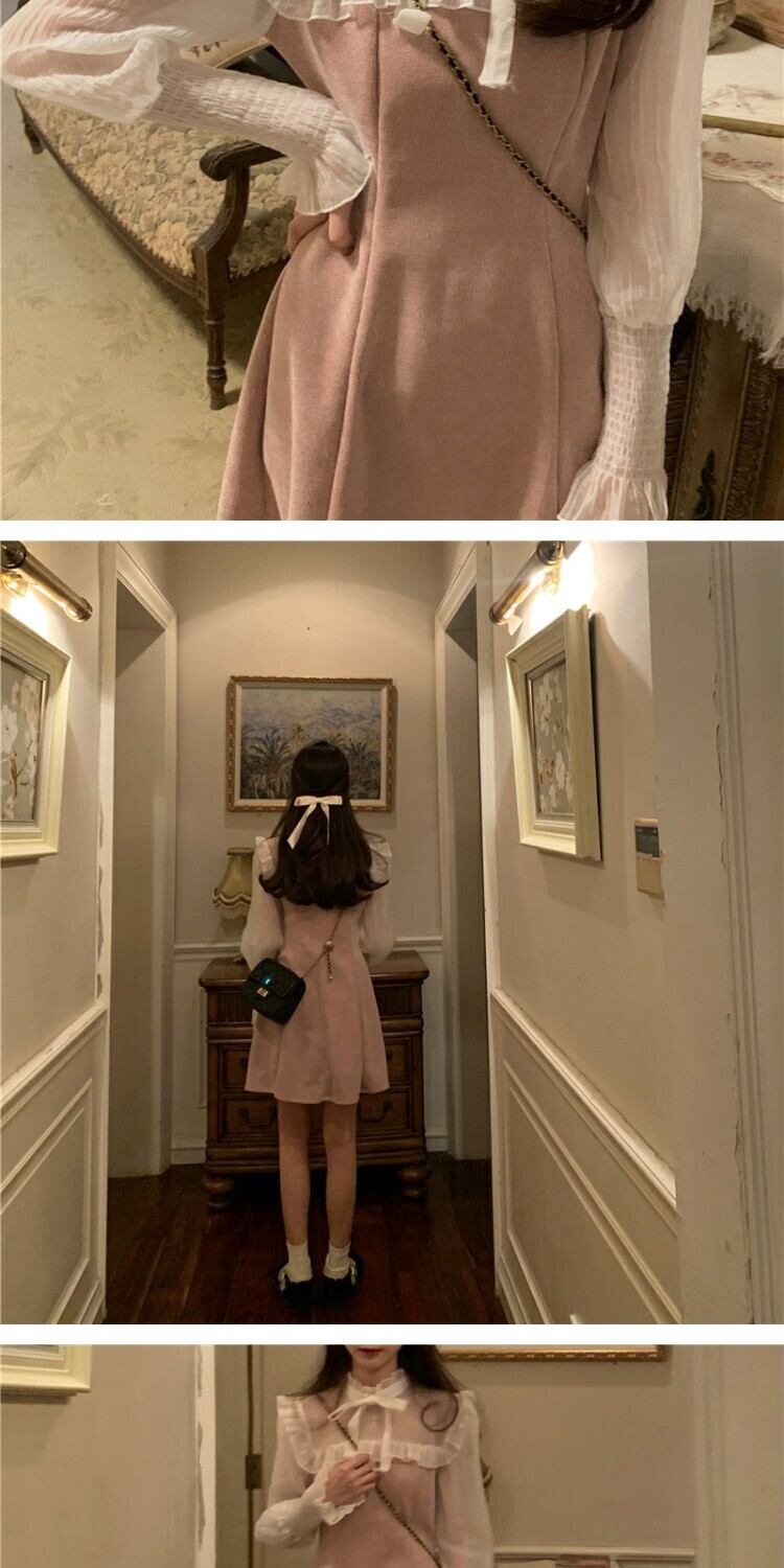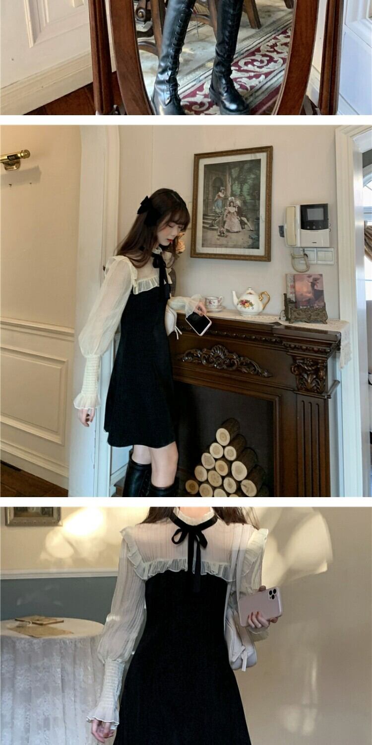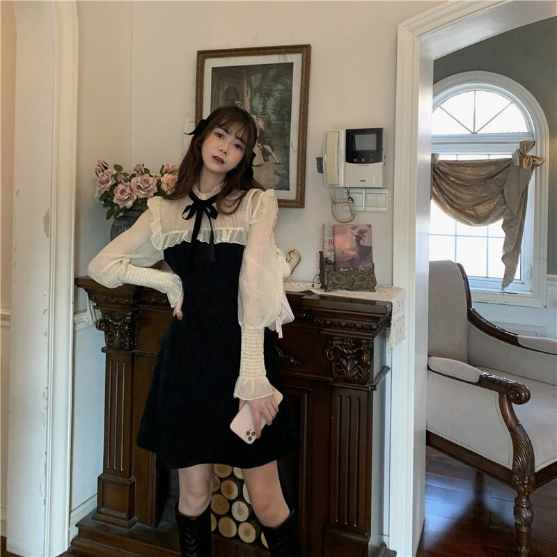 メッシュスリーブドレス スプリングウェスト薄手スカート 春物 ステッチ 萌量不足44187170092