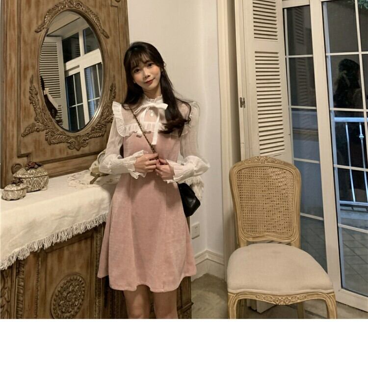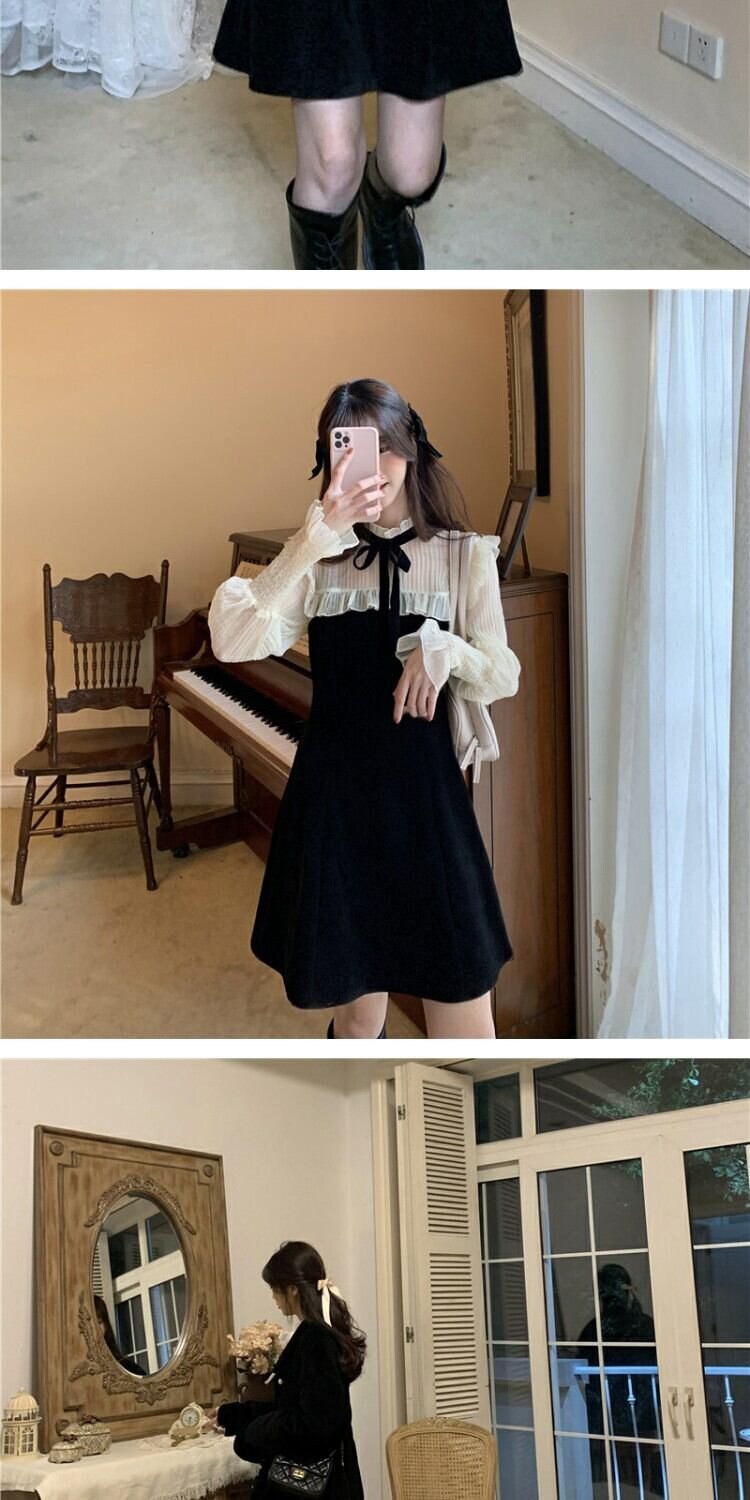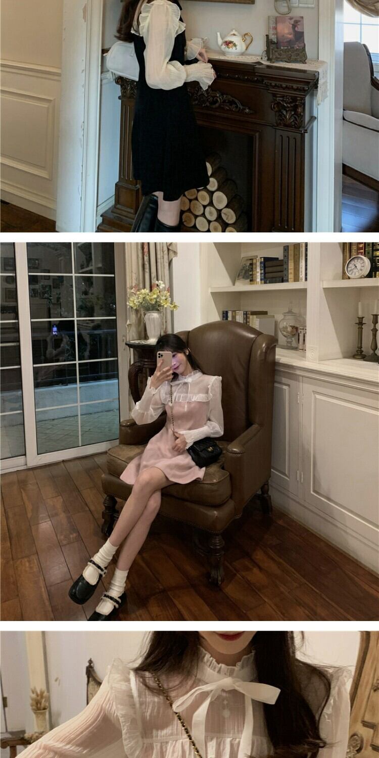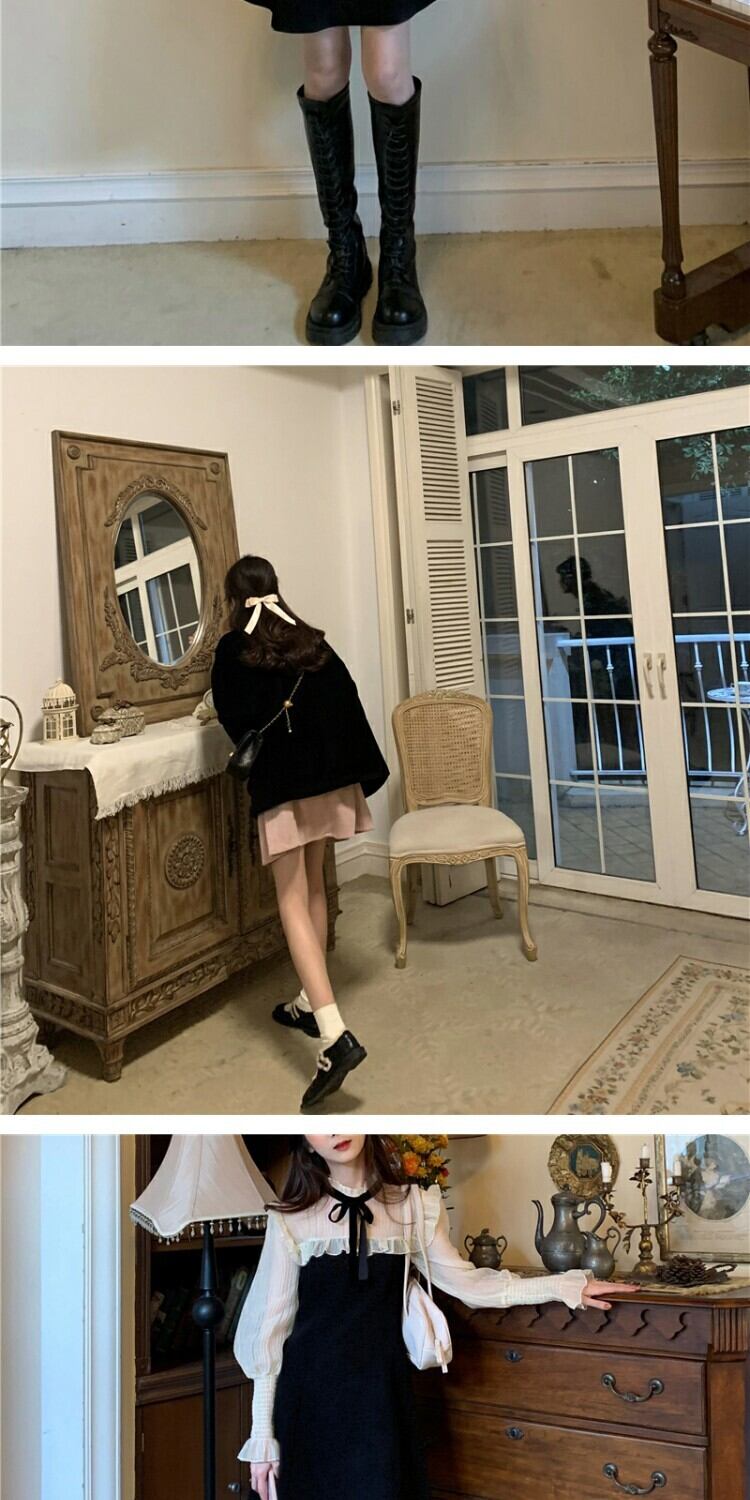 メッシュスリーブドレス スプリングウェスト薄手スカート 春物 ステッチ 萌量不足44187170092