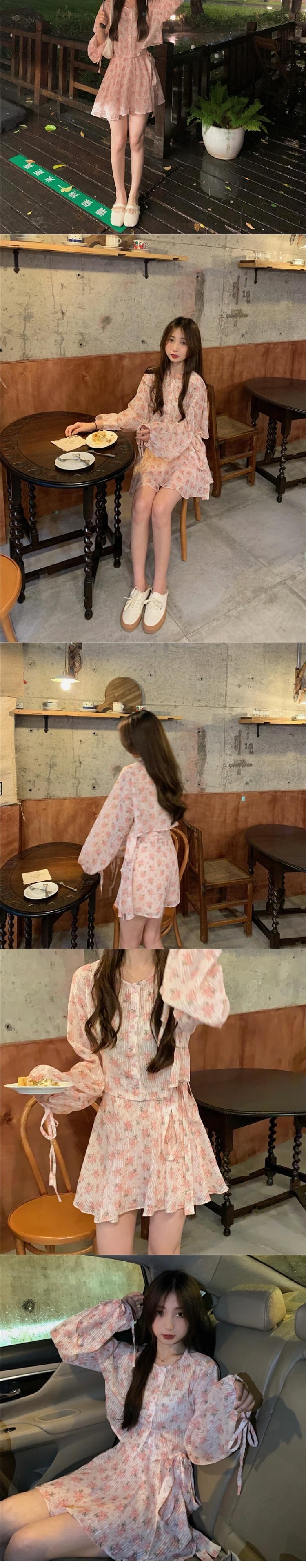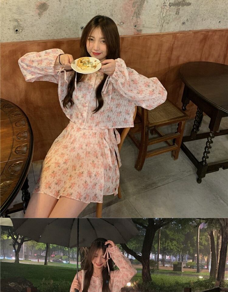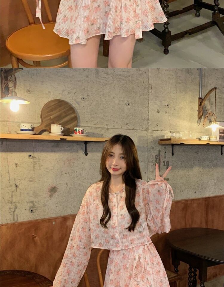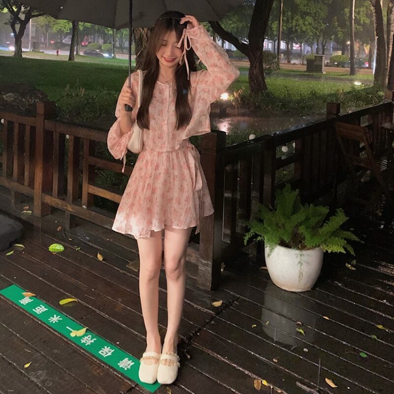 サマーフローラルカーディガンハイウェストスカート ロング 大人ガーリー スウィート キュート カジュアル 夏物 花柄 萌量不足51290911137