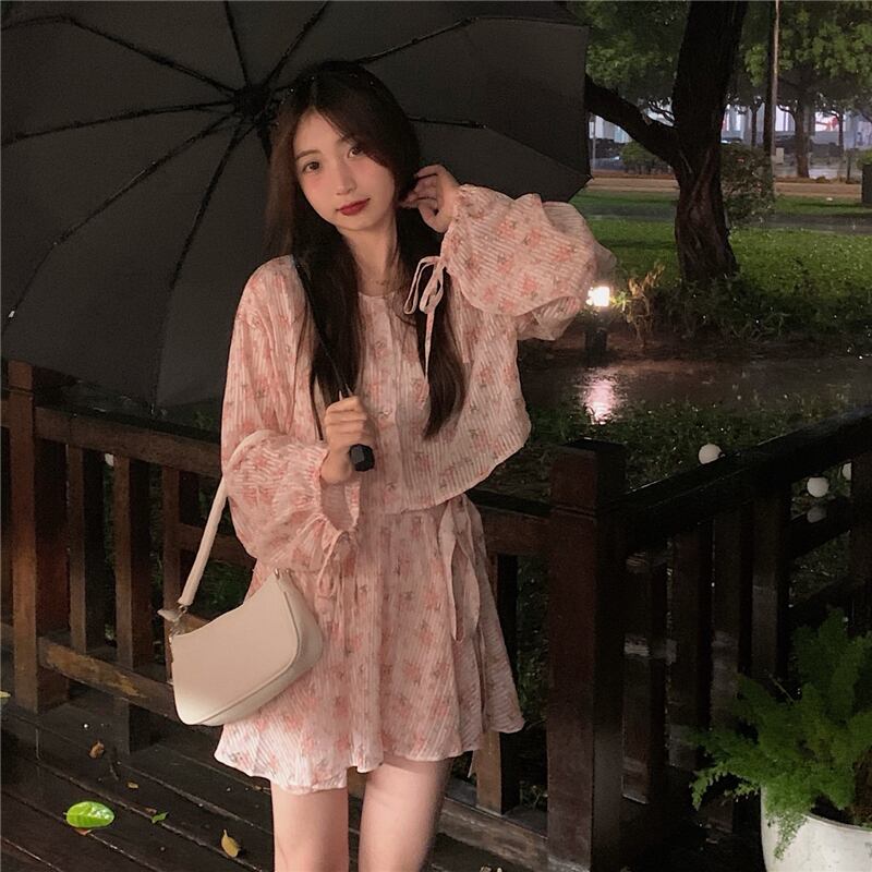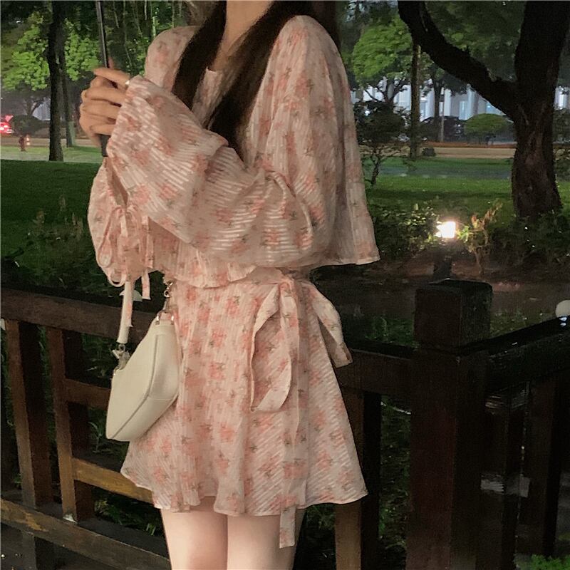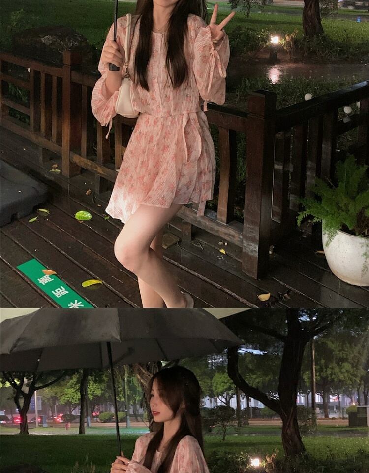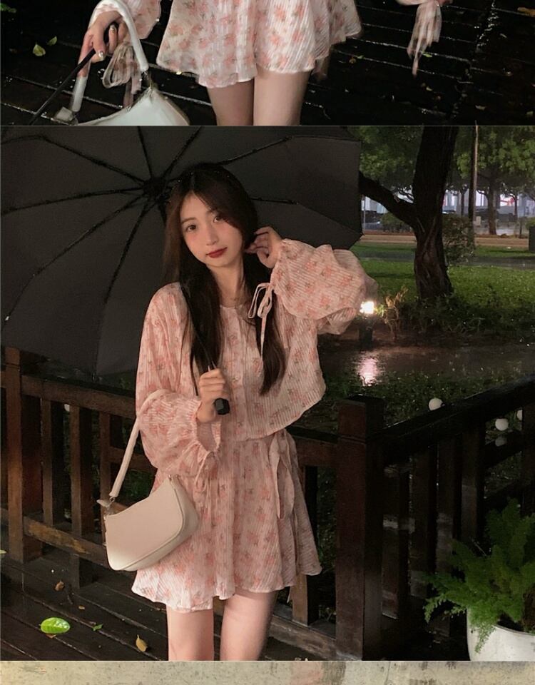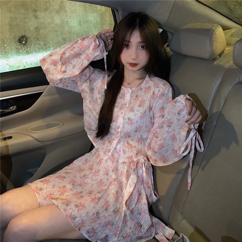 サマーフローラルカーディガンハイウェストスカート ロング 大人ガーリー スウィート キュート カジュアル 夏物 花柄 萌量不足51290911137