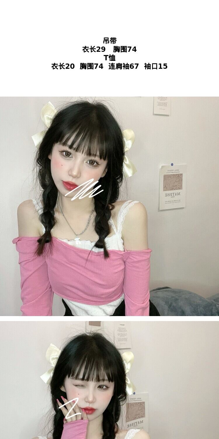 色:ホワイトTシングルピース,白いサスペンダー1枚,ピンクtシングル,黒いストラップのワンピース