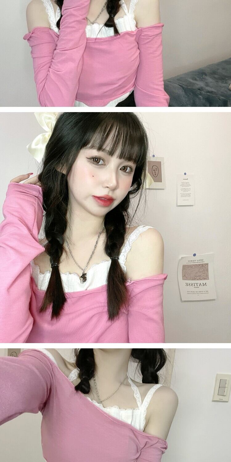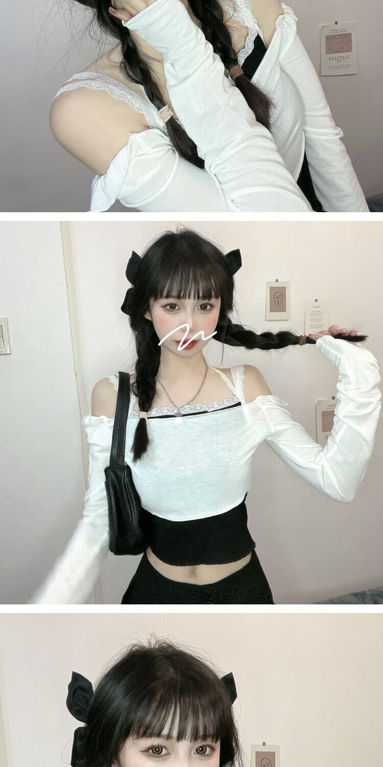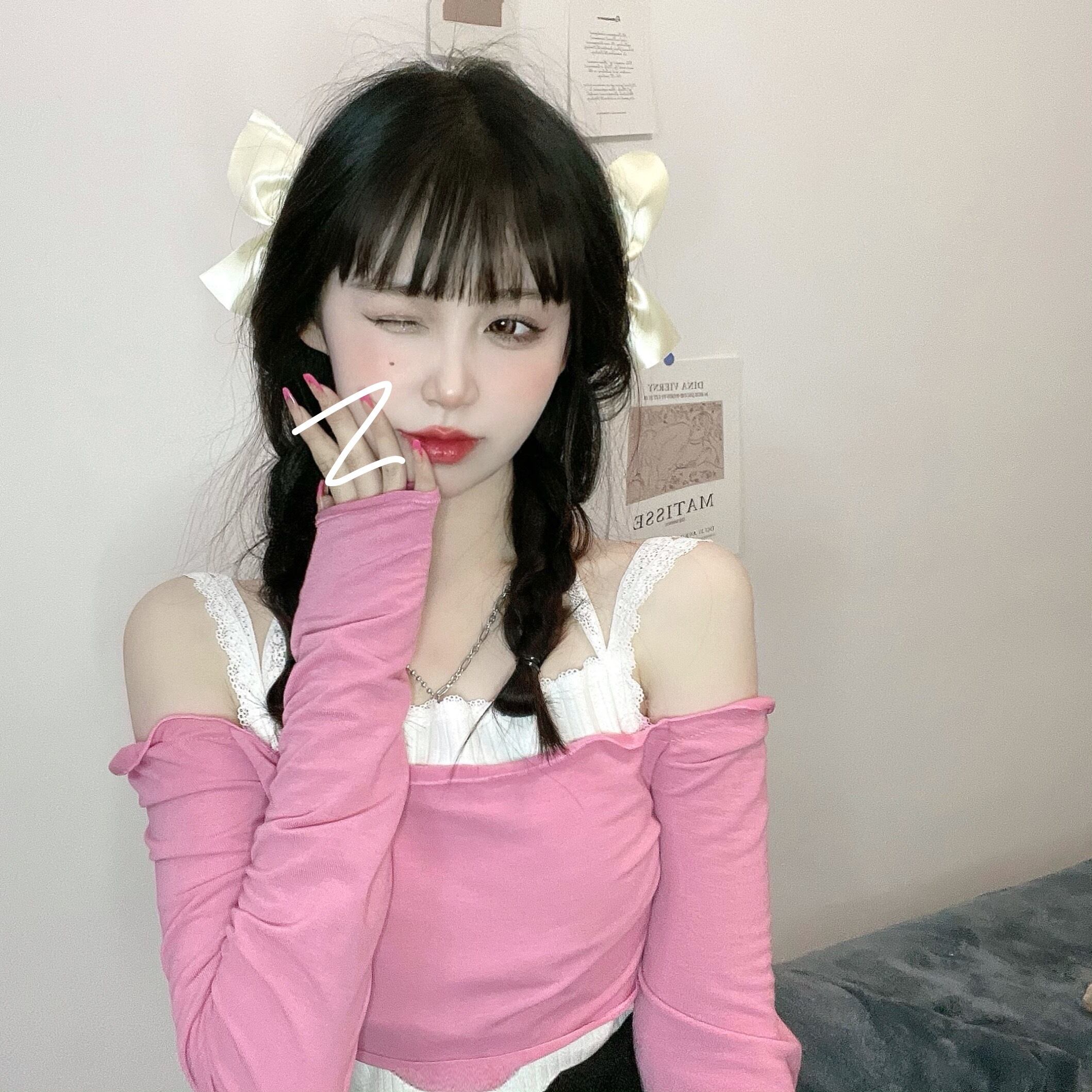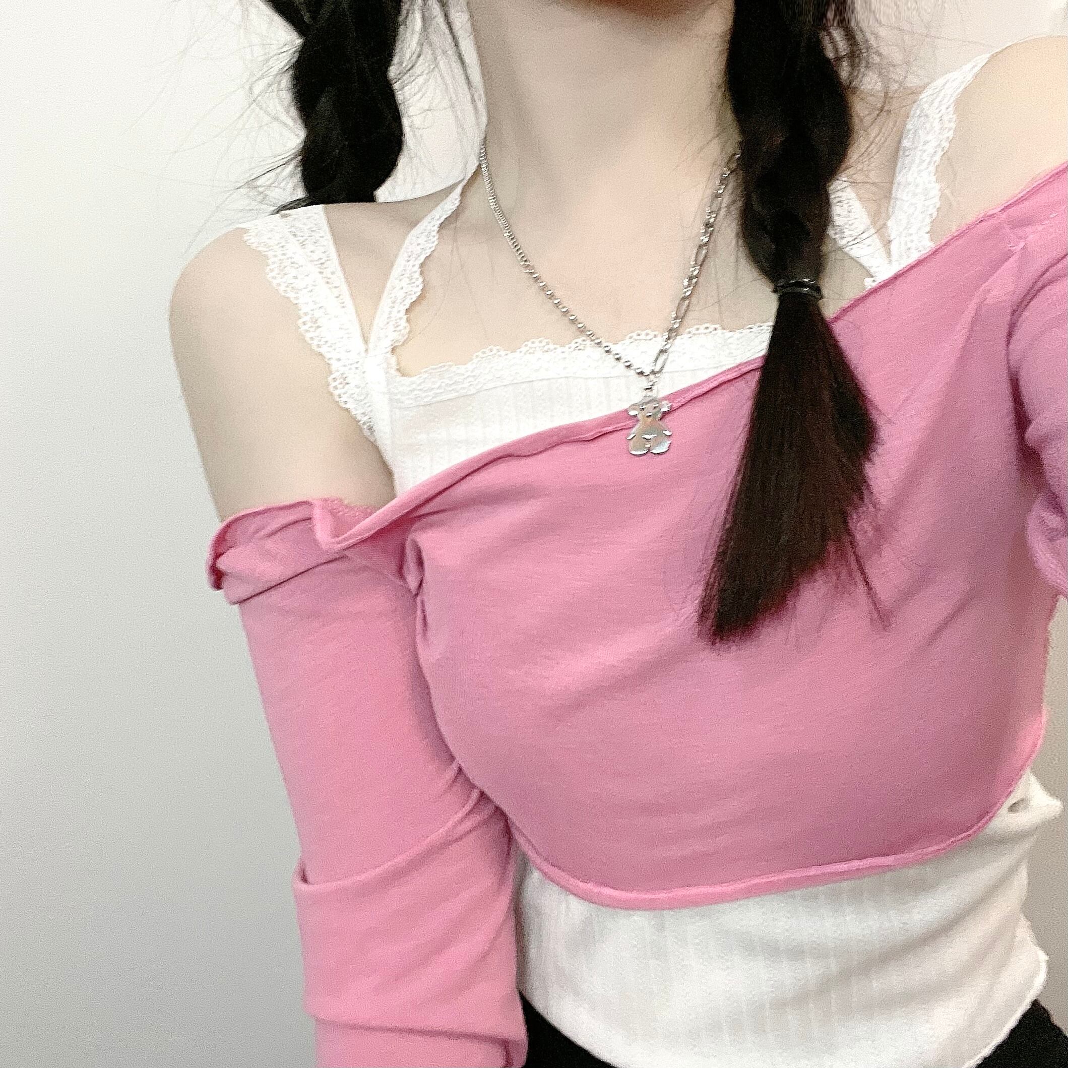 Tシャツ シャツ レディーススプリングオータムショートクロップドスリム ロング 春物 秋物 萌量不足56633825774