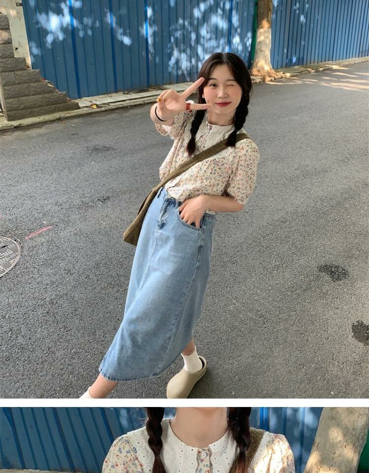 サマースタイルフローラルレースカラー ブラウス 大人ガーリー スウィート キュート カジュアル 夏物 花柄 萌量不足17145042601