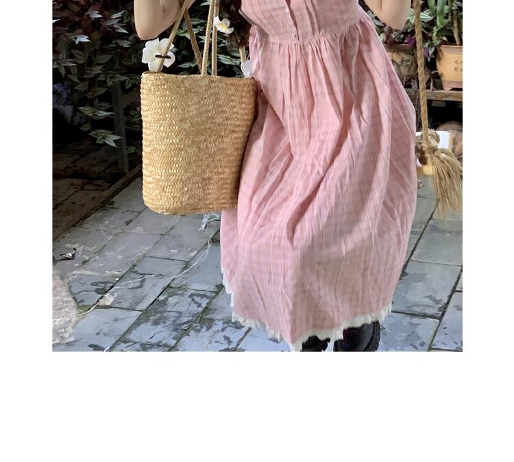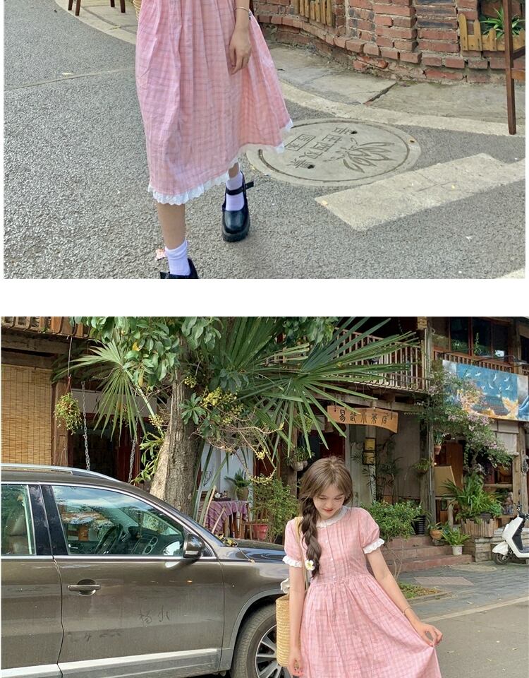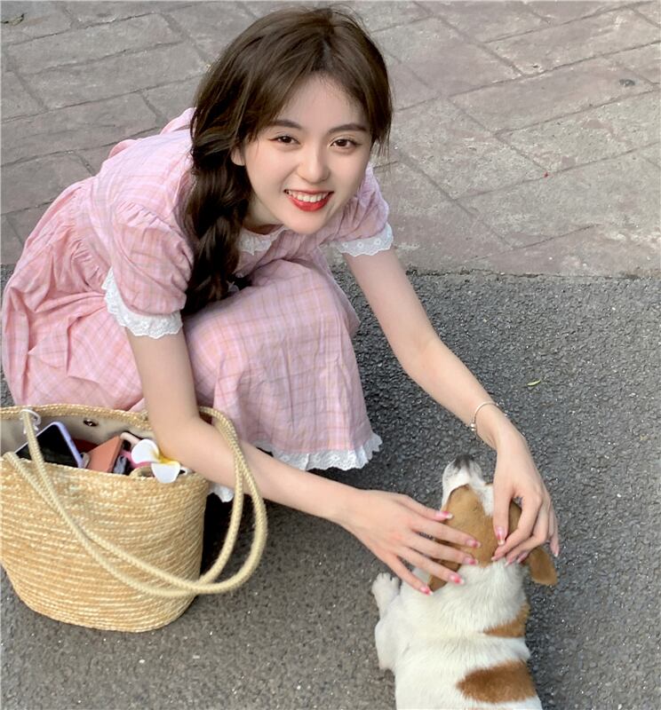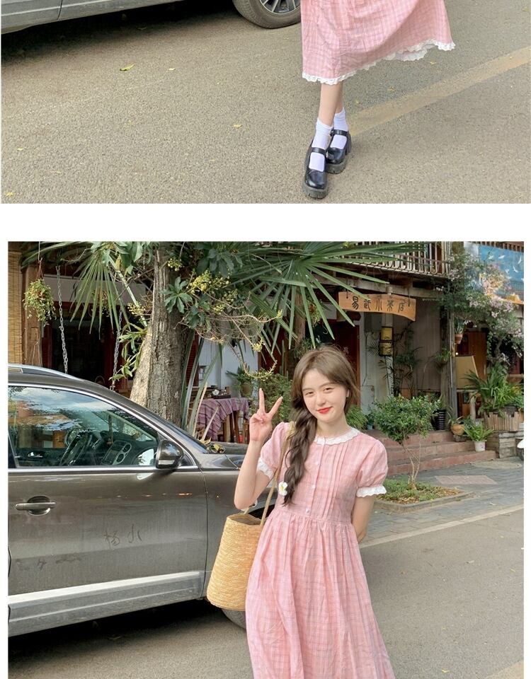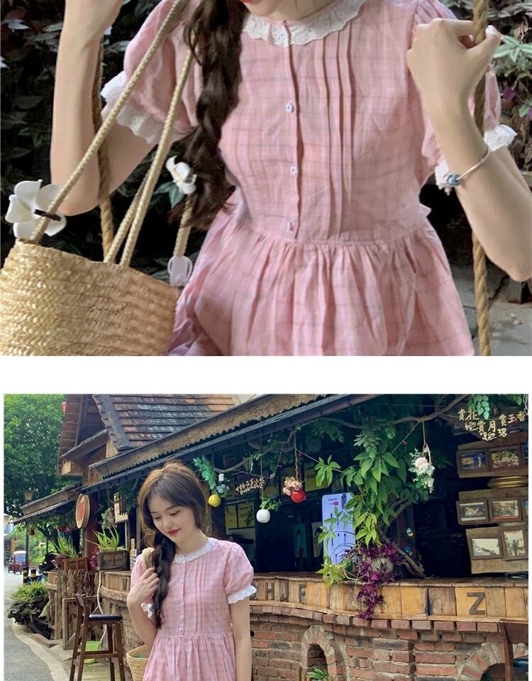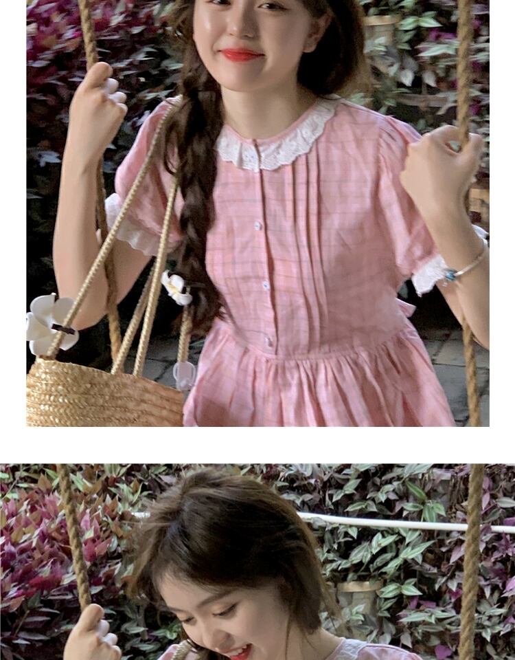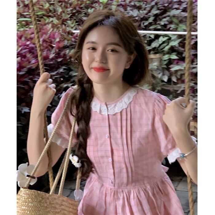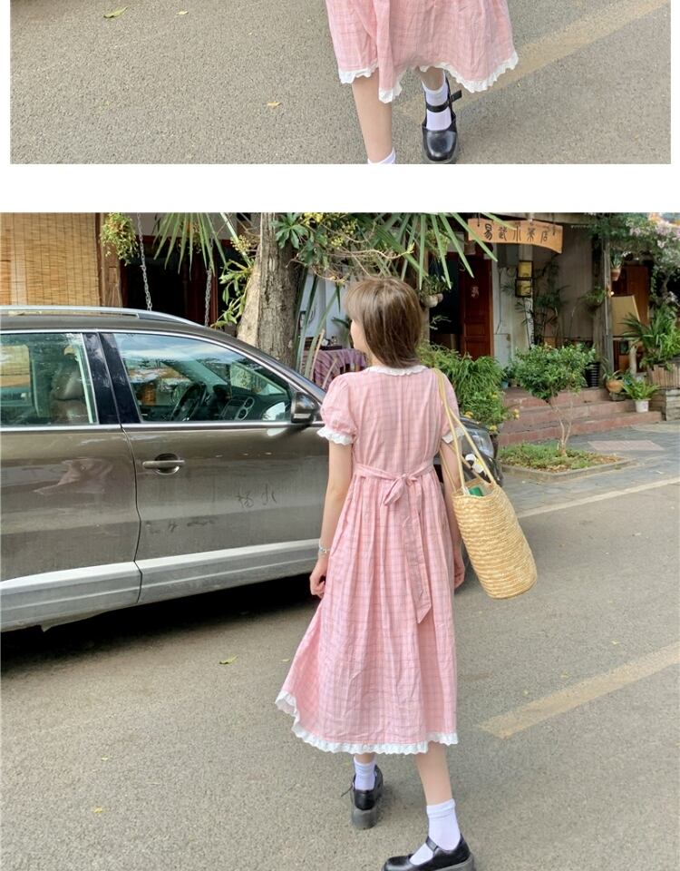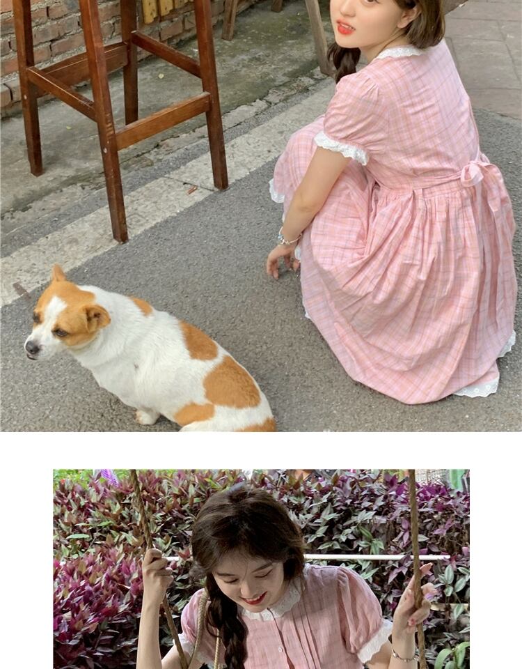 レースドレス サマーウェストロングスカート スリーブ格子柄 大人ガーリー スウィート キュート カジュアル 夏物 萌量不足5293225847