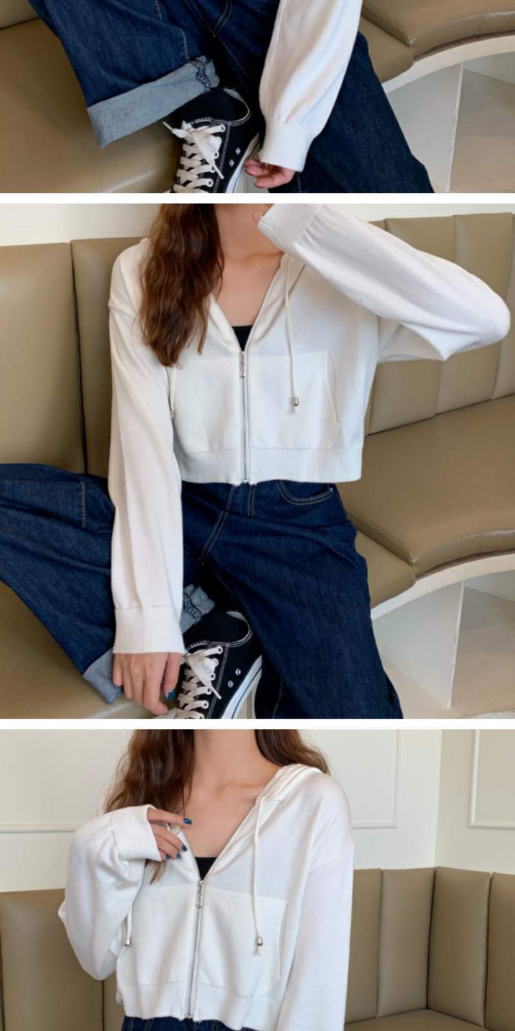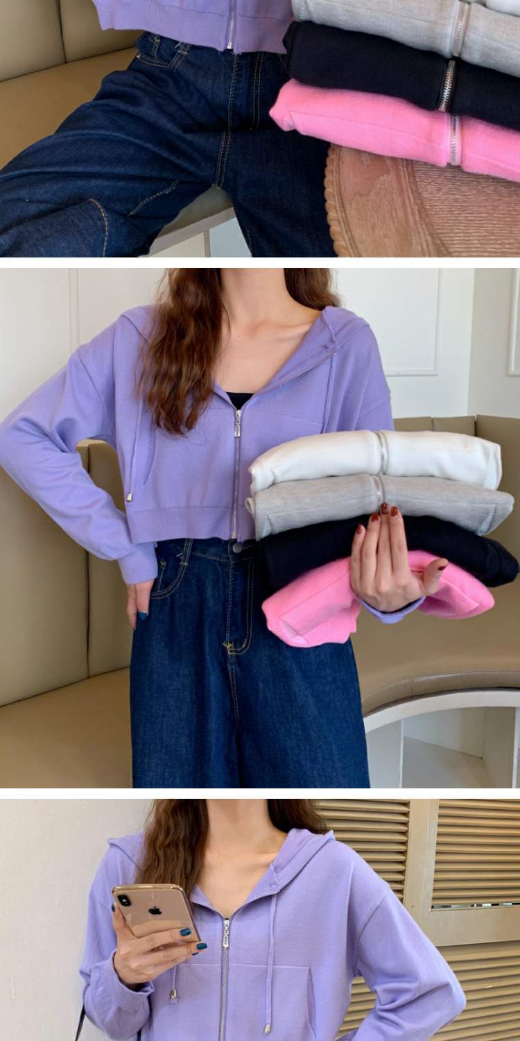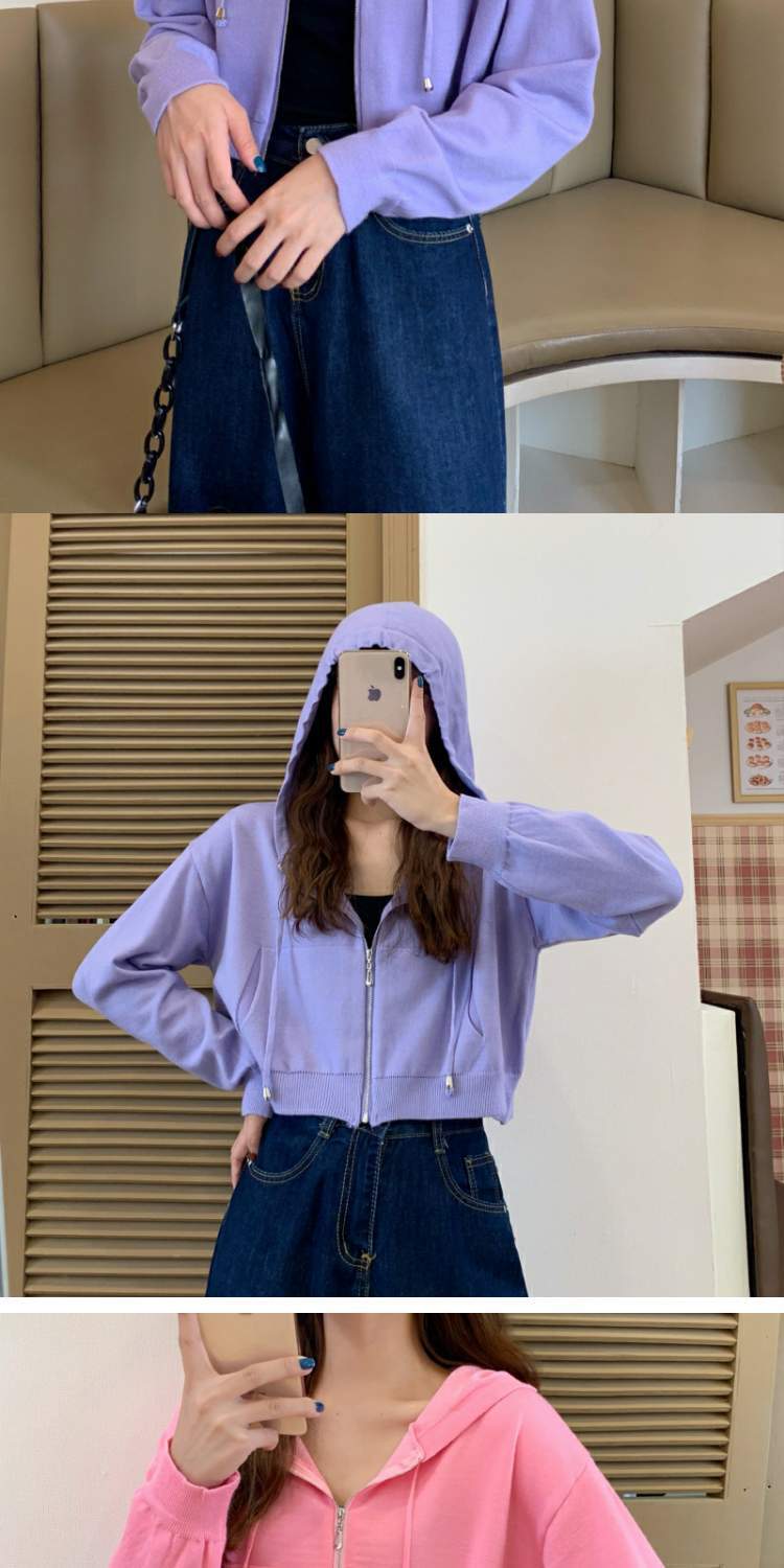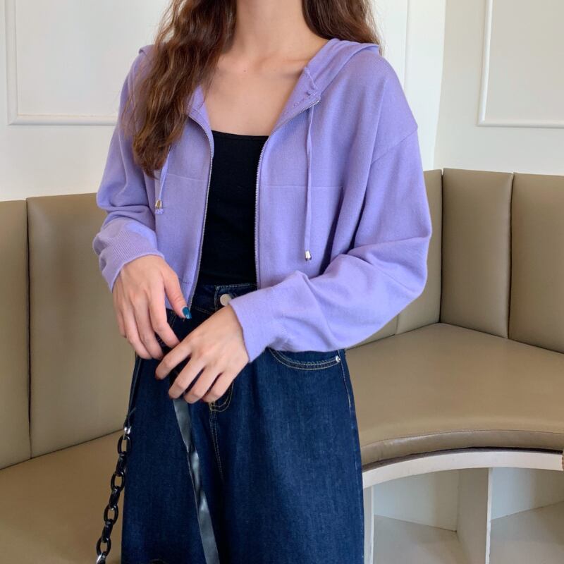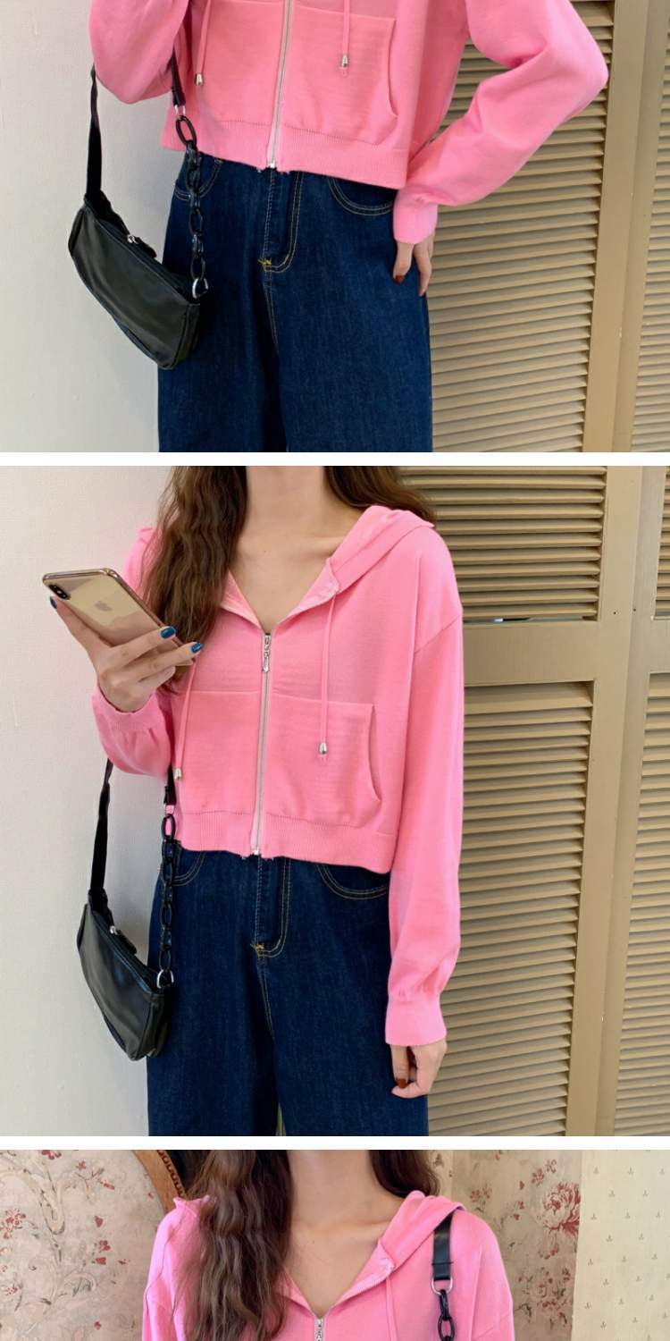 ショートルーズフードジッパーニットセーター スプリングオータムカーディガントップス ロング 春物 秋物 萌量不足23196993984