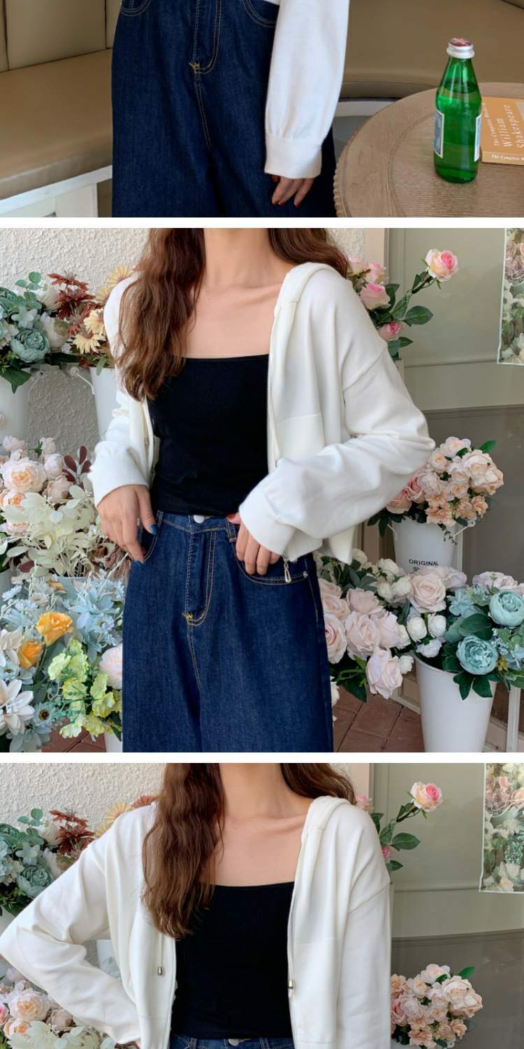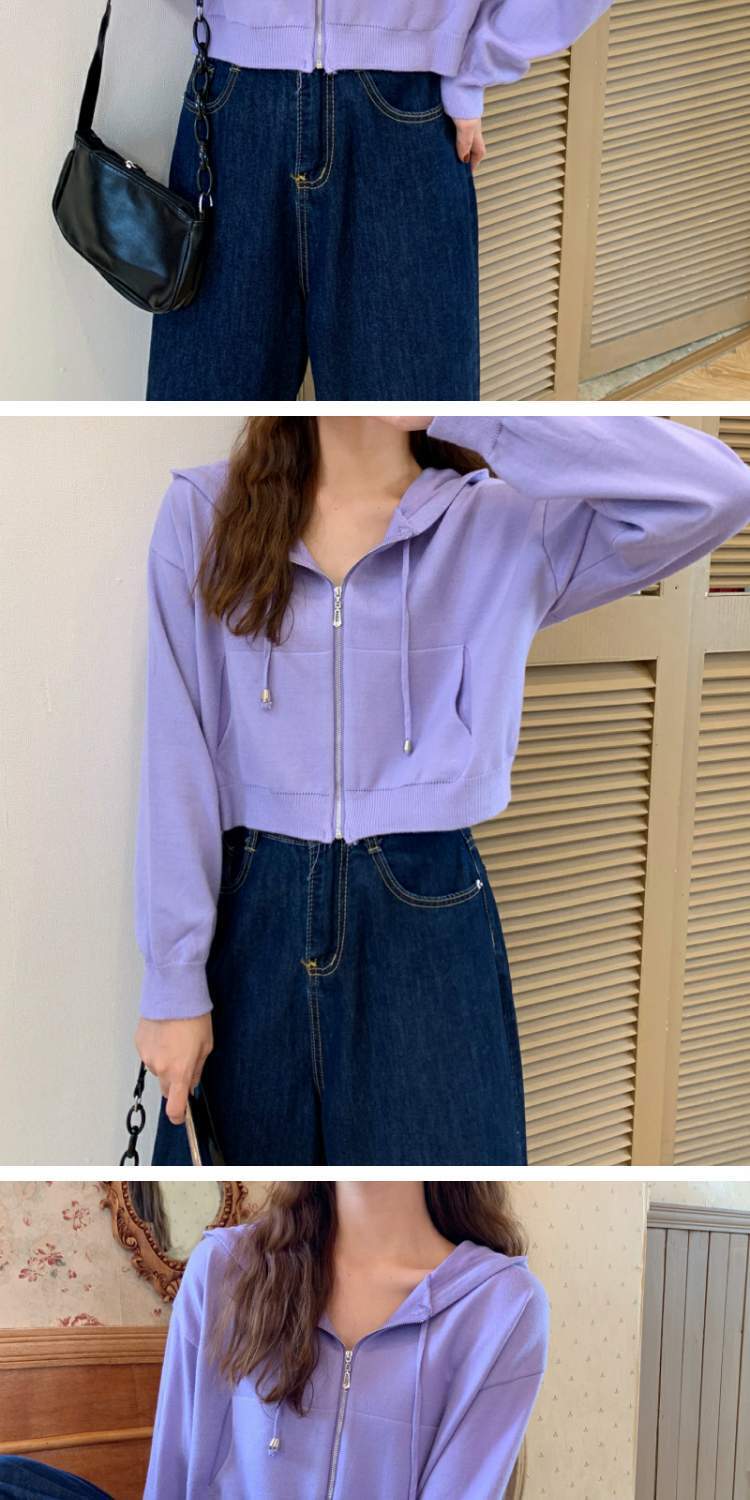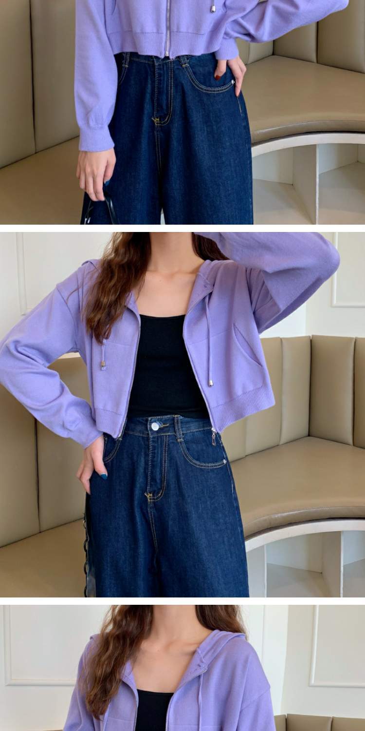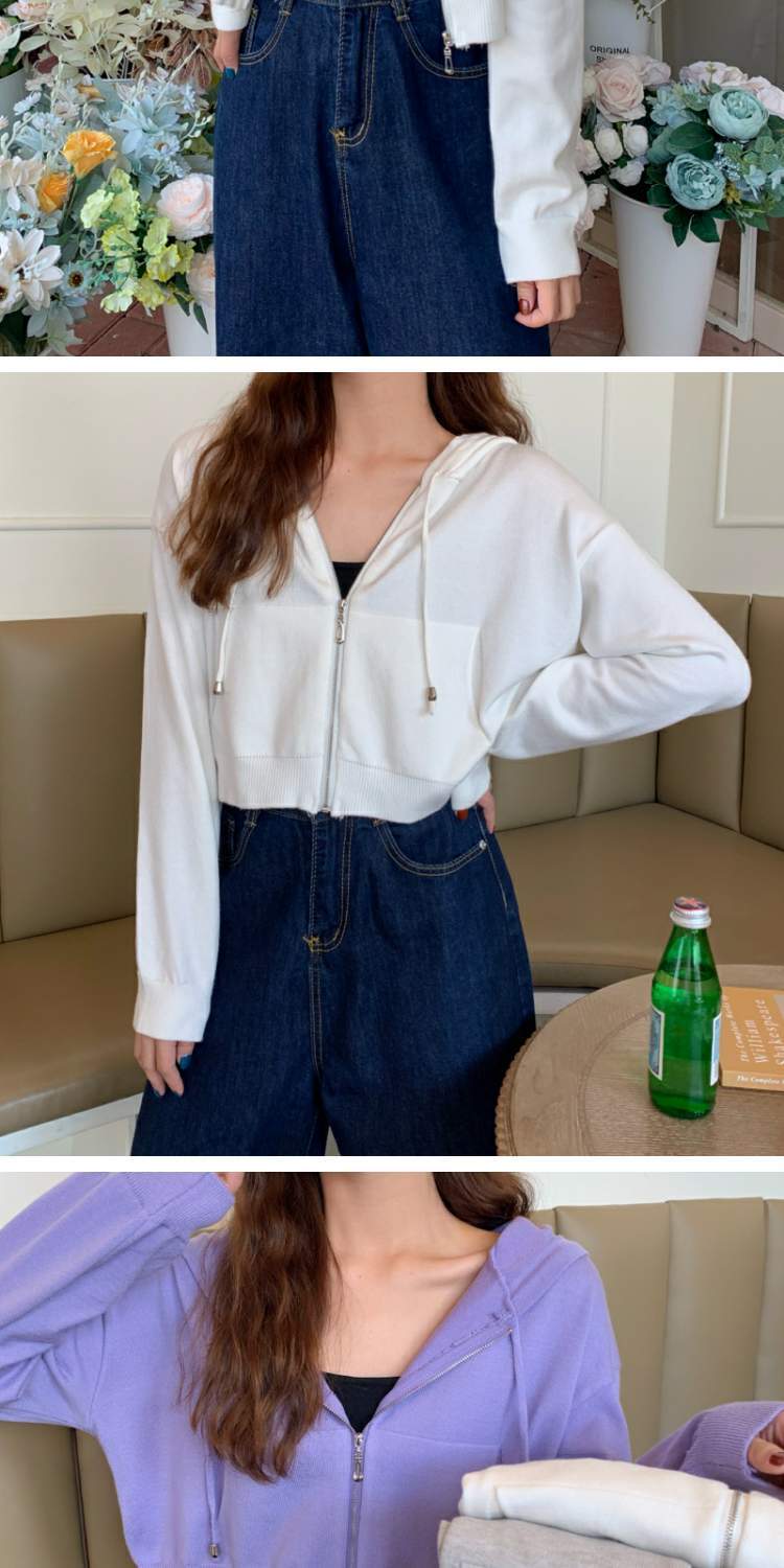 ショートルーズフードジッパーニットセーター スプリングオータムカーディガントップス ロング 春物 秋物 萌量不足23196993984