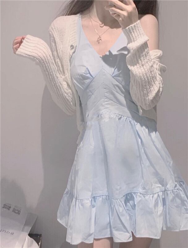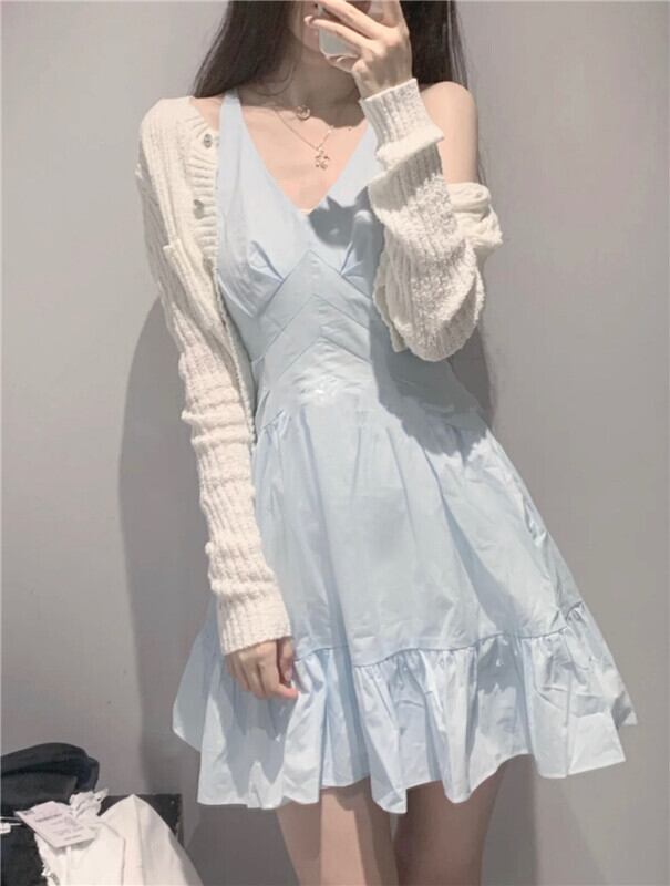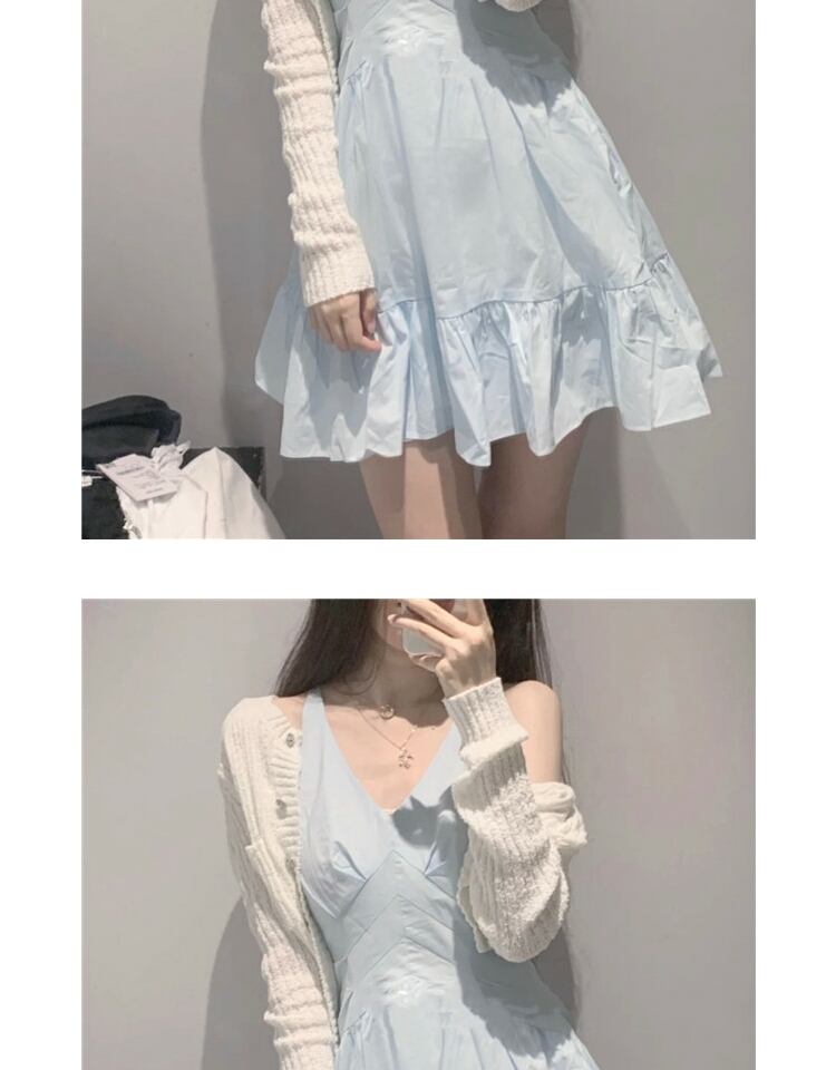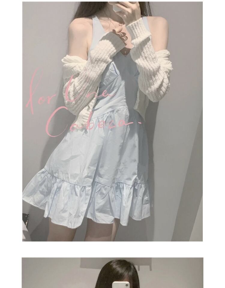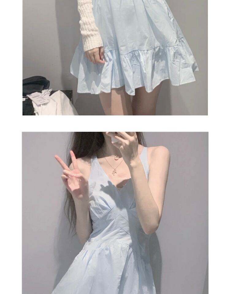 ブルースカート ノースリーブウェストベルト 薄手ドレス サマー 大人ガーリー スウィート キュート カジュアル 夏物 ハーネス 萌量不足58015785549
