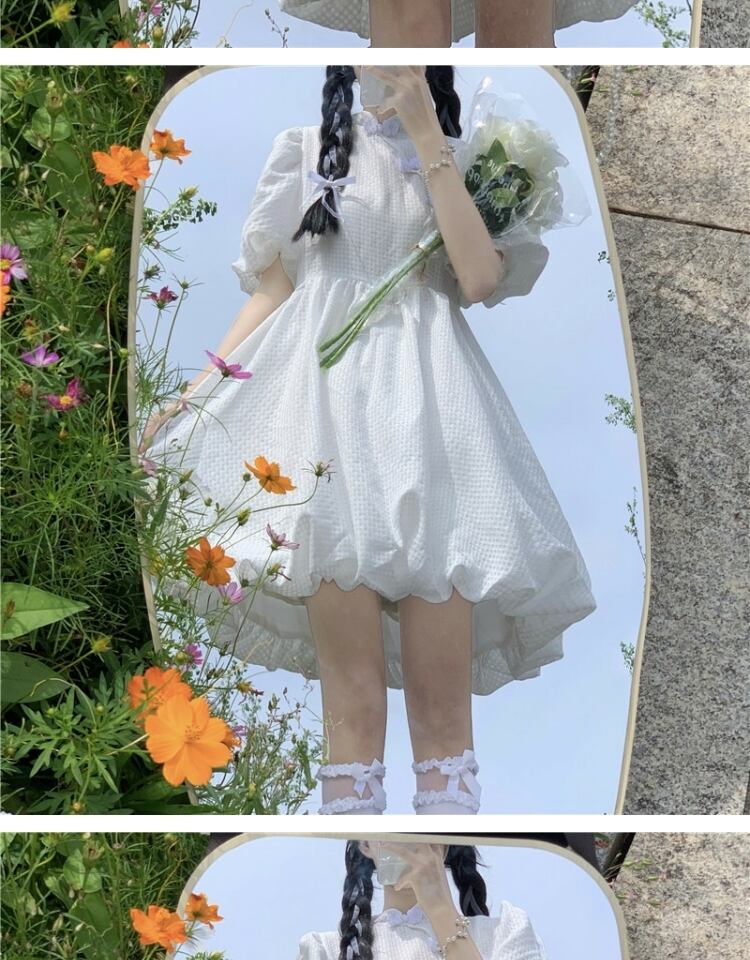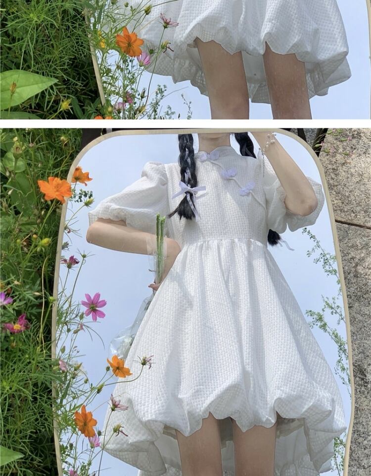 スタンダードスカート ドレス サマースリーブボタン レトロ 大人ガーリー スウィート キュート カジュアル 夏物 萌量不足23991503053