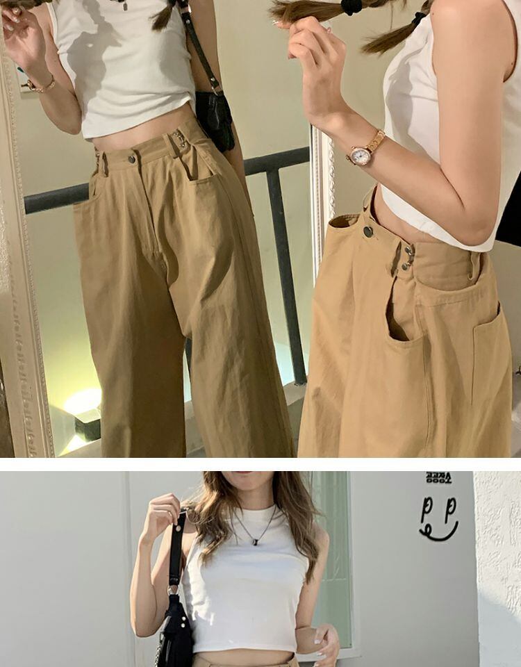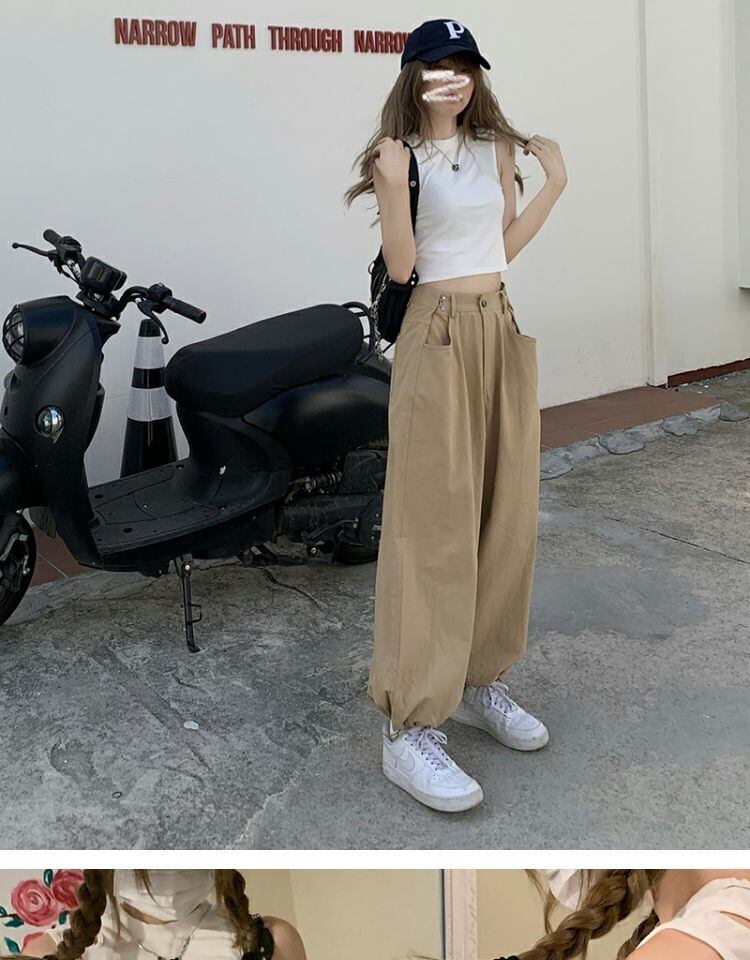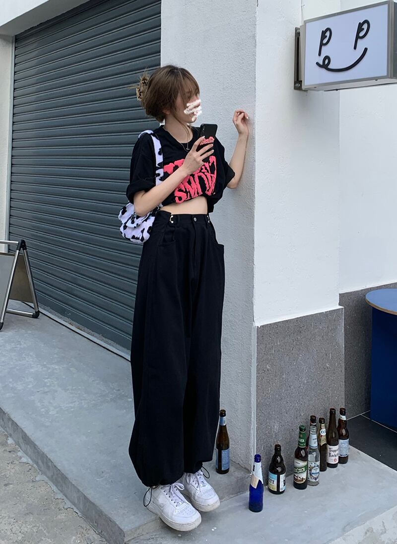 ハイウェストパンツ サマー薄手ブラックオーバーオール ルーズカジュアル 夏物 アジャスタブル 萌量不足80812249852