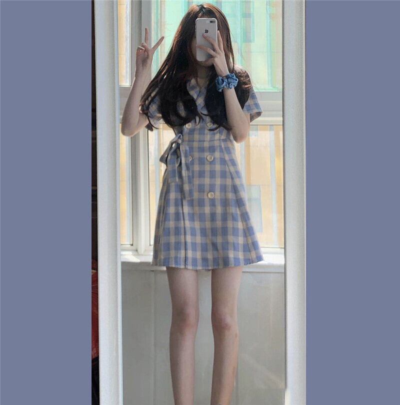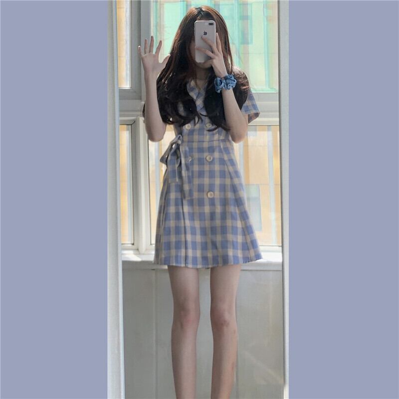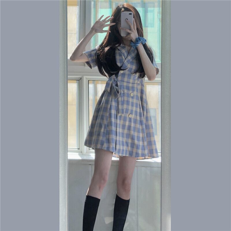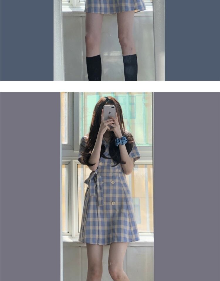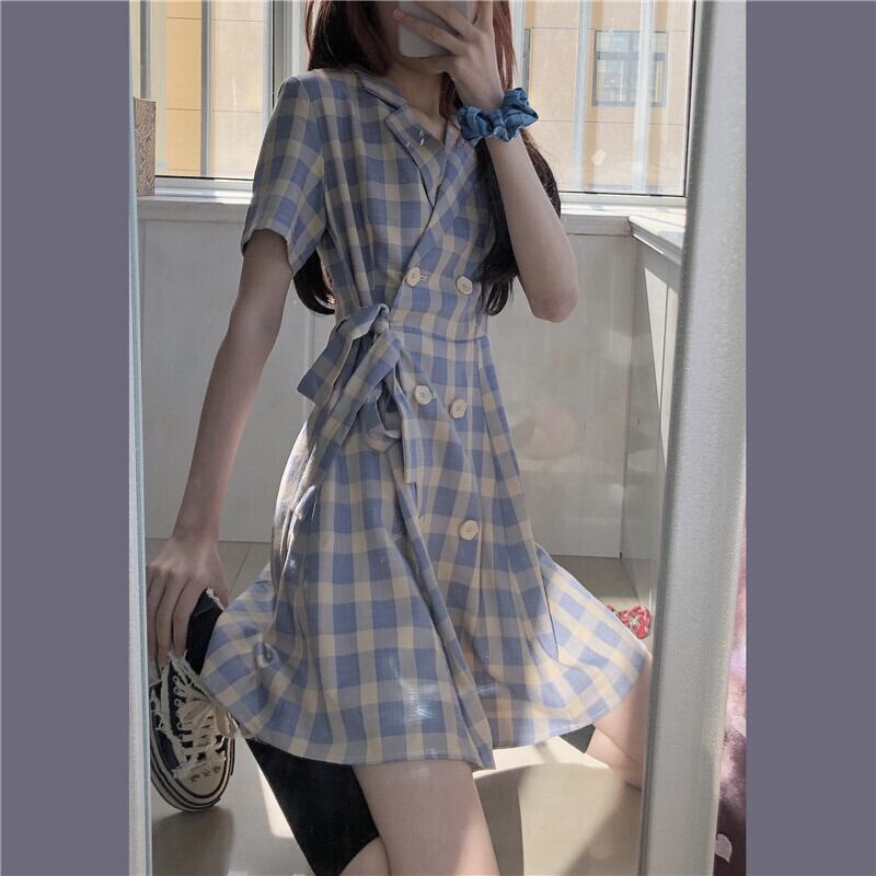 カラー格子柄ドレス サマースカート 薄手Aライン 大人ガーリー スウィート キュート カジュアル 夏物 萌量不足53593486442