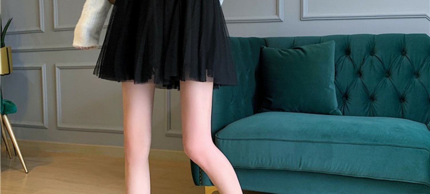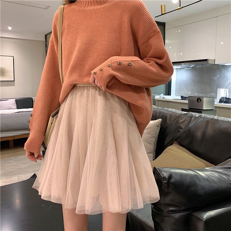 スカート ハイウェストウェストオータムドレス メッシュショート 秋物 萌量不足3313430659