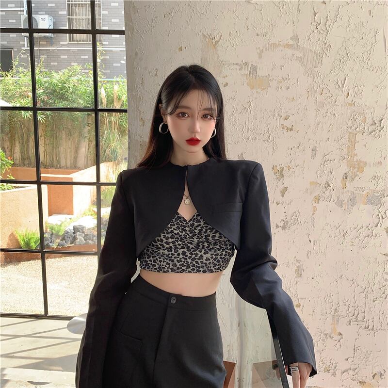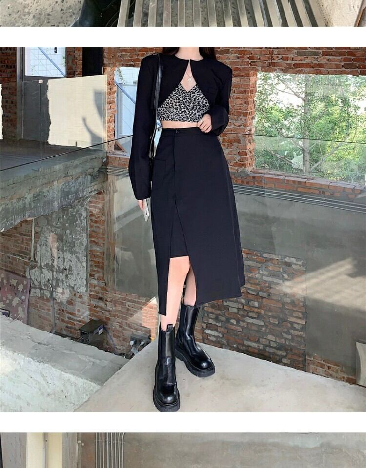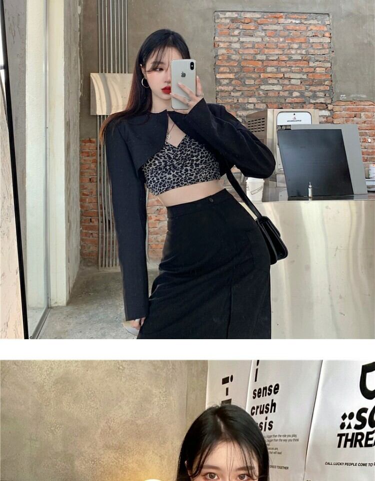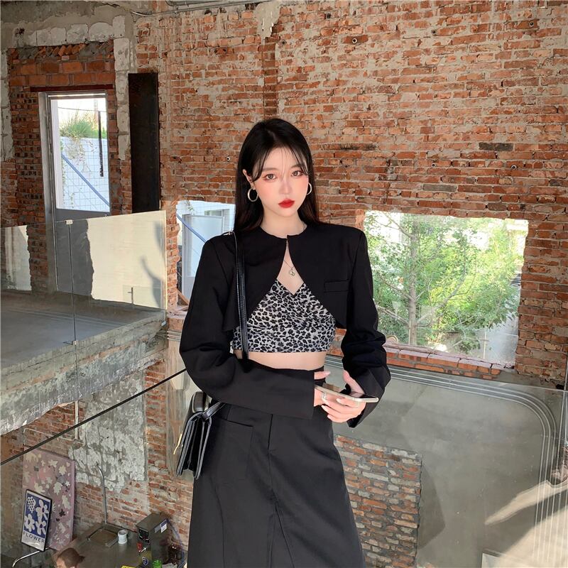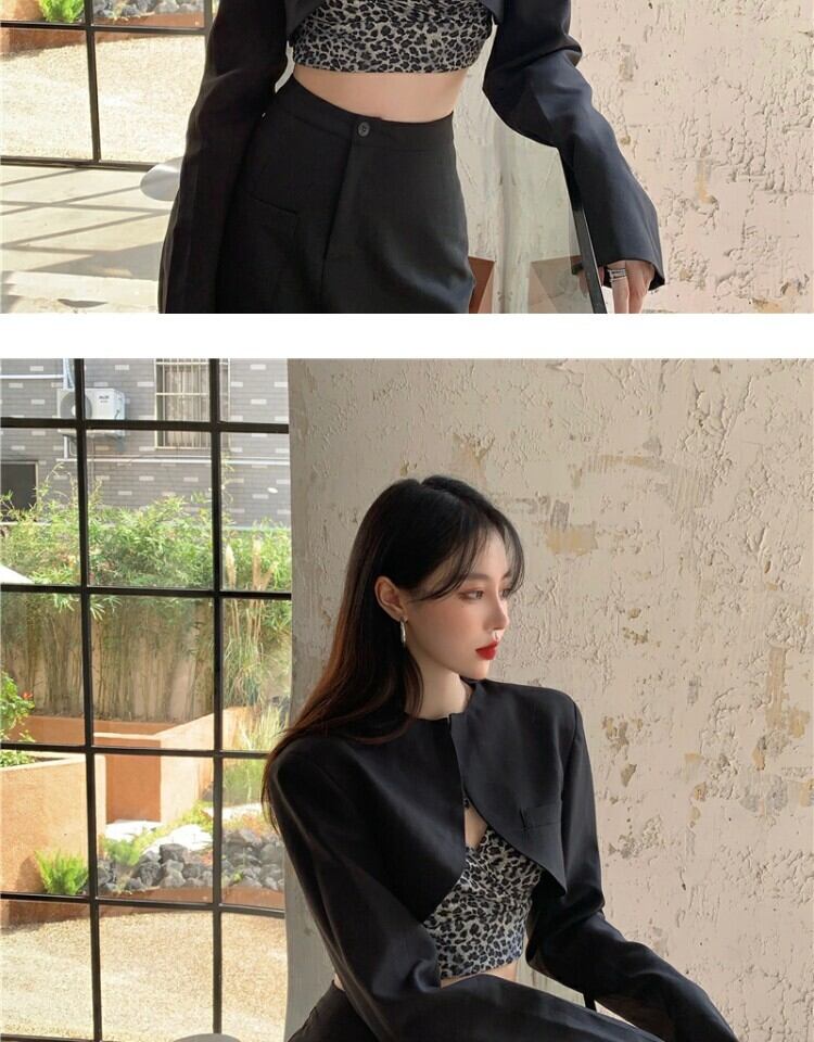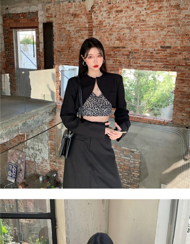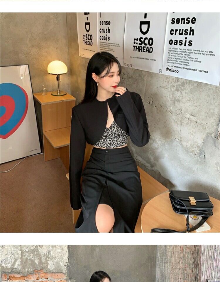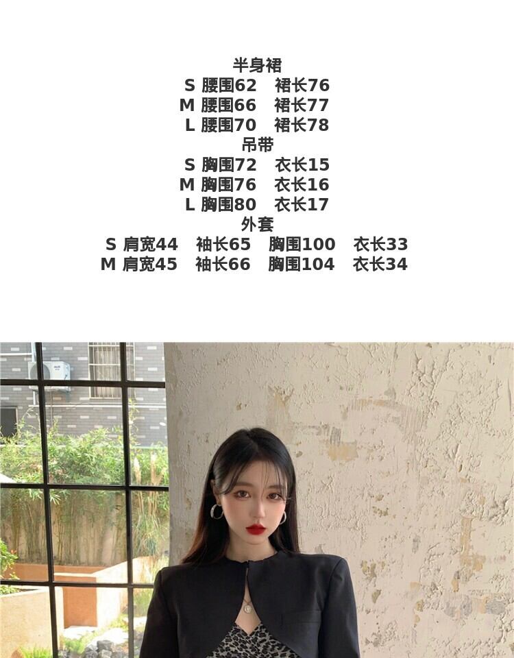 色:ヒョウスリング1枚,黒スカートワンピース,黒のスーツジャケットワンピース