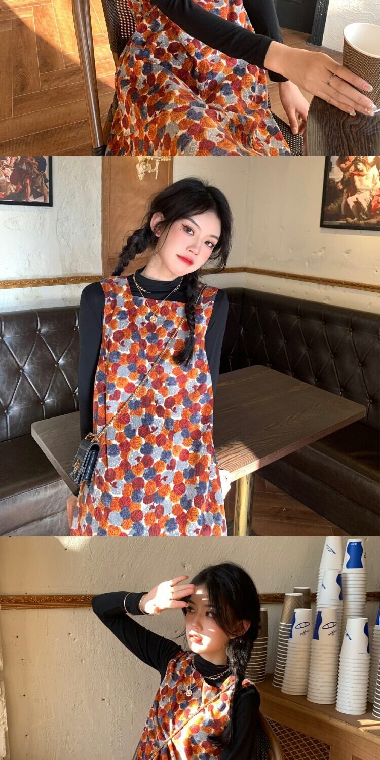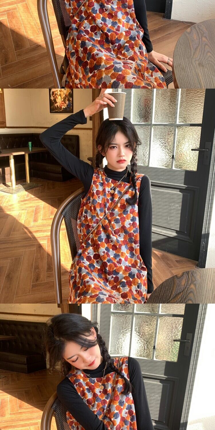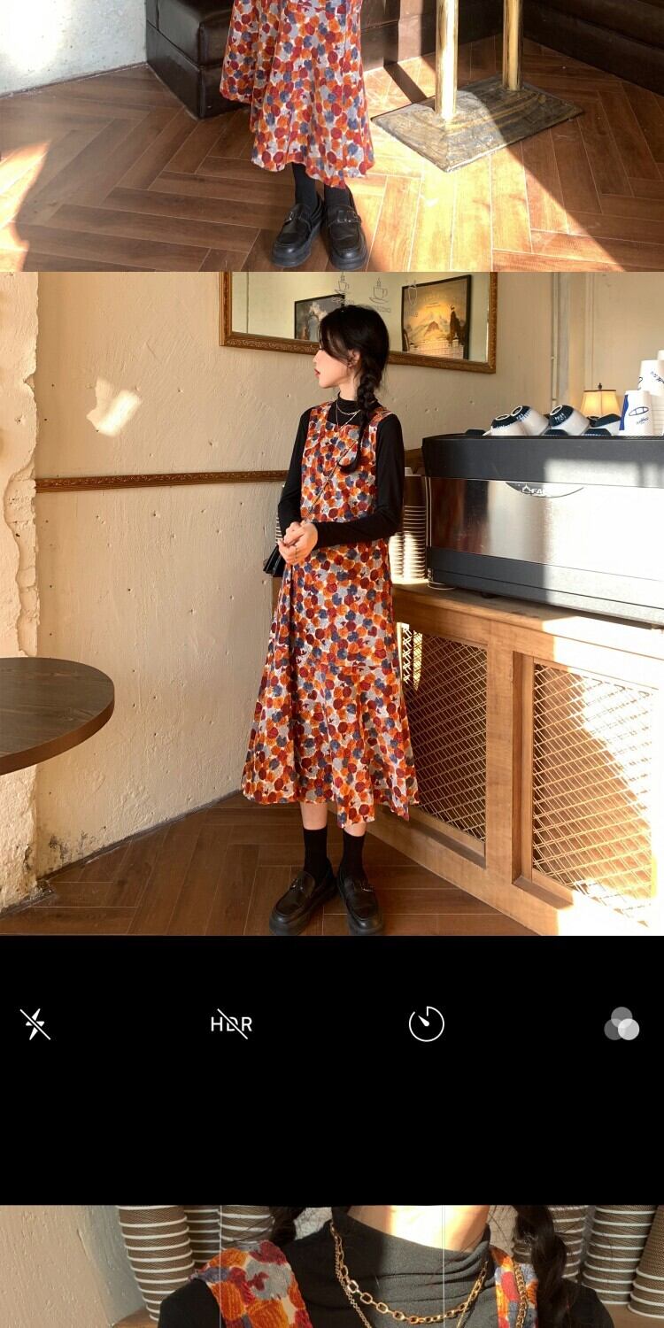 スタンダードスタイルプリントドレス スプリングスカート ルーズ薄手 レトロ 春物 萌量不足12297898340