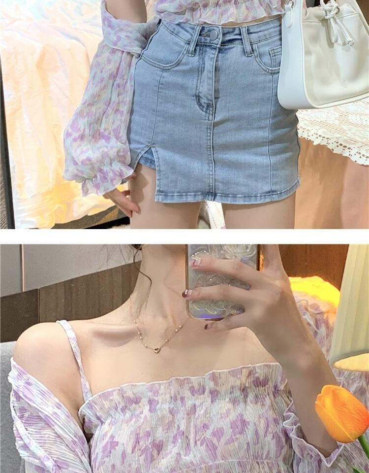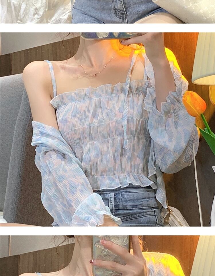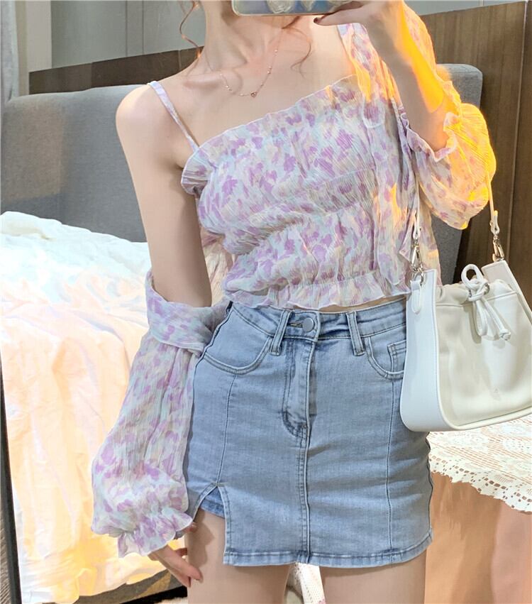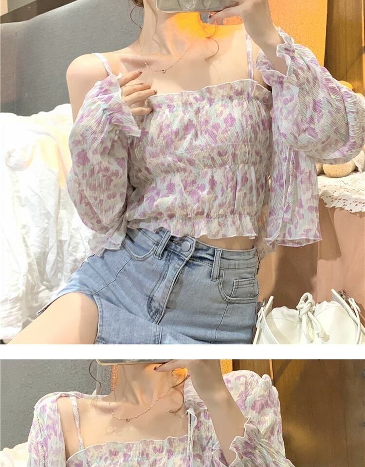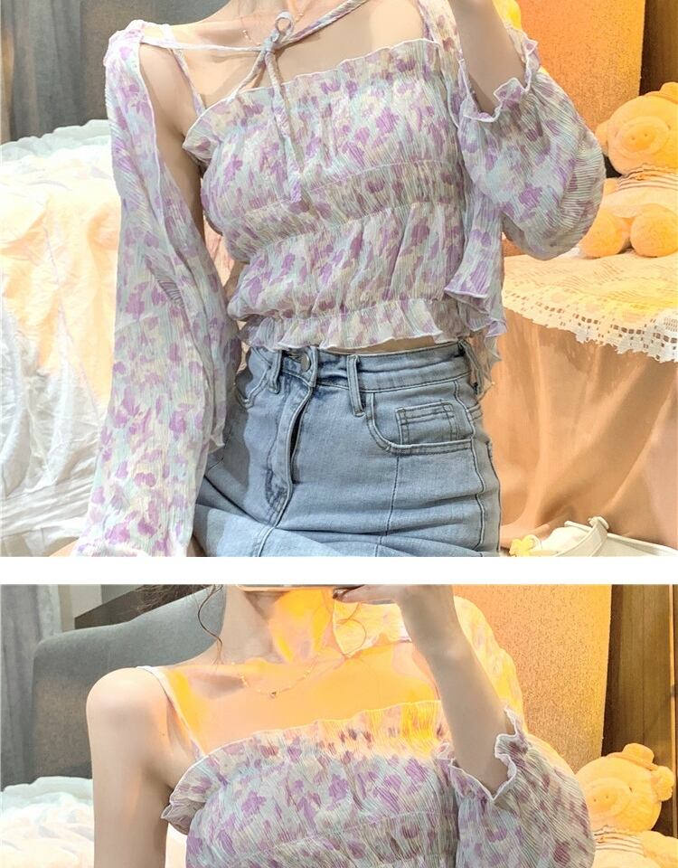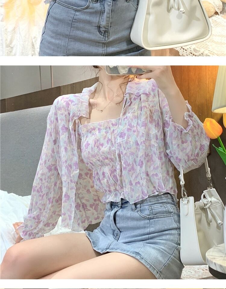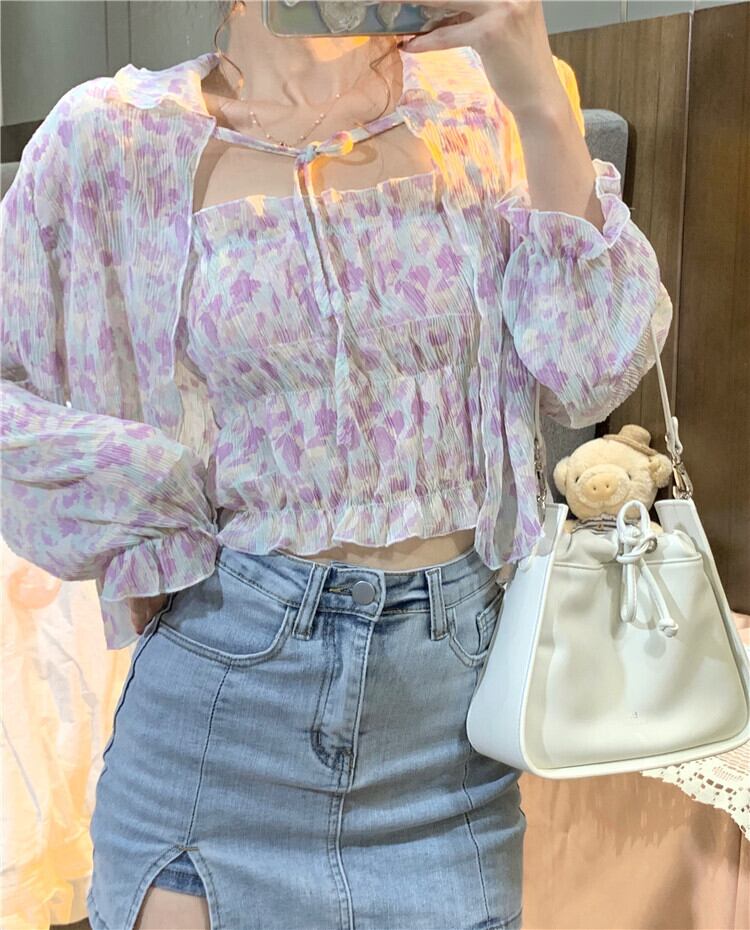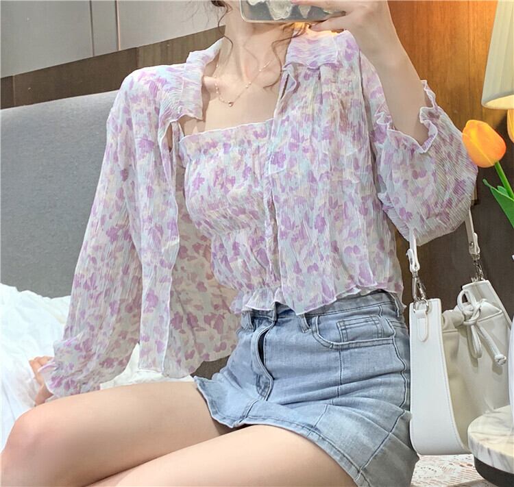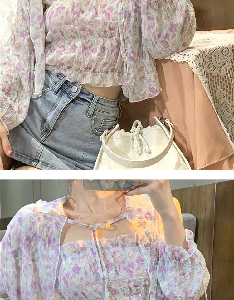 フローラルノースリーブトップス ショートサマー 夏物 花柄 萌量不足15445116077