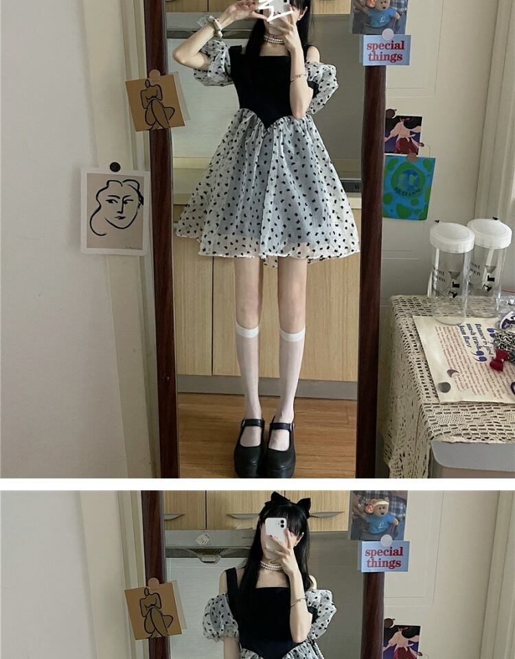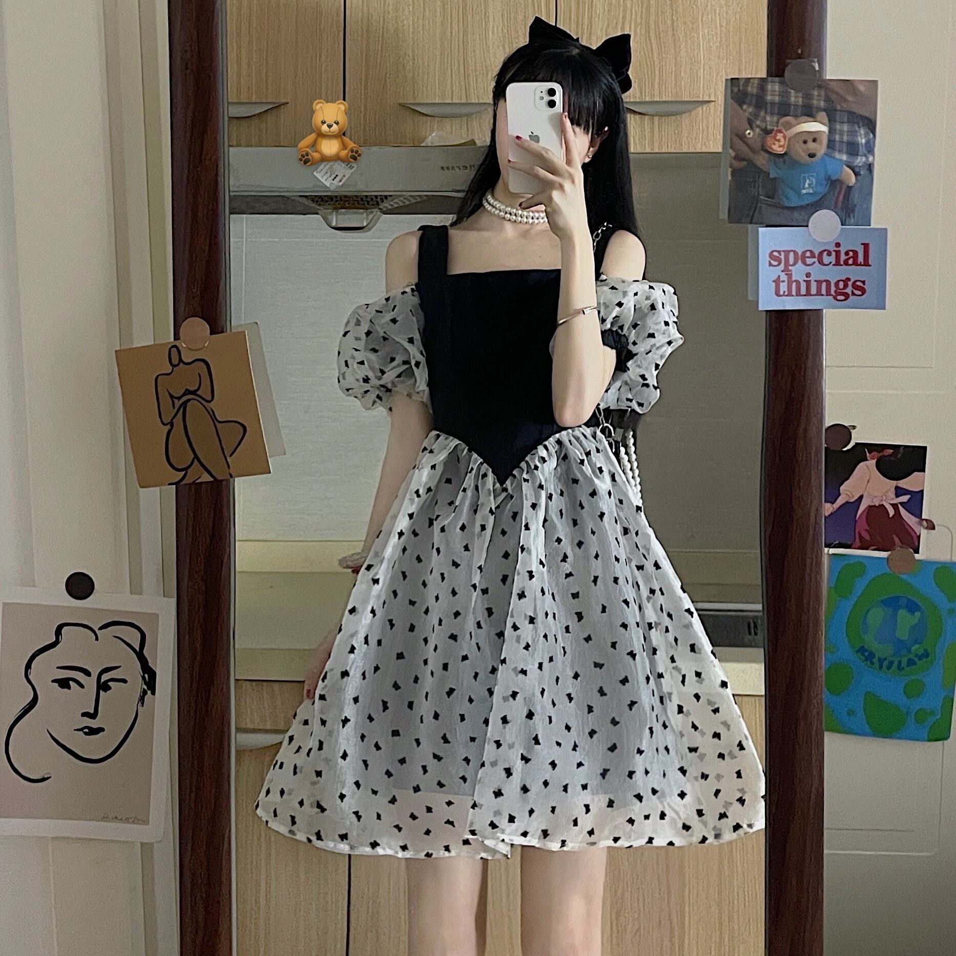 ドレス 薄手サマーレディースウェストスカート スタンダードスリーブ レトロ 夏物 萌量不足99641609744