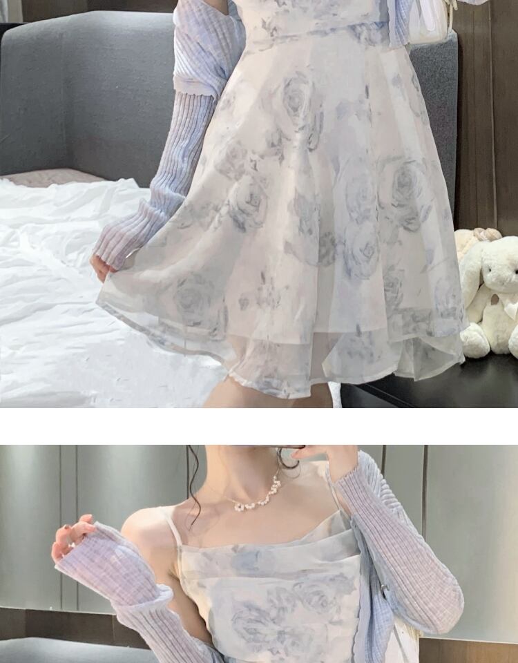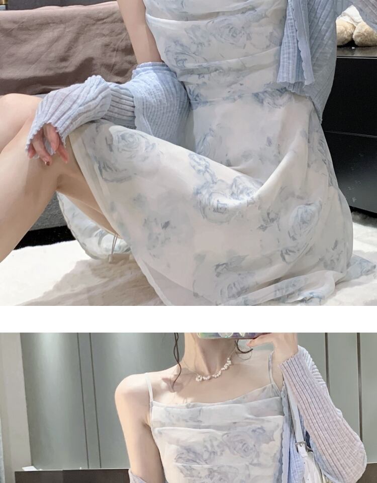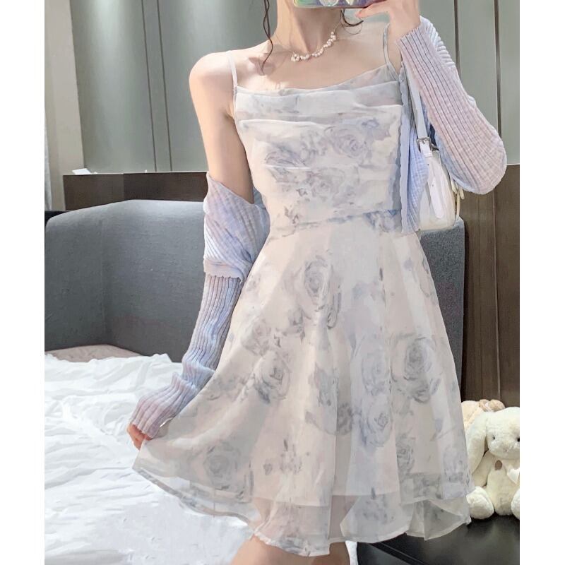 プリントシフォンスカート ドレス 薄手ウェストサマー 夏物 萌量不足59868378988