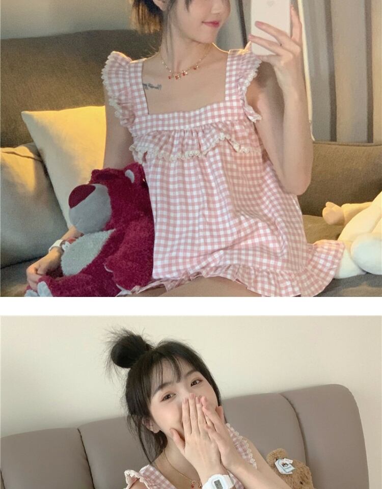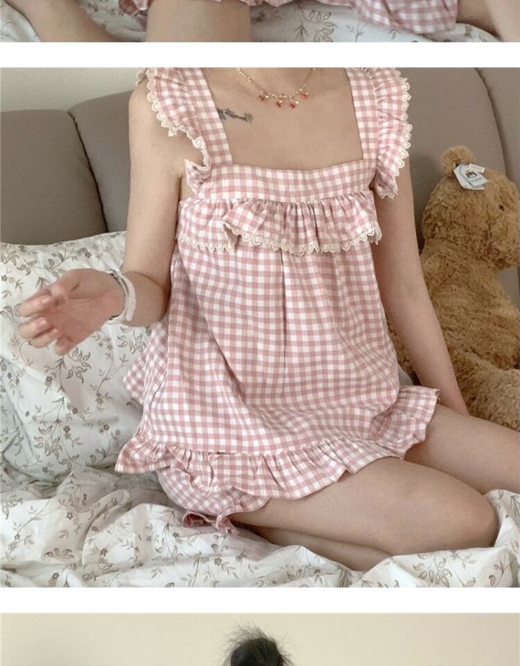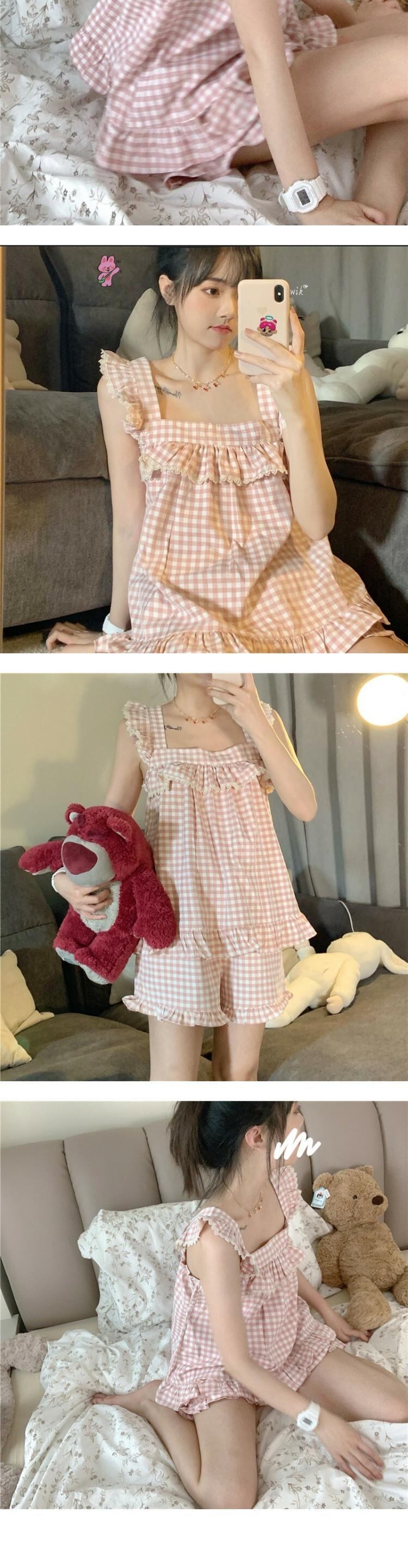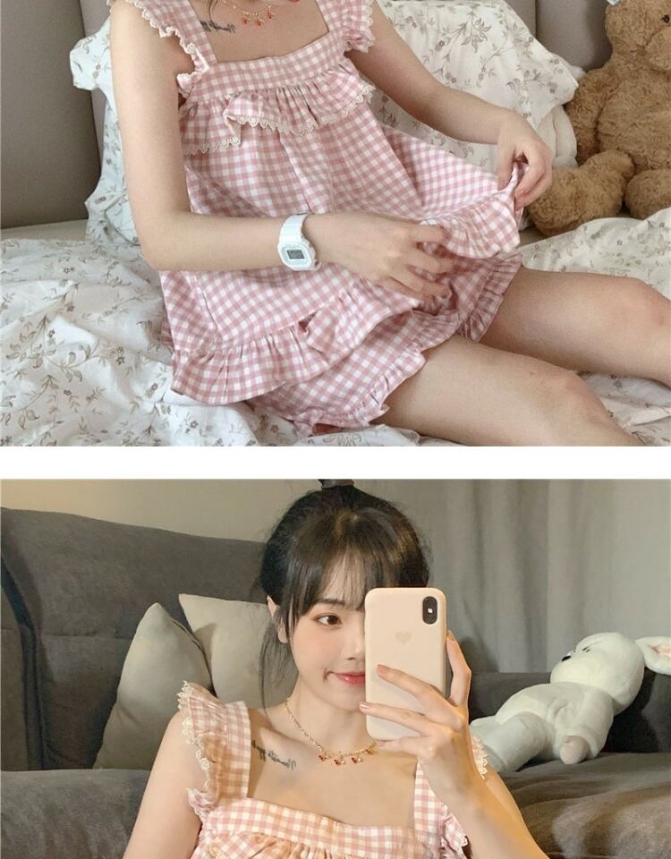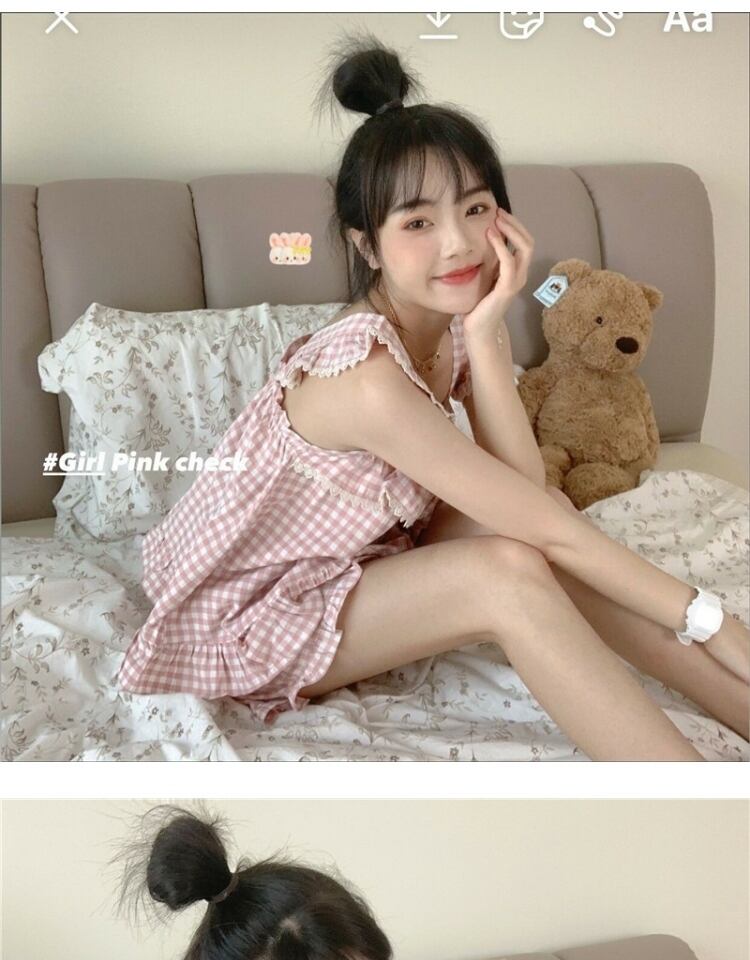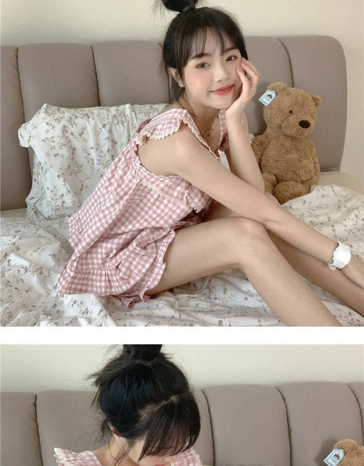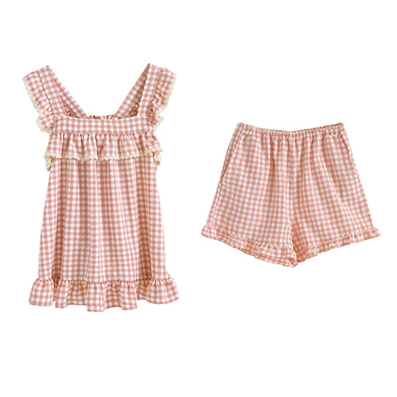 ノースリーブサマーホワイト格子柄レディース薄手ショーツ ピンク 大人ガーリー スウィート キュート カジュアル 夏物 ブルマー 萌量不足76996092328