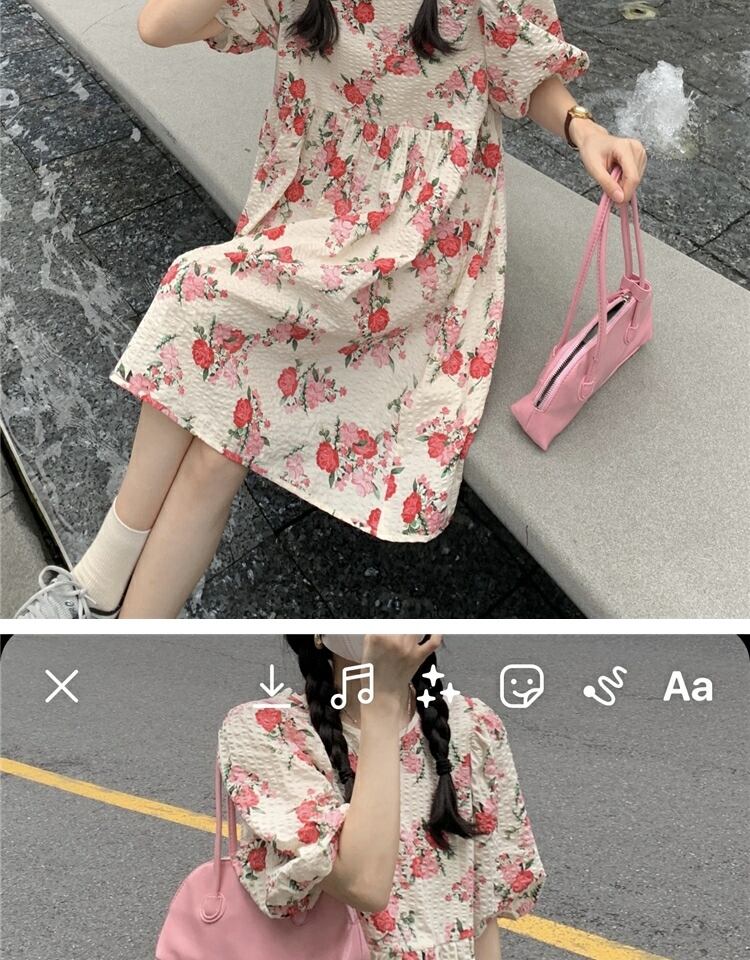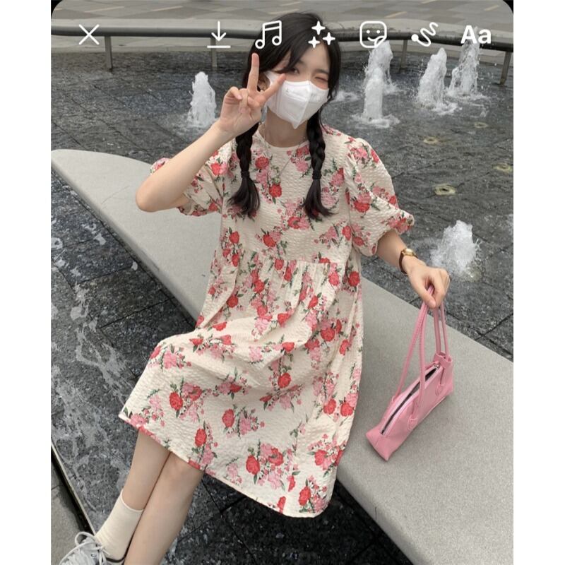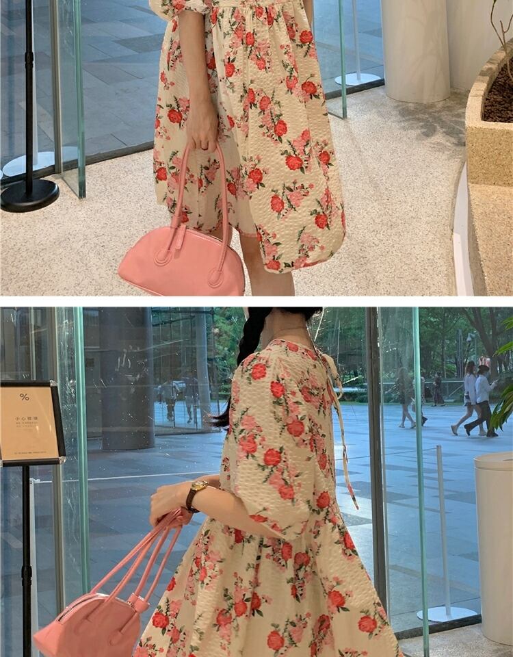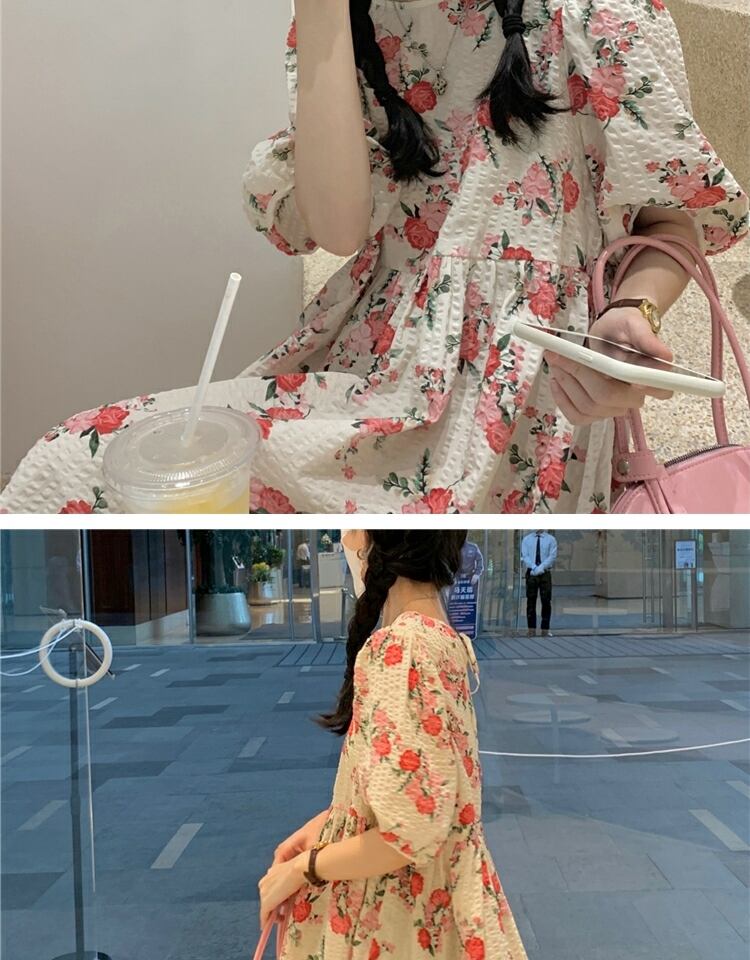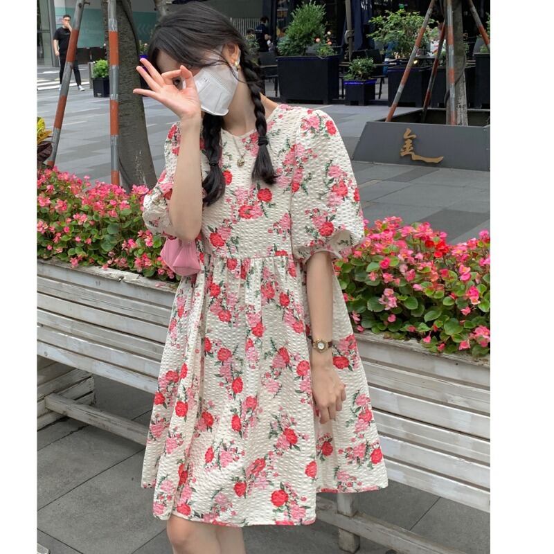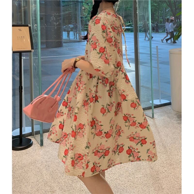フローラルスカート スリーブドレス サマールーズ 大人ガーリー スウィート キュート カジュアル 夏物 花柄 萌量不足76393785298