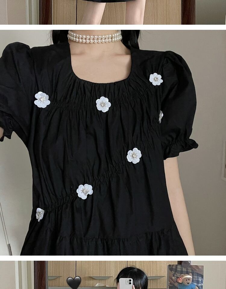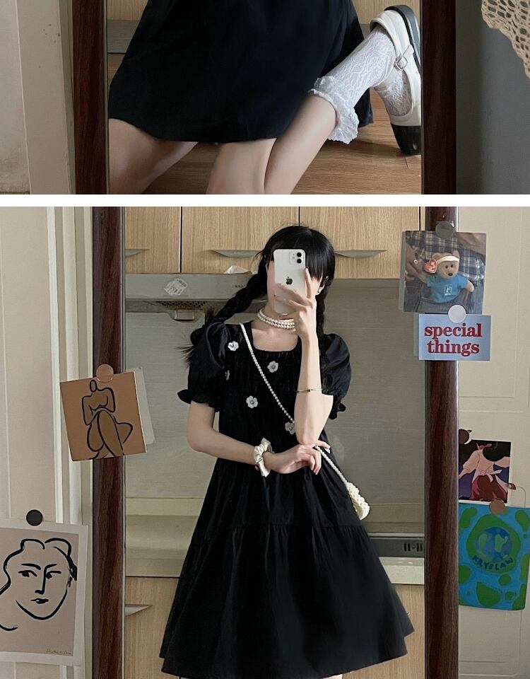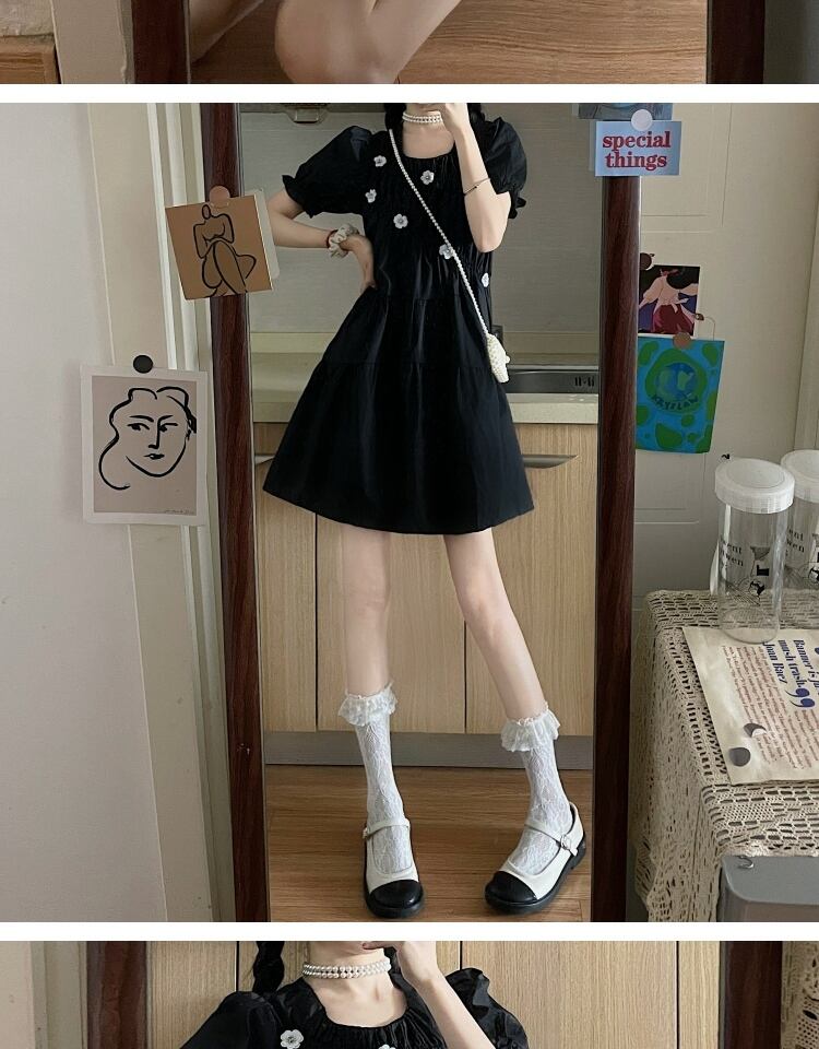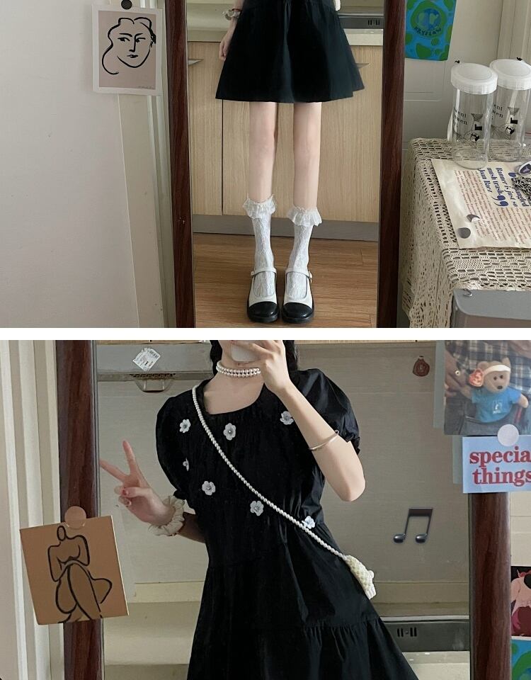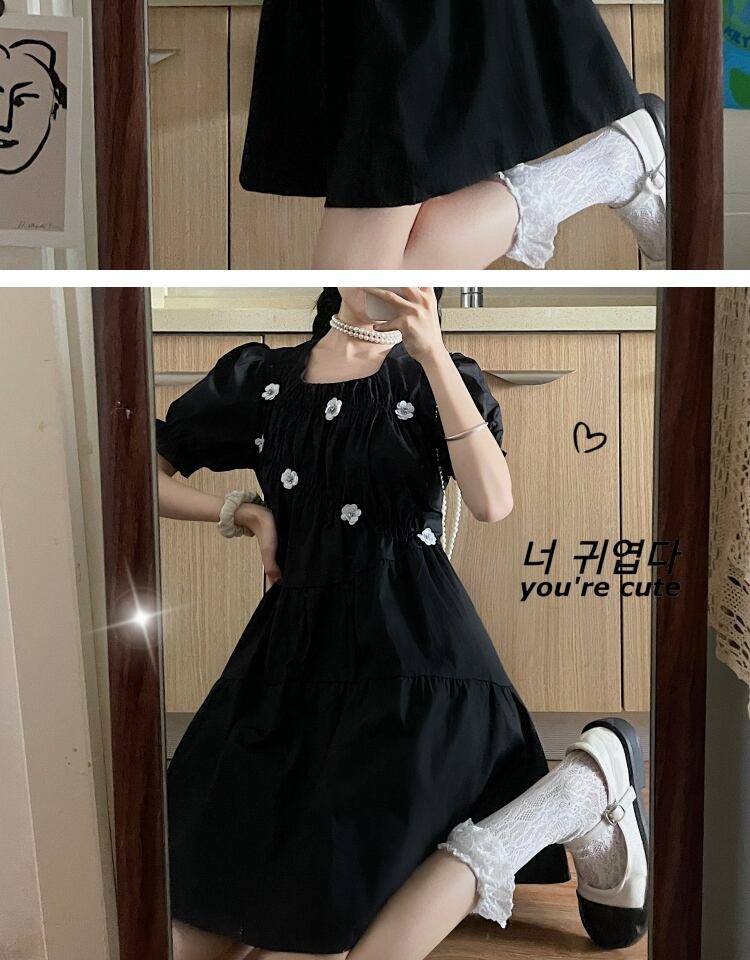 スタンダードFlowerデザイン ブラックドレス サマースカート レトロ 大人ガーリー スウィート キュート カジュアル 夏物 フラワーデザイン 萌量不足5054936719