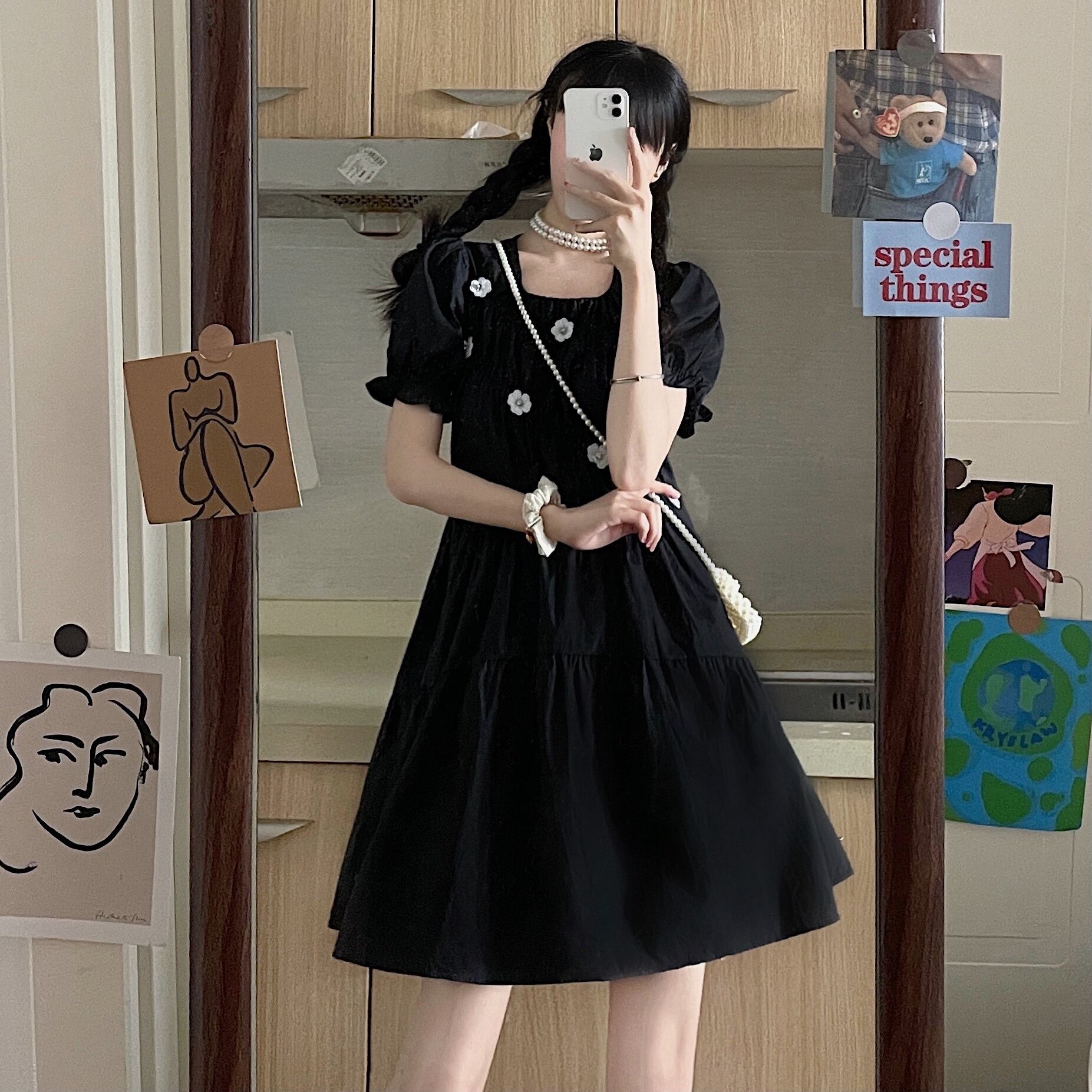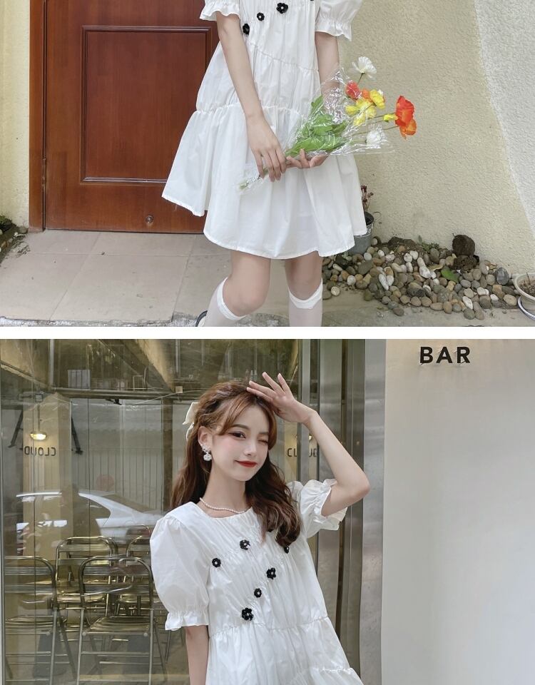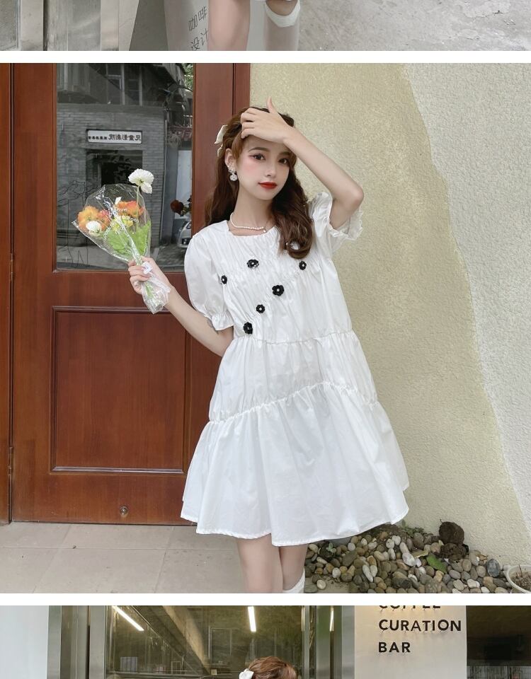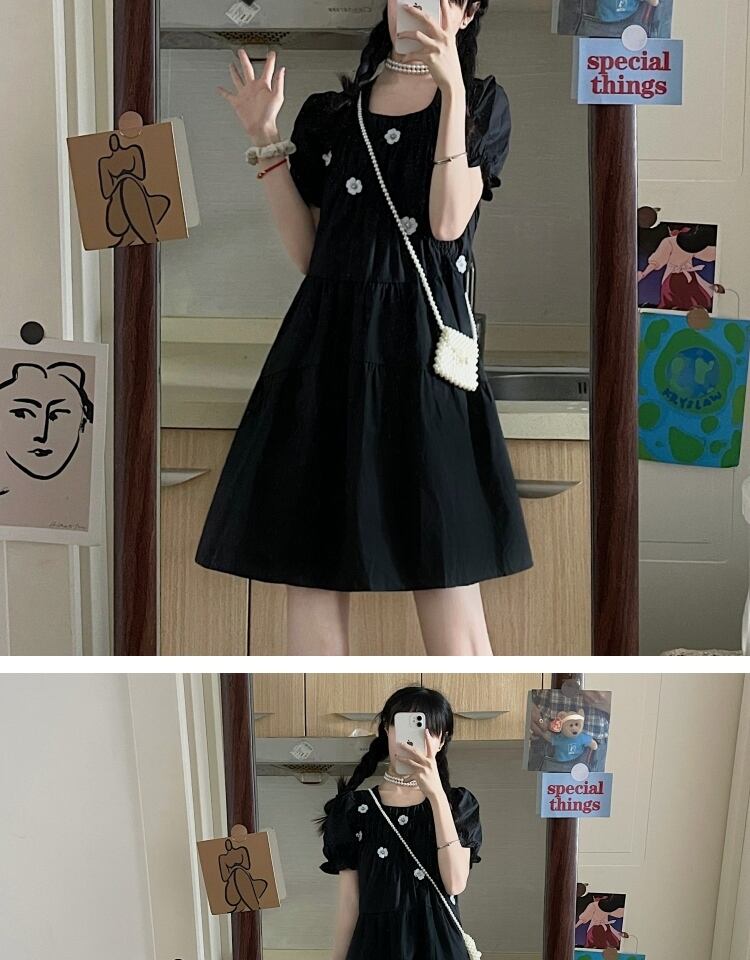 スタンダードFlowerデザイン ブラックドレス サマースカート レトロ 大人ガーリー スウィート キュート カジュアル 夏物 フラワーデザイン 萌量不足5054936719