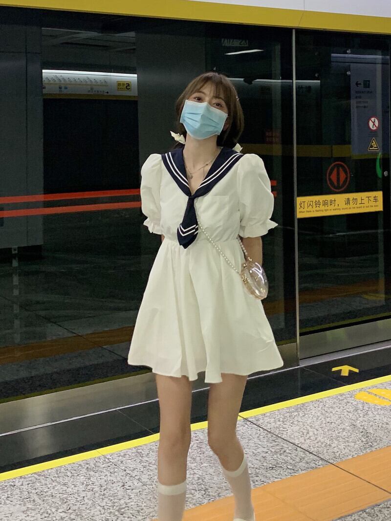 スタイルネイビーカラードレス サマースリム薄手ホワイトスカート 夏物 萌量不足13479350860